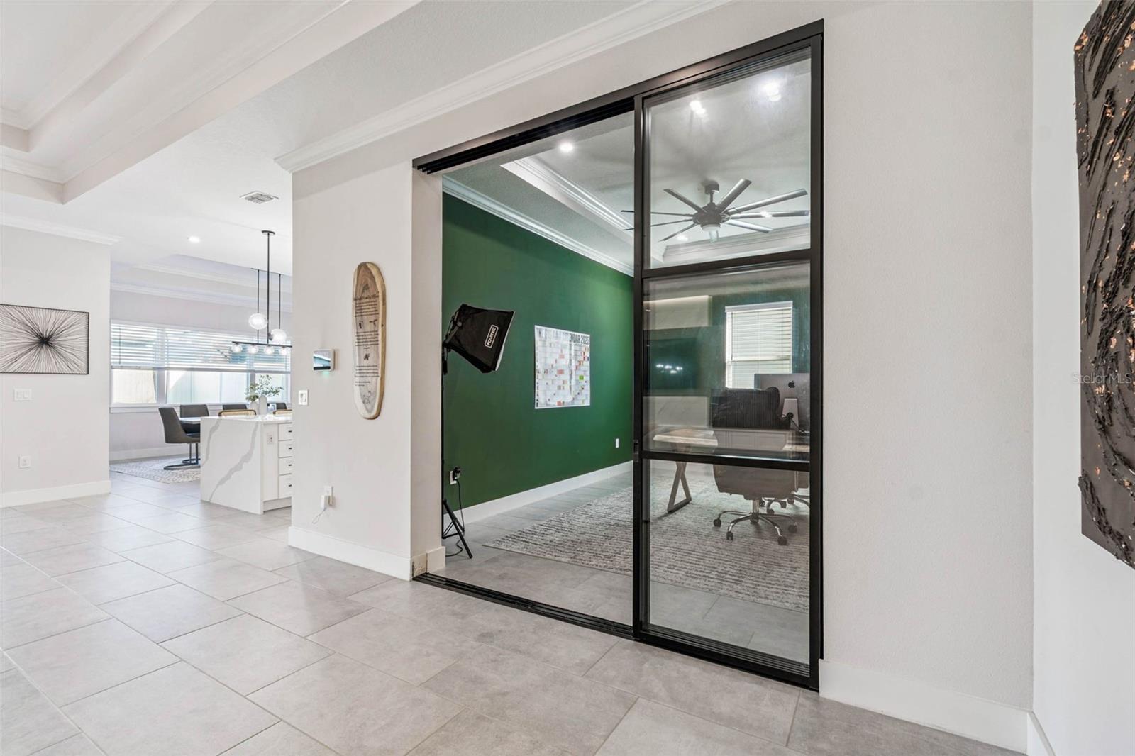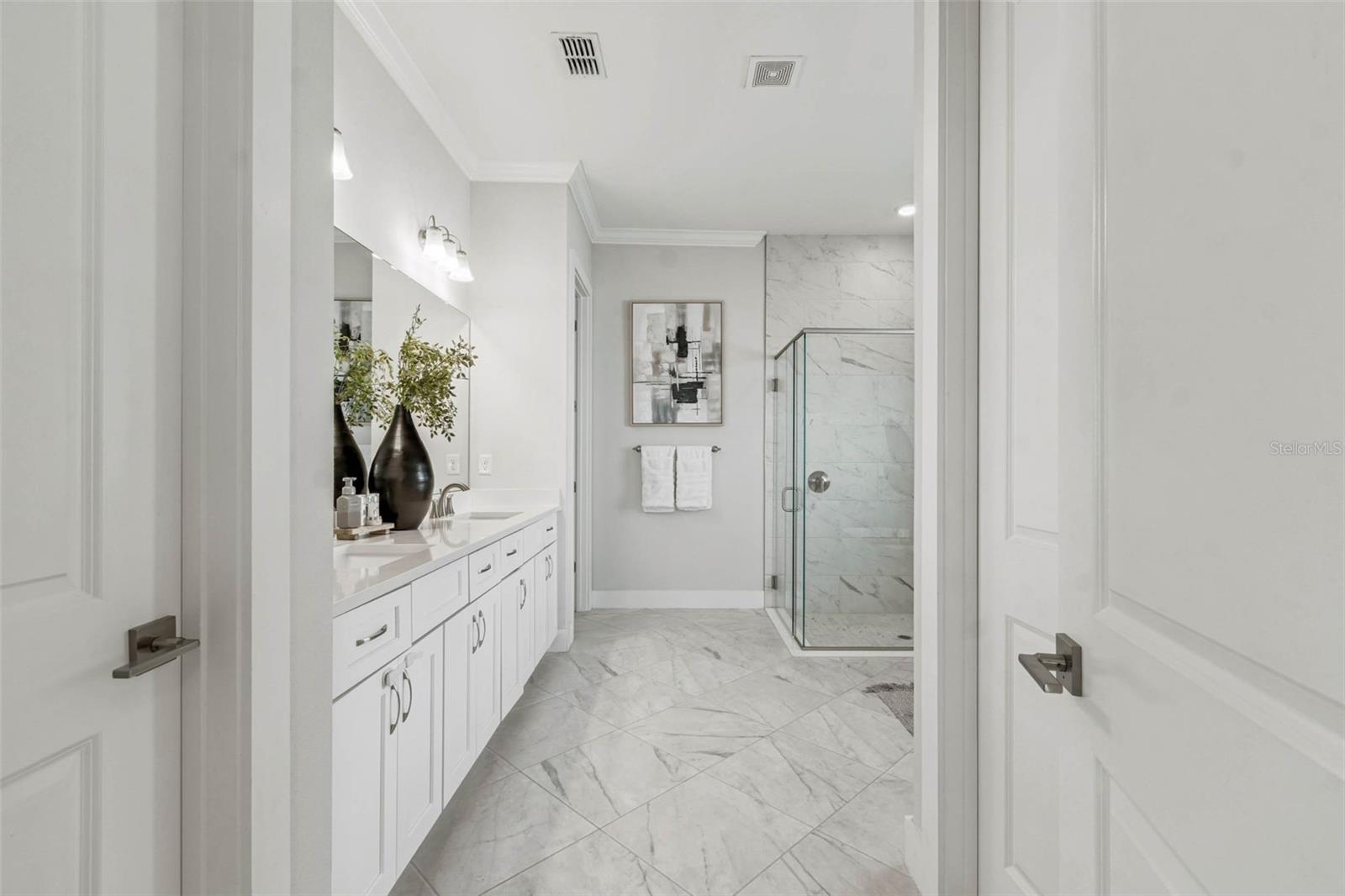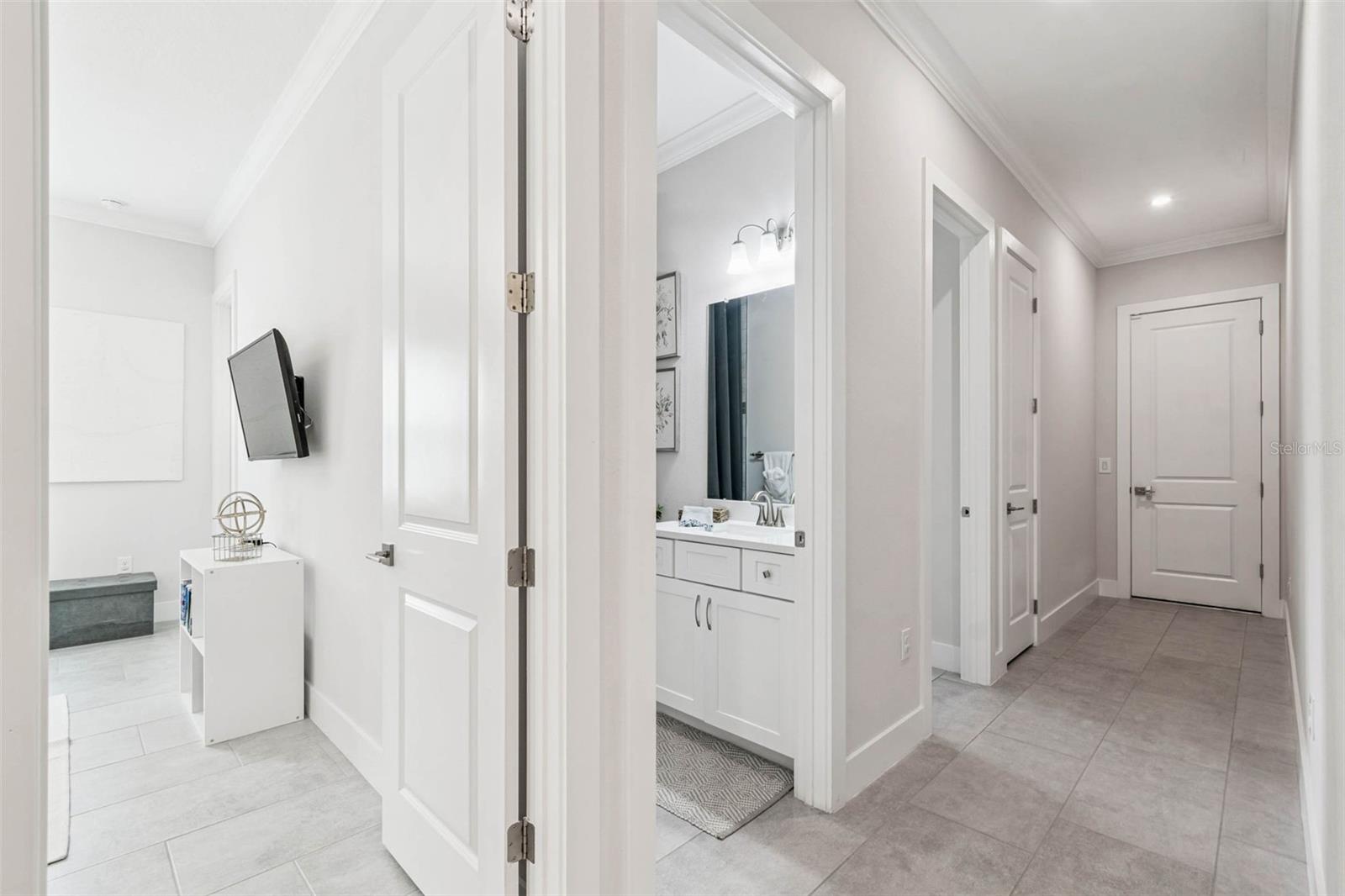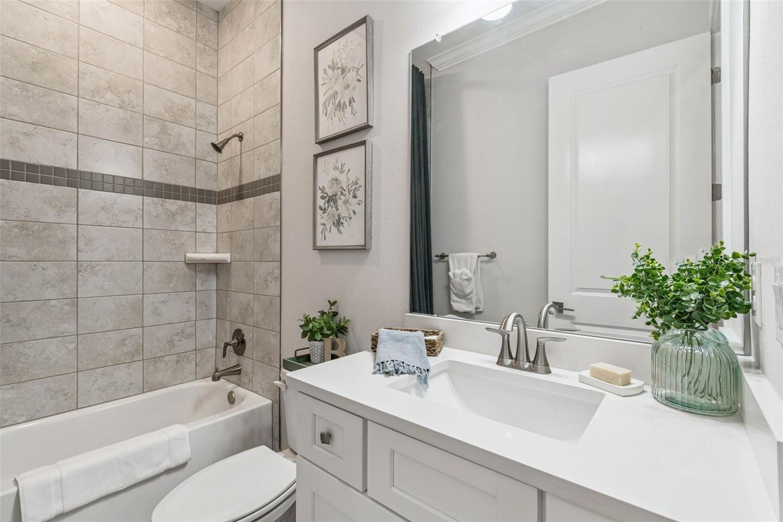 Welcome to 9028 Ivy Stark Blvd, where luxury meets lifestyle in Wesley Chapel’s Epperson community. Built in 2021, this modern 4-bedroom, 3.5-bath home spans 3,214 sq. ft. on a spacious 0.23-acre lot. Step inside to soaring ceilings and an open, airy floor plan. The living room features a custom accent wall, flowing into a chef’s kitchen with quartz countertops, premium stainless steel appliances, and an oversized island made for entertaining. Work from home in style with a custom-built office space. The primary suite is a true retreat featuring dual walk-in closets, a soaking tub, and a sleek walk-in shower. One guest room has a private en-suite, while two others share a full bath. The laundry room connects to a two-car garage, while a separate single garage is currently used as a home gym and private golf cart space. Step outside to your fenced backyard oasis, a covered patio wrapped in wood paneling from wall to ceiling, perfect for dining or relaxing in the Florida sunshine. The spacious yard offers plenty of room to design your dream outdoor living space or add a custom pool. From your front door, enjoy lake views and nightly sunsets, with a playground just across the street. Live where others vacation, steps from the MetroLagoon, dog parks, trails, playgrounds, and top-rated schools. Enjoy resort-style pools, endless recreation, and the convenience of riding your golf cart to Publix. This is more than a home, it’s a lifestyle. Come experience 9028 Ivy Stark Blvd today!