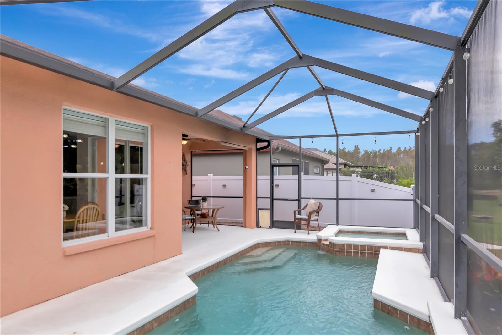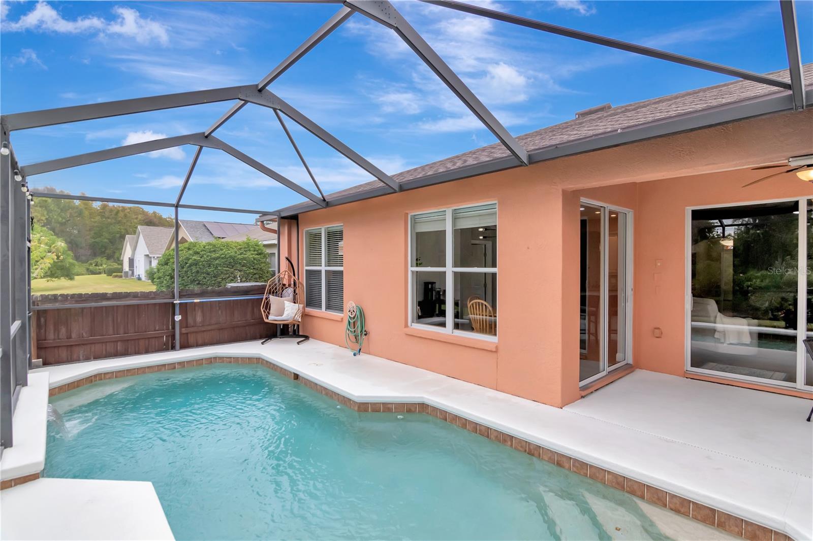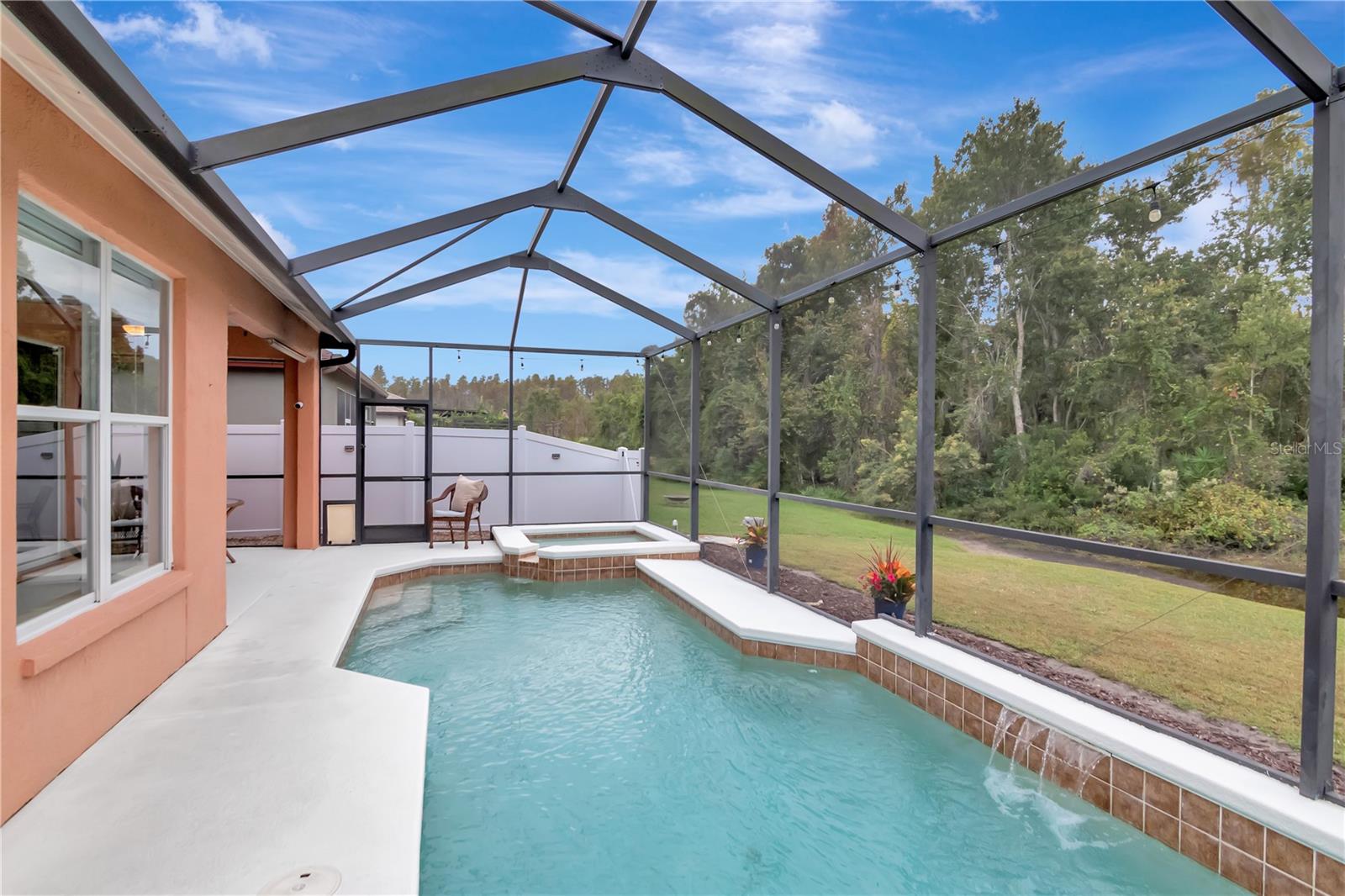 Experience Florida living at its finest in this private pool home backing to a lush wooded conservation area in the gated Heatherstone neighborhood of Meadow Pointe. With over 3,000 sq. ft. of indoor/outdoor living space, all bedrooms are conveniently on the main level, plus there’s an upstairs bonus room perfect for a family room, playroom, or home office. The open floor plan is bright and airy, with nine-foot ceilings and expansive windows and sliding doors that bring the outdoors in. The gourmet kitchen features stainless steel appliances, gas range, slab granite countertops, and a pantry. The Primary Suite is a true retreat with a jetted soaking tub, dual sinks, separate shower, and private water closet. Additional highlights include tile floors throughout the main level, split-bedroom layout, multiple dining and gathering areas, shed, and dog run. Major updates provide peace of mind: Roof (2020), Dual HVAC Systems (2023), Hot Water Heater (2020), Pool/Spa Heater (2025). Relax and entertain in your screened pool and spa area and enjoy the community amenities, with shopping, dining, and I-75 just minutes away. This is the perfect place to call home!