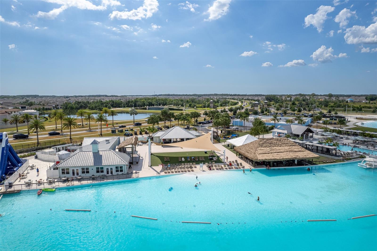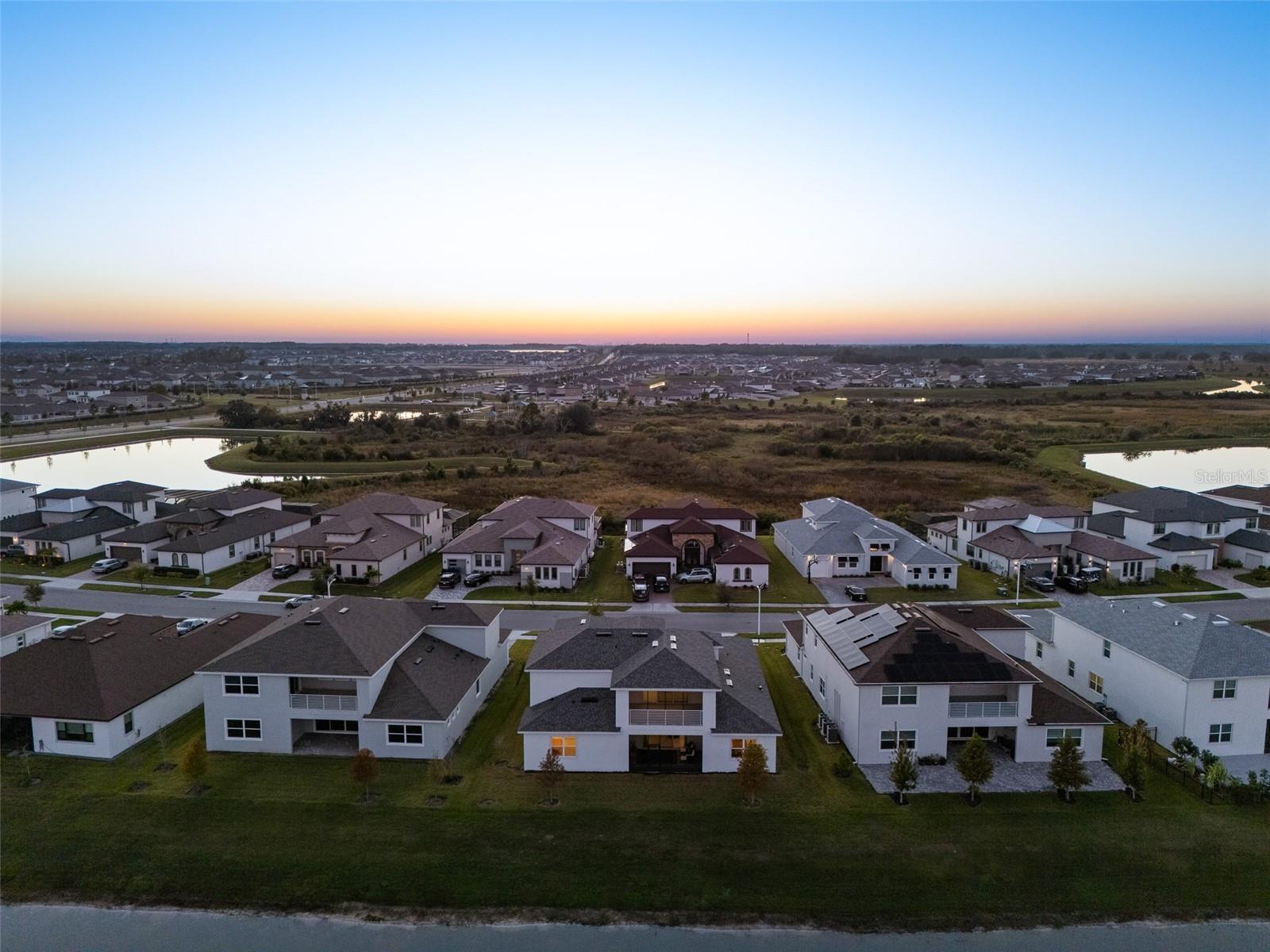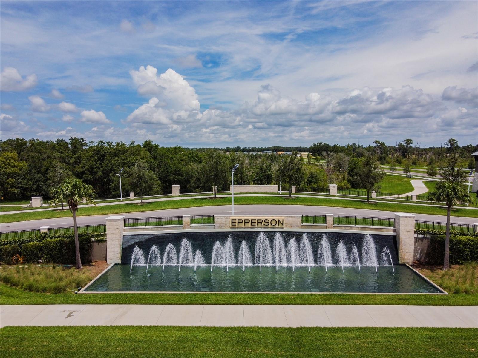 Presenting upscale, spacious living in this stunning six-bedroom, 4.5-bath pond-front residence, ideally in the sought-after gated King Lake Estates section of the Epperson Lagoon Community in Wesley Chapel. This magnificent home offers remarkable space and high-end finishes throughout, starting with a grand foyer featuring a dramatic 14-foot tray ceiling. The main floor showcases 10-foot ceilings, 8-foot doors, a formal living room, and a separate den/office space, ensuring ample room for entertaining and productivity. The home’s bold kitchen features attractive blue cabinetry, built-in appliances including a ceramic cooktop with range hood, and a walk-in pantry secured by a smart lock door. Convenience is maximized with a mudroom entrance from the garage, a first-floor half bath and an oversized laundry room. An in-law suite on the main level provides private accommodations, including a bedroom with separate den, en-suite bath and dual closets. Upstairs, a versatile loft complements the screened balcony overlooking the serene pond, along with two more bedrooms upstairs that feature a Jack and Jill bath with split vanities. Throughout the home, luxurious hanging light fixtures and plentiful recessed lighting enhance the bright, airy atmosphere. Outdoor living is a delight with a first-floor screened and covered patio, offering tranquil, expansive pond views. Additional high-end features include a multi-zoned air conditioning system for optimal comfort, exterior stylish shade shutters, a paver driveway and a side-facing two-car garage. This exceptional property is in the famous Epperson Ranch Crystal Lagoon neighborhood, which is comprised of 7.5 acres of clear blue water, including sandy beaches, swim-up bar and neighborhood features showcasing UltraFi, a community-wide internet and cable experience, Streetleaf solar streetlights, playgrounds, golf cart paths, miles of trails, green spaces and dog parks. This growing area is home to the sought-after Innovation Preparatory Academy and The Kirkland Ranch Academy of Innovation schools, plus a new Publix, Starbucks and Chick-fil-A, while also conveniently minutes from Interstate 75 providing ample shopping and dining options at Tampa Premium Outlets, Shops at Wiregrass, and The Grove & KRATE.