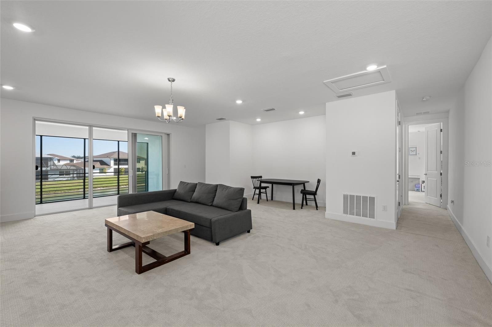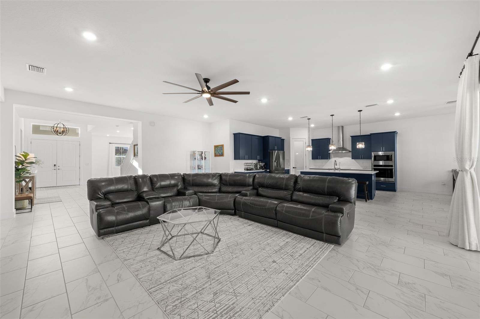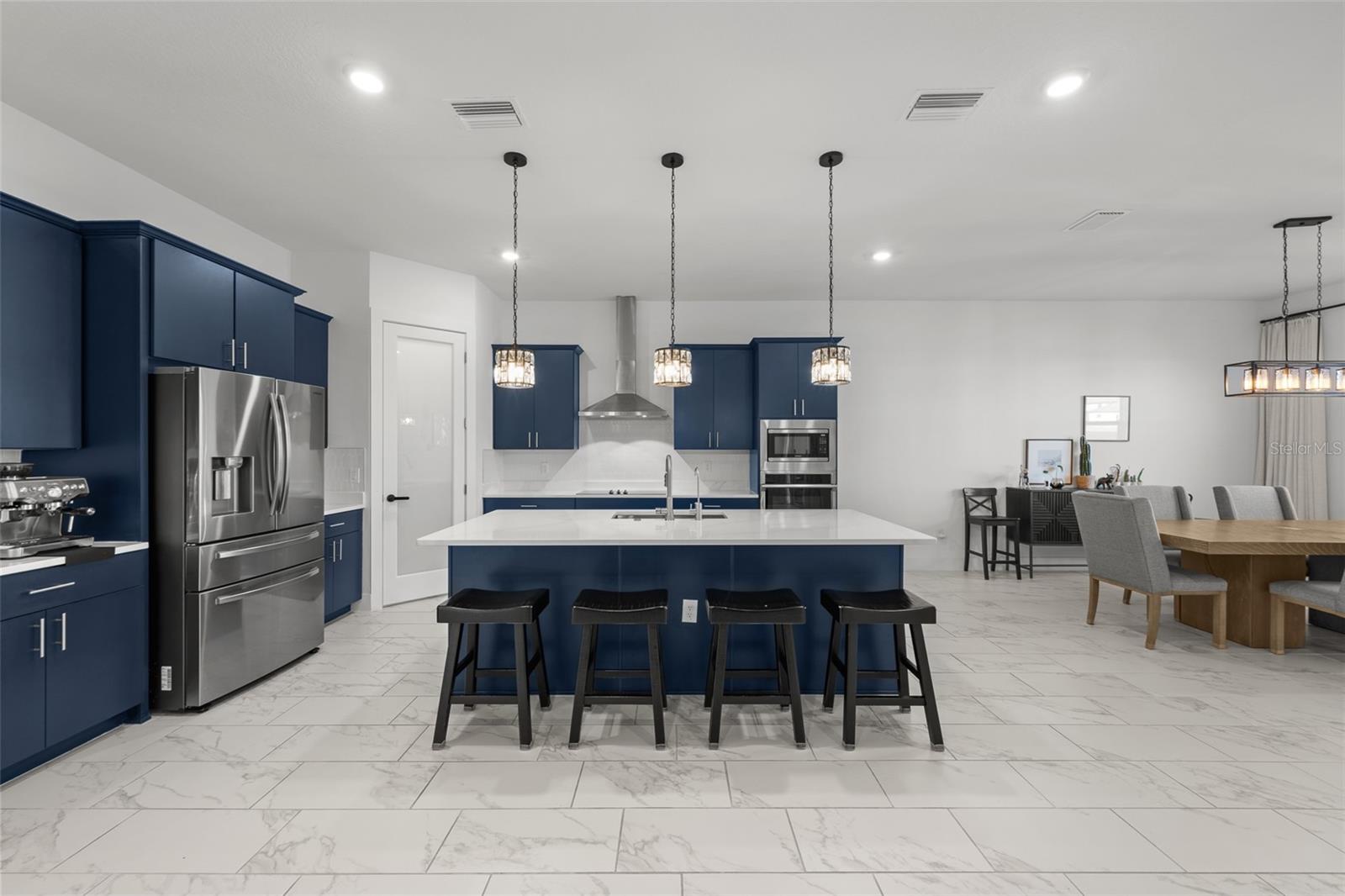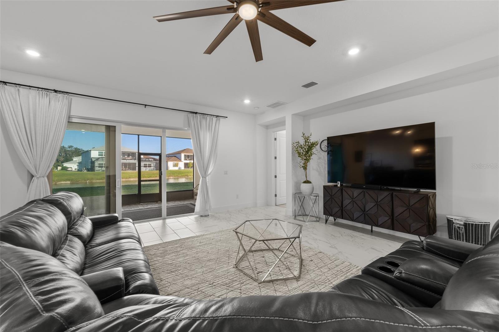 Presenting upscale, spacious living in this stunning six-bedroom, 4.5-bath pond-front residence, ideally in the sought-after gated King Lake Estates section of the Epperson Lagoon Community in Wesley Chapel. This magnificent home offers remarkable space and high-end finishes throughout, starting with a grand foyer featuring a dramatic 14-foot tray ceiling. The main floor showcases 10-foot ceilings, 8-foot doors, a formal living room, and a separate den/office space, ensuring ample room for entertaining and productivity. The home’s bold kitchen features attractive blue cabinetry, built-in appliances including a ceramic cooktop with range hood, and a walk-in pantry secured by a smart lock door. Convenience is maximized with a mudroom entrance from the garage, a first-floor half bath and an oversized laundry room. An in-law suite on the main level provides private accommodations, including a bedroom with separate den, en-suite bath and dual closets. Upstairs, a versatile loft complements the screened balcony overlooking the serene pond, along with two more bedrooms upstairs that feature a Jack and Jill bath with split vanities. Throughout the home, luxurious hanging light fixtures and plentiful recessed lighting enhance the bright, airy atmosphere. Outdoor living is a delight with a first-floor screened and covered patio, offering tranquil, expansive pond views. Additional high-end features include a multi-zoned air conditioning system for optimal comfort, exterior stylish shade shutters, a paver driveway and a side-facing two-car garage. This exceptional property is in the famous Epperson Ranch Crystal Lagoon neighborhood, which is comprised of 7.5 acres of clear blue water, including sandy beaches, swim-up bar and neighborhood features showcasing UltraFi, a community-wide internet and cable experience, Streetleaf solar streetlights, playgrounds, golf cart paths, miles of trails, green spaces and dog parks. This growing area is home to the sought-after Innovation Preparatory Academy and The Kirkland Ranch Academy of Innovation schools, plus a new Publix, Starbucks and Chick-fil-A, while also conveniently minutes from Interstate 75 providing ample shopping and dining options at Tampa Premium Outlets, Shops at Wiregrass, and The Grove & KRATE.