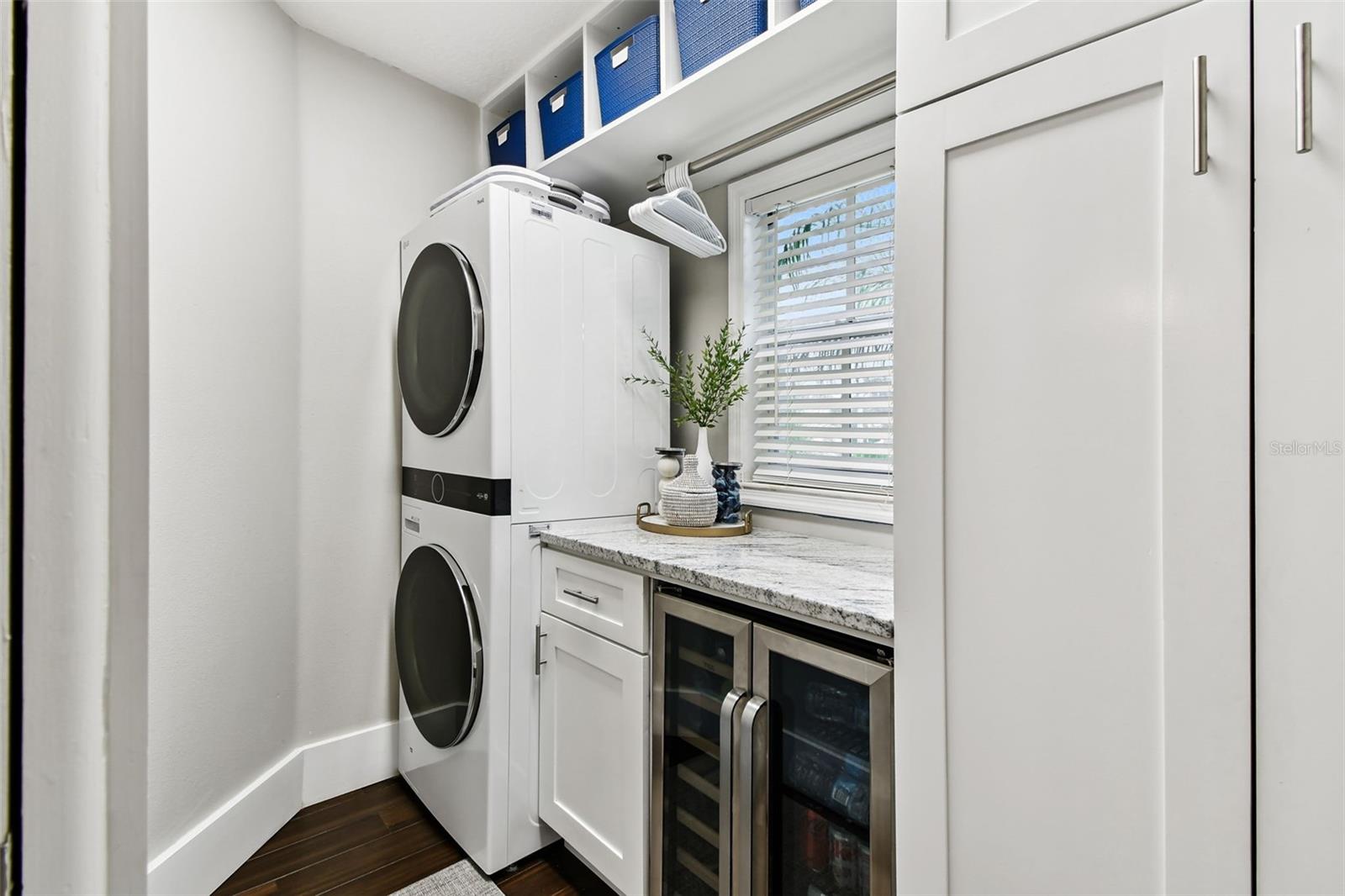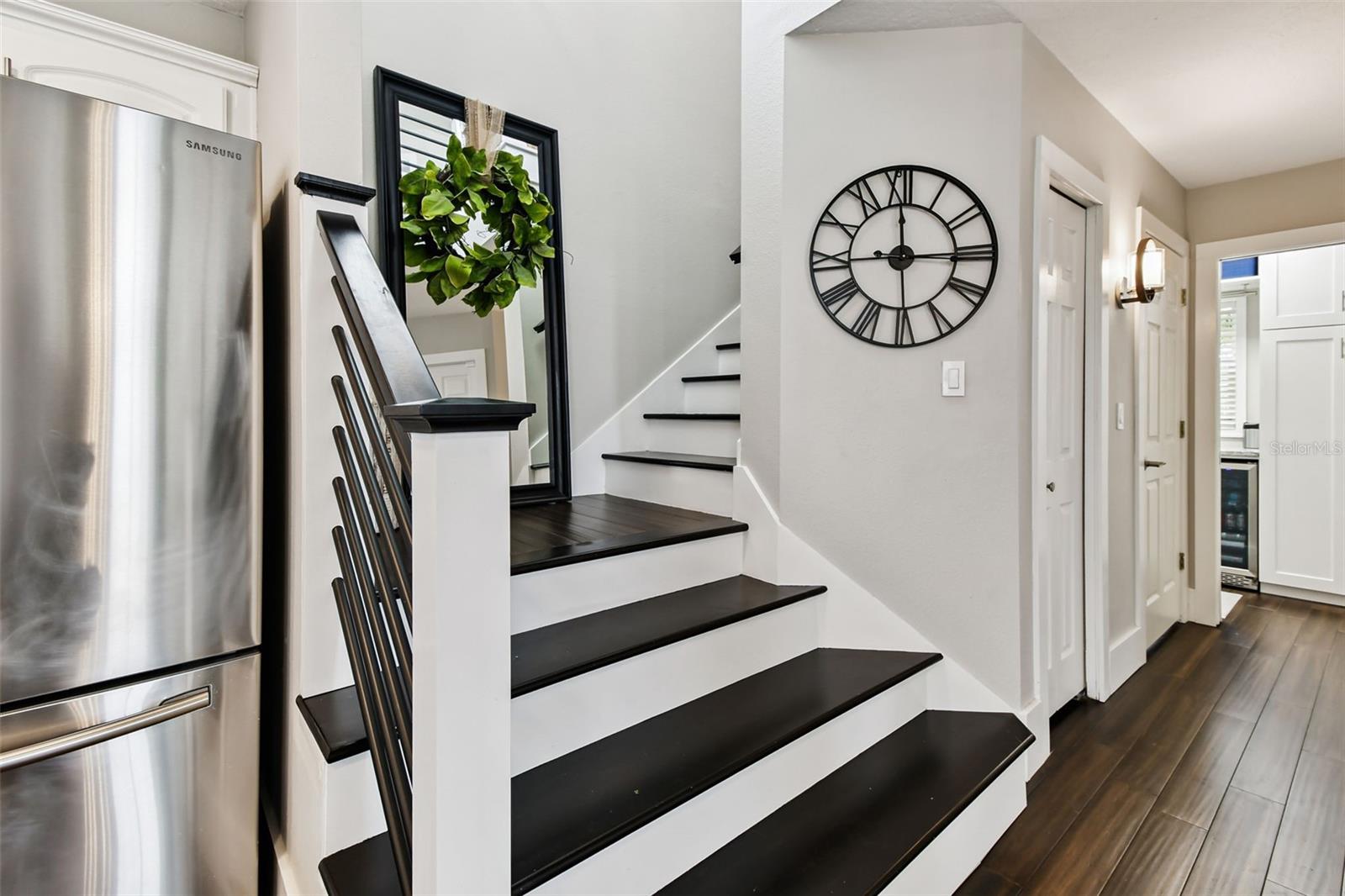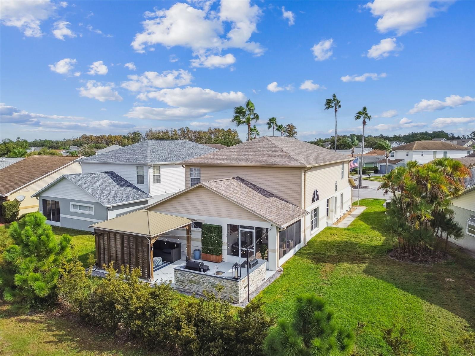 Pride of ownership shines in this METICULOUSLY MAINTAINED, truly low-maintenance 3-bedroom, 2.5-bath home! From the moment you step inside, you’re greeted by a stunning chef’s kitchen, custom-designed staircase, and beautiful Bamboo water resistant hardwood floors accented by oversized 8" baseboards that run throughout the home. The spacious living room features elegant built-ins and large windows that flood the space with natural light. The primary suite is conveniently located on the first floor, offering a custom walk-in closet and a newly remodeled, spa-like shower. Upstairs, you’ll find two additional bedrooms plus an office/flex room—easily a 4th bedroom if desired. A generous loft overlooks the grand living, dining, and kitchen areas, creating an impressive open-concept feel. Step outside to your own private paradise! You’re first welcomed by a charming screened-in patio, complete with sliding doors that lead directly to the primary bedroom—ideal for morning coffee or evening relaxation. Just beyond the patio awaits a luxury outdoor kitchen and grill, boasting over $40,000 in high-end upgrades. It’s the perfect setting for hosting friends, entertaining family, or savoring a peaceful Florida evening with your favorite book. The office closet has been transformed into a temperature-controlled, fingerprint-access wine cellar that will impress any enthusiast—but can easily be converted back to a traditional closet if preferred. The roof is 5 years old and AC is 9 years old. Love the home but hate yard work? This is the place for you! The HOA covers all landscaping, interior & exterior pest control, irrigation system repairs, and even repaints the exterior of the home every 7 years. Just pack your bags, toss that bulky lawnmower, and enjoy true maintenance-free living. This exceptional home is ready to be the next chapter in your story—don’t miss your chance to make it yours!