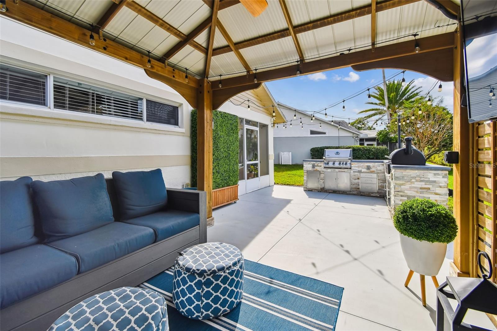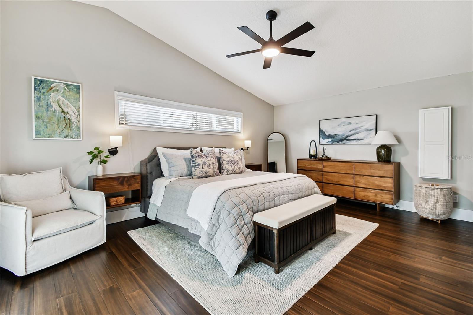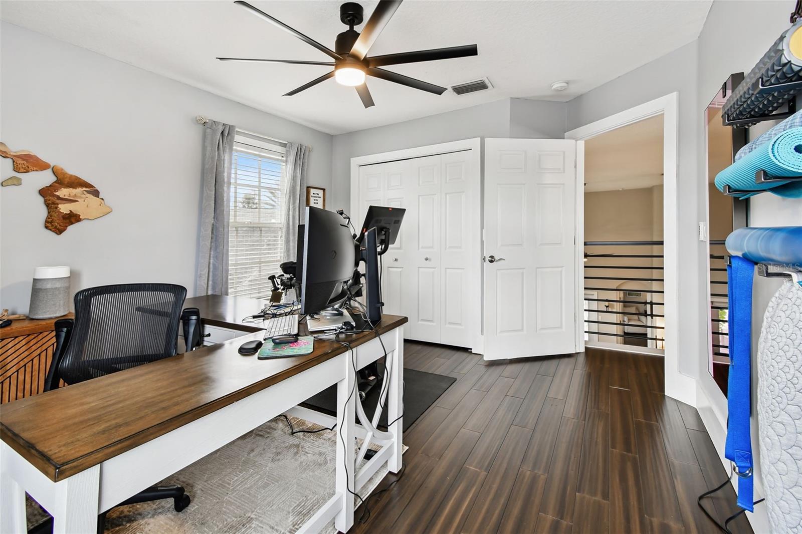 Pride of ownership shines in this METICULOUSLY MAINTAINED, truly low-maintenance 3-bedroom, 2.5-bath home! From the moment you step inside, you’re greeted by a stunning chef’s kitchen, custom-designed staircase, and beautiful Bamboo water resistant hardwood floors accented by oversized 8" baseboards that run throughout the home. The spacious living room features elegant built-ins and large windows that flood the space with natural light. The primary suite is conveniently located on the first floor, offering a custom walk-in closet and a newly remodeled, spa-like shower. Upstairs, you’ll find two additional bedrooms plus an office/flex room—easily a 4th bedroom if desired. A generous loft overlooks the grand living, dining, and kitchen areas, creating an impressive open-concept feel. Step outside to your own private paradise! You’re first welcomed by a charming screened-in patio, complete with sliding doors that lead directly to the primary bedroom—ideal for morning coffee or evening relaxation. Just beyond the patio awaits a luxury outdoor kitchen and grill, boasting over $40,000 in high-end upgrades. It’s the perfect setting for hosting friends, entertaining family, or savoring a peaceful Florida evening with your favorite book. The office closet has been transformed into a temperature-controlled, fingerprint-access wine cellar that will impress any enthusiast—but can easily be converted back to a traditional closet if preferred. The roof is 5 years old and AC is 9 years old. Love the home but hate yard work? This is the place for you! The HOA covers all landscaping, interior & exterior pest control, irrigation system repairs, and even repaints the exterior of the home every 7 years. Just pack your bags, toss that bulky lawnmower, and enjoy true maintenance-free living. This exceptional home is ready to be the next chapter in your story—don’t miss your chance to make it yours!