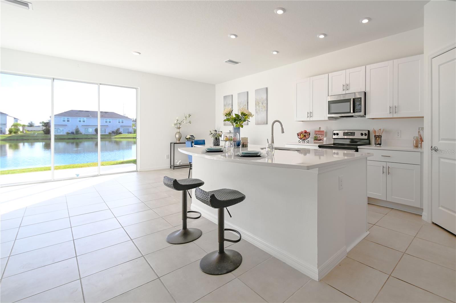 Come enjoy this beautiful NEWLY-BUILT (never occupied) END UNIT overlooking a beautiful pond in River Landing, the new maintenance-free community built by Taylor Morrison in Wesley Chapel. This 3 bedrooms, 2.5 baths, nearly 1600 sq. ft townhome features a fully tiled first floor with open kitchen concept plus powder room, large living room, master bedroom with walk-in closet, large stone countertop, stainless steel full appliance package and more. The second floor has laundry along the hallway, a den space that can be used as a home office station. The owner’s suite has a private full bathroom and a walk-in closet. Both of the secondary bedrooms create large spaces and can be used as bedrooms or an office. Future community amenities include resort-style pool and cabana, grill area, pet park, cornhole lawn, sports field, walking trails with butterfly gardens. This home is conveniently located near restaurants, shops, golf courses, and AdventHealth. It also has easy access to State Road 56 and I75/275. Low CDD and HOA monthly due that covers lot landscaping, irrigation, trash removal, exterior paint, roof replacement, and common area maintenance.