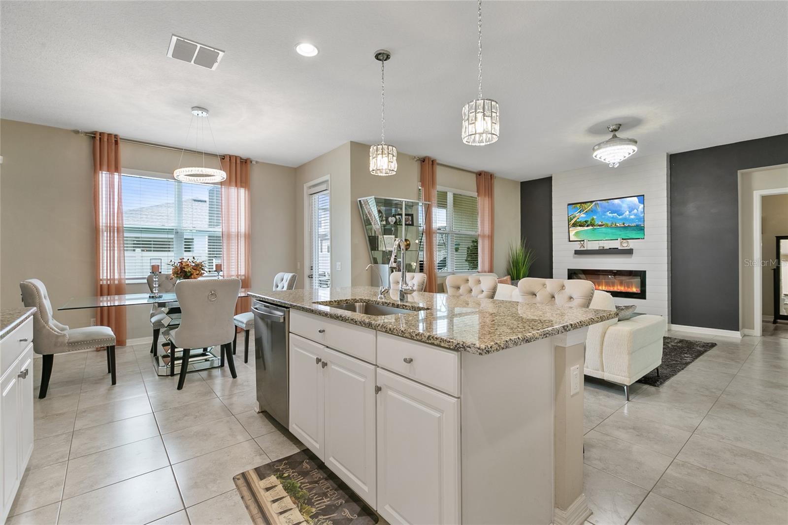 Welcome to this stunning single-story home located in the highly desirable Wesbridge Community in Wesley Chapel! If you're looking for a modern, spacious, and truly move-in-ready home, this property has it all. This beautifully designed residence features 3 generous bedrooms, 2 bathrooms, a flex/family room, and an office/den, offering plenty of space for work, relaxation, or entertainment. The heart of the home is its ultra-gourmet kitchen, featuring: Stylish decorative backsplash, large granite island perfect for meal prep and hosting, granite countertops throughout, stainless steel appliances, 42" upper cabinets providing abundant storage. The home boasts tile floor and luxury laminate flooring throughout the bedrooms—no carpet anywhere—offering elegance, durability, and easy maintenance. The spacious living room includes a custom entertainment center with a decorative fireplace and built-in 55" TV stand, creating a warm and modern atmosphere. The primary suite is a true retreat with two expansive walk-in closets and a well-appointed bathroom. Step outside to enjoy the beautiful Florida weather in your upgraded outdoor oasis: The home originally had a lanai (13x6) which owners had extended and added an extra 15x19. The entire lanai is screened in. Extended outdoor area with premium, high-durability tile flooring, perfect for gatherings or relaxing outdoors Fully fenced backyard with vinyl fencing for added privacy The location is exceptional—directly across from A-rated elementary, middle, and high schools—and just minutes from Epperson Lagoon, Wiregrass Mall, Tampa Premium Outlets, top restaurants, shopping, and major highways including I-75 (less than 10 minutes away). This home truly has it all—style, comfort, premium finishes, and an unbeatable location. Don’t miss your chance to make it yours. Schedule your private showing today!