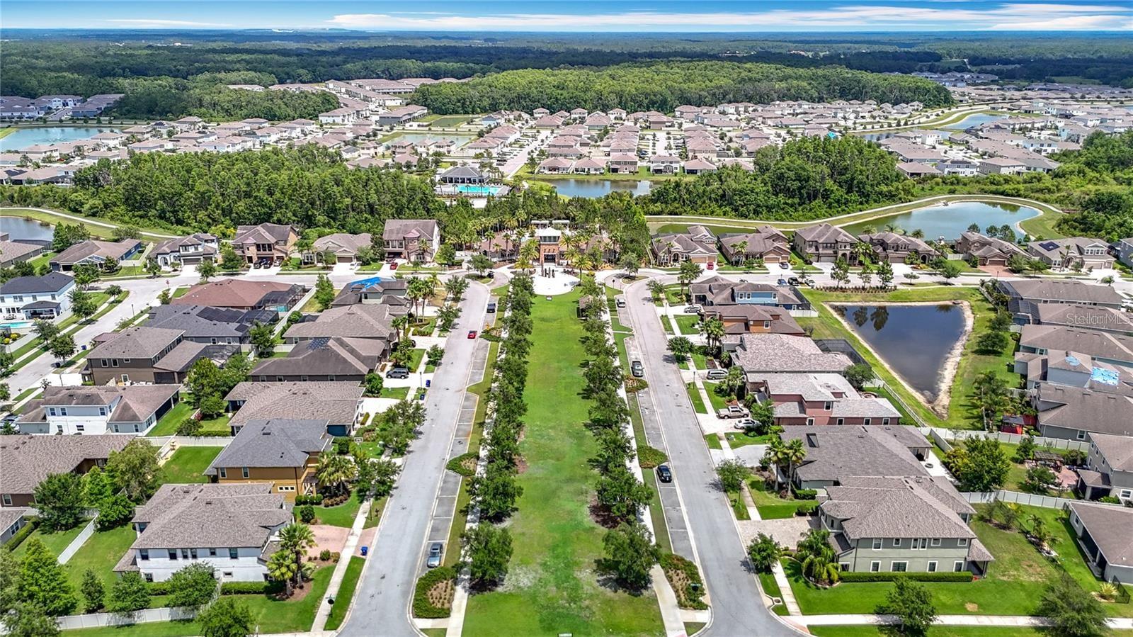 Premium Pond-View Home with NO Rear Neighbors, Luxury Outdoor Living, Flexible Floorplan, OPEN-CONCEPT Design and OWNED Solar in Highly Desired Union Park! This beautifully upgraded single-story residence features a bright open-concept layout with a flexible floorplan, offering four bedrooms or three bedrooms plus a private den with custom built-in wall unit, perfect for a home office, media room, or private flex space. Enjoy peace of mind with fully OWNED solar panels providing significant electric savings, along with a whole-home water filtration system and water softener. Additional highlights include a 3-car garage, NO carpet (tile + luxury vinyl plank in bedrooms), spacious laundry room, oversized refrigerator, mounted TV, and built-in speaker system. The outdoor area is a true private oasis, showcasing a heated saltwater pool, an extended PANORAMIC screened lanai, outdoor shower, and a fully equipped outdoor kitchen with stove, sink, refrigerator, and ice maker. The fenced backyard also features artificial turf, and an open-air deck with pergolas, creating the perfect environment for entertaining or relaxing while enjoying spectacular pond views and NO rear neighbors. Located in the amenity-rich Union Park community with ULTRAFi high-speed internet & cable included in the HOA, residents enjoy resort-style pools, splash pad, clubhouse, fitness center, basketball courts, dog park, playgrounds, scenic trails, and A-rated schools, including Union Park Charter Academy (K–8) within the community. Move-in ready — combining lifestyle, comfort, efficiency, and privacy all in one!