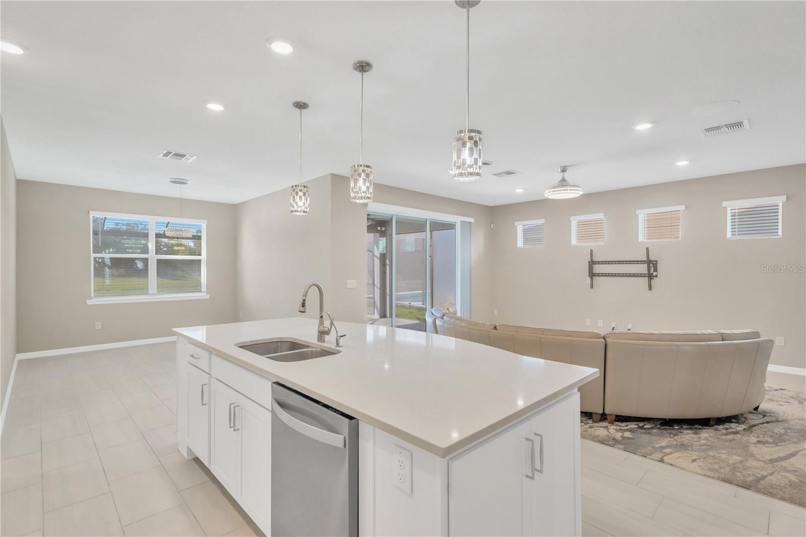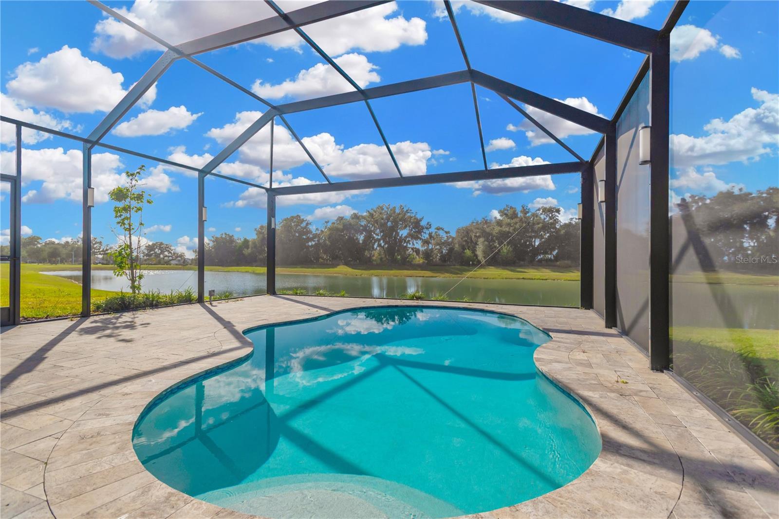One or more photo(s) has been virtually staged. Discover an elevated standard of living at 9107 Rally Spring Loop, an impeccably finished 4-bedroom, 3-bath pool home nestled in the heart of Wesley Chapel’s sought-after Epperson Ranch. Built in 2023, this 2,736-square-foot residence is perfectly positioned on a premium lot overlooking a tranquil pond and protected conservation land, ensuring total privacy with no rear neighbors. The bright, open-concept interior features soaring ceilings and panoramic views that lead into a chef’s kitchen equipped with a large quartz island, high-end stainless appliances, custom cabinetry, and an under-sink reverse osmosis system. Beyond the elegant living spaces, the home is packed with high-end upgrades including whole-home audio wiring, a full-house water filtration system, and a 3-car tandem garage with upgraded epoxy flooring. Step outside to your private oasis—a screened-in lanai and sparkling pool set against a peaceful natural backdrop. As a resident of this vibrant, golf cart-friendly community, you’ll enjoy a vacation-inspired lifestyle with exclusive access to the world-renowned 7.5-acre Crystal Lagoon®, featuring sandy beaches, a swim-up bar, kayaking, and paddle-boarding, all while staying connected with ULTRAFi high-speed internet. This move-in-ready sanctuary is located just minutes from top-tier shopping and dining at The Shops at Wiregrass and Tampa Premium Outlets.