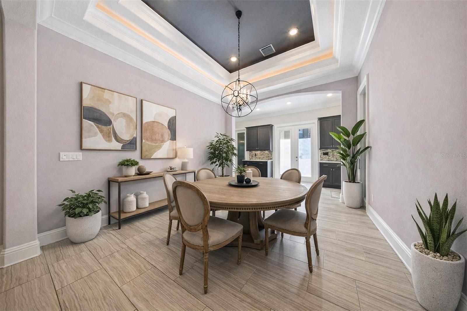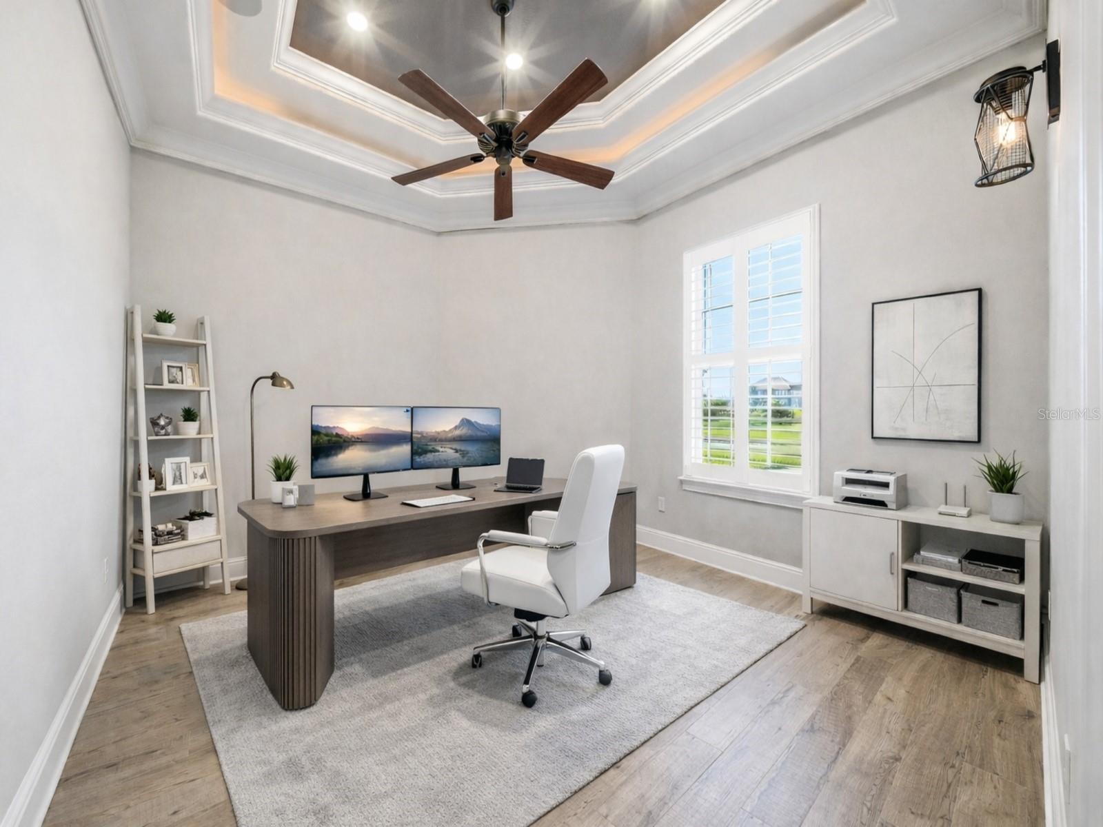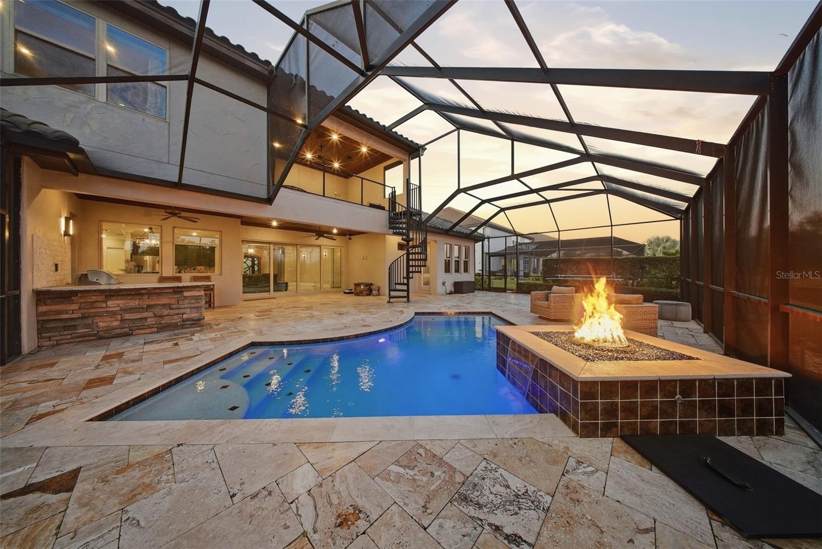 One or more photo(s) has been virtually staged. Experience elegance in this meticulously crafted residence, positioned in the exclusive gated Graybrook section of the Watergrass community. From the moment you arrive, the home commands attention with its grand stone circular entrance—setting an impressive tone for the refined luxury found inside. Step through the custom made front door to soaring ceilings, dramatic illuminated tray accents, and a seamless blend of architectural sophistication and comfort. The main level highlights four spacious bedrooms and four beautifully finished full baths. The primary suite is a sanctuary of serenity, featuring custom-designed closets and a spa-inspired bathroom complete with a freestanding soaking tub, rain shower and multiple massage sprays for a truly indulgent experience. At the heart of the home, the gourmet kitchen is a culinary showpiece, equipped with premium Viking appliances, a large entertainer’s island, and exquisite craftsmanship throughout. Its open flow into the family room creates an inviting environment ideal for elegant hosting, relaxed living, and unforgettable gatherings. Just off the formal dining room, a private courtyard provides a peaceful setting for alfresco meals or morning coffee. Designed for resort-style living, the outdoor space is nothing short of exceptional. The heated, saltwater pool/spa are enclosed within an expansive screened lanai, offering year-round enjoyment and seamless indoor–outdoor living. This luxurious setting is further elevated by a fully equipped outdoor kitchen for effortless entertaining and a cozy fire-pit area that adds warmth and ambiance to evenings by the pool. Beyond the lanai, the home backs onto pristine conservation land and a tranquil pond, ensuring privacy, natural beauty, and breathtaking views that enhance the sense of retreat. A spacious three-car garage provides ample storage and convenience, completing the main level. Upstairs, a versatile media room or fifth bedroom awaits—complete with its own full bath and access to a private balcony. Perfect for movie nights, game nights, or simply unwinding, this elevated space offers flexibility and comfort. As a resident of Watergrass, you’ll enjoy resort-style amenities, including three community pools, a state-of-the-art clubhouse with a gym, a pavilion, and numerous parks—including one right in Graybrook. Convenience is unmatched with I-75 just minutes away and everyday essentials like Publix and Starbucks just down the street. Top-rated schools, including Watergrass Elementary, Kirkland Ranch Academy of Innovation, and Innovation Preparatory Academy, are just moments away. The home’s prime location also offers easy access to Tampa Premium Outlets, Wiregrass Mall, KRATE at the Grove, top hospitals, and an array of dining and retail options. This extraordinary home offers an unparalleled blend of luxury, convenience, and community living. Don’t miss the opportunity to make it yours—schedule your private tour today!