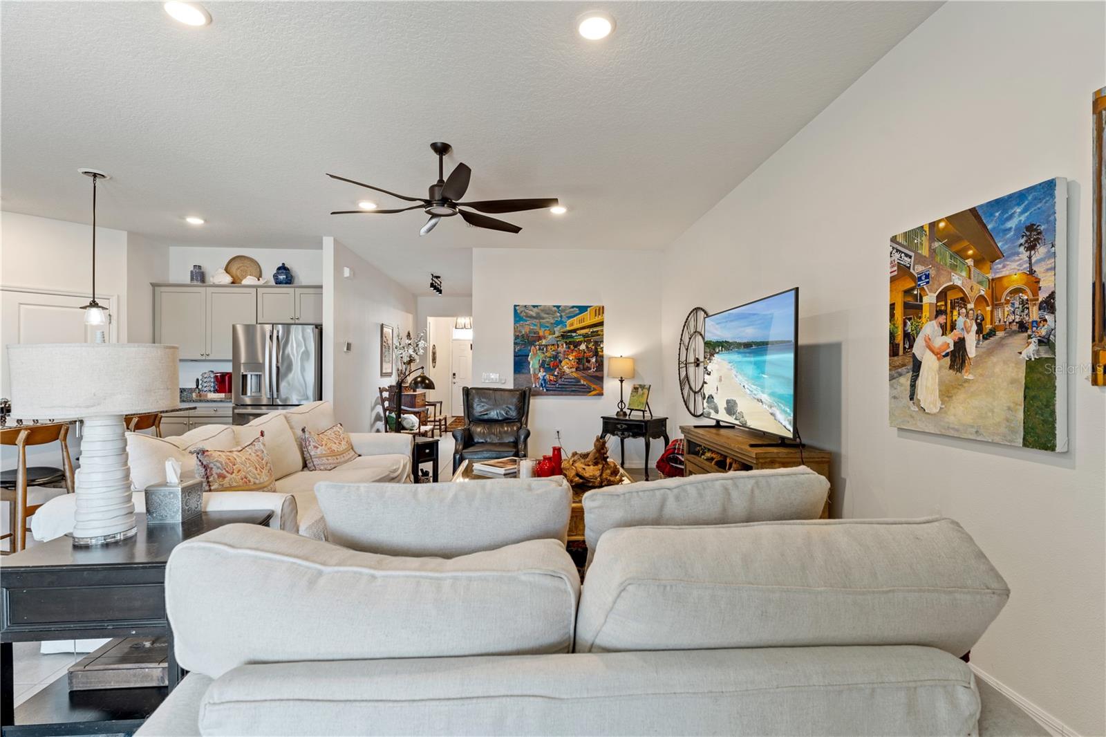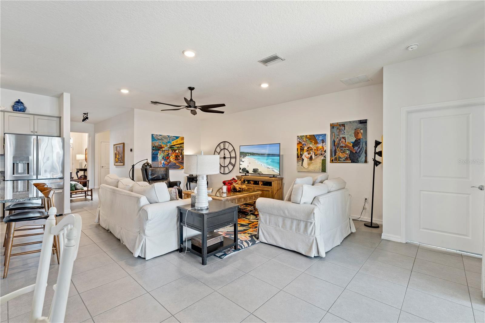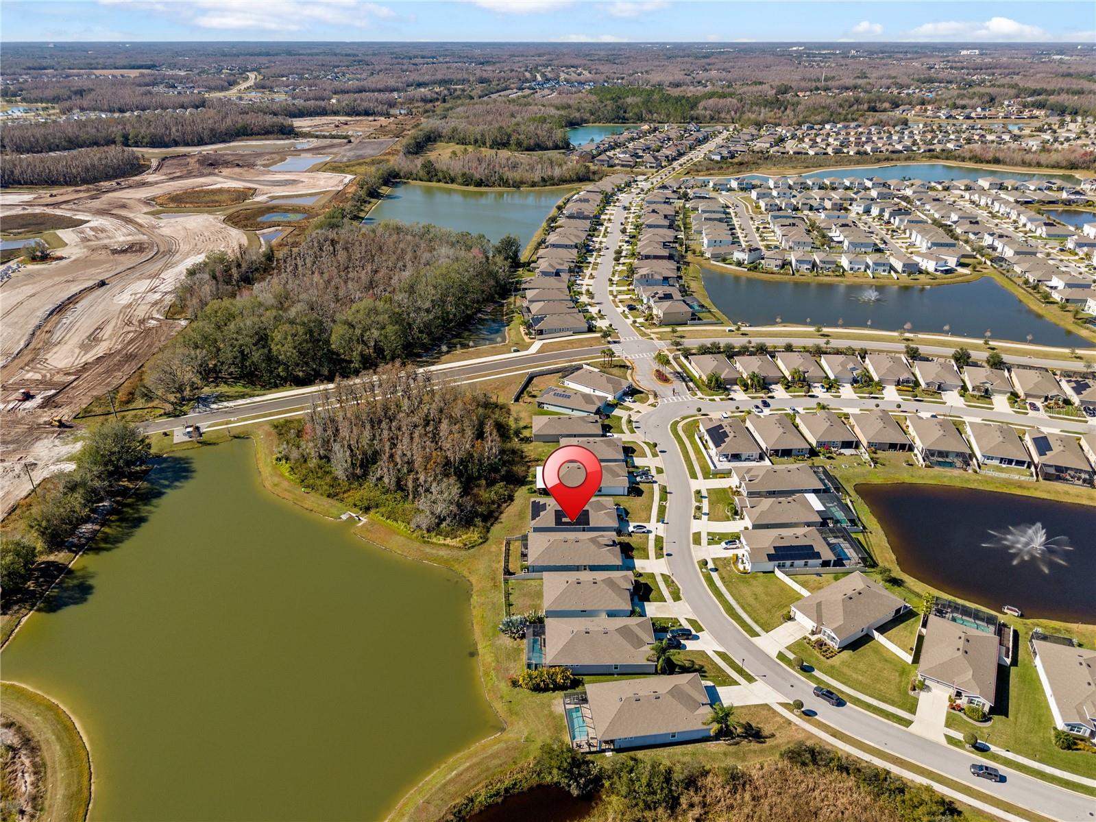 Pond-front, single-story home located in the Union Park master-planned community of Wesley Chapel, Florida, featuring a screened lanai with direct pond frontage and unobstructed water views behind the home. Built in 2019, this 4-bedroom, 2-bath single-family residence offers an open-concept floor plan designed for everyday living, with tile flooring throughout the main living areas and connected kitchen, dining, and living spaces. The kitchen includes a center island, pantry, ample cabinet storage, and functional counter space with clear sightlines to the living area and rear pond. The primary bedroom is privately situated and includes an en suite bathroom with dual sinks, walk-in shower, and linen storage, while three additional bedrooms provide flexible use options for a home office, guest room, or hobby space. The screened-in patio overlooks the pond directly behind the home and offers covered outdoor living space suitable for daily use and seasonal enjoyment. Attached 2-car garage with driveway parking. Union Park is a CDD community in Wesley Chapel with a wide range of amenities including multiple resort-style pools, clubhouse, fitness center, dog parks, playgrounds, open green spaces, walking trails, and community parks. The Wesley Chapel location offers convenient access to SR-56 and I-75, along with nearby shopping centers, grocery stores, dining options, medical facilities, and everyday services. Located close to Tampa Premium Outlets, The Shops at Wiregrass, local parks, and recreation areas, providing easy access to many of the most used destinations in Wesley Chapel and the surrounding Tampa Bay area.