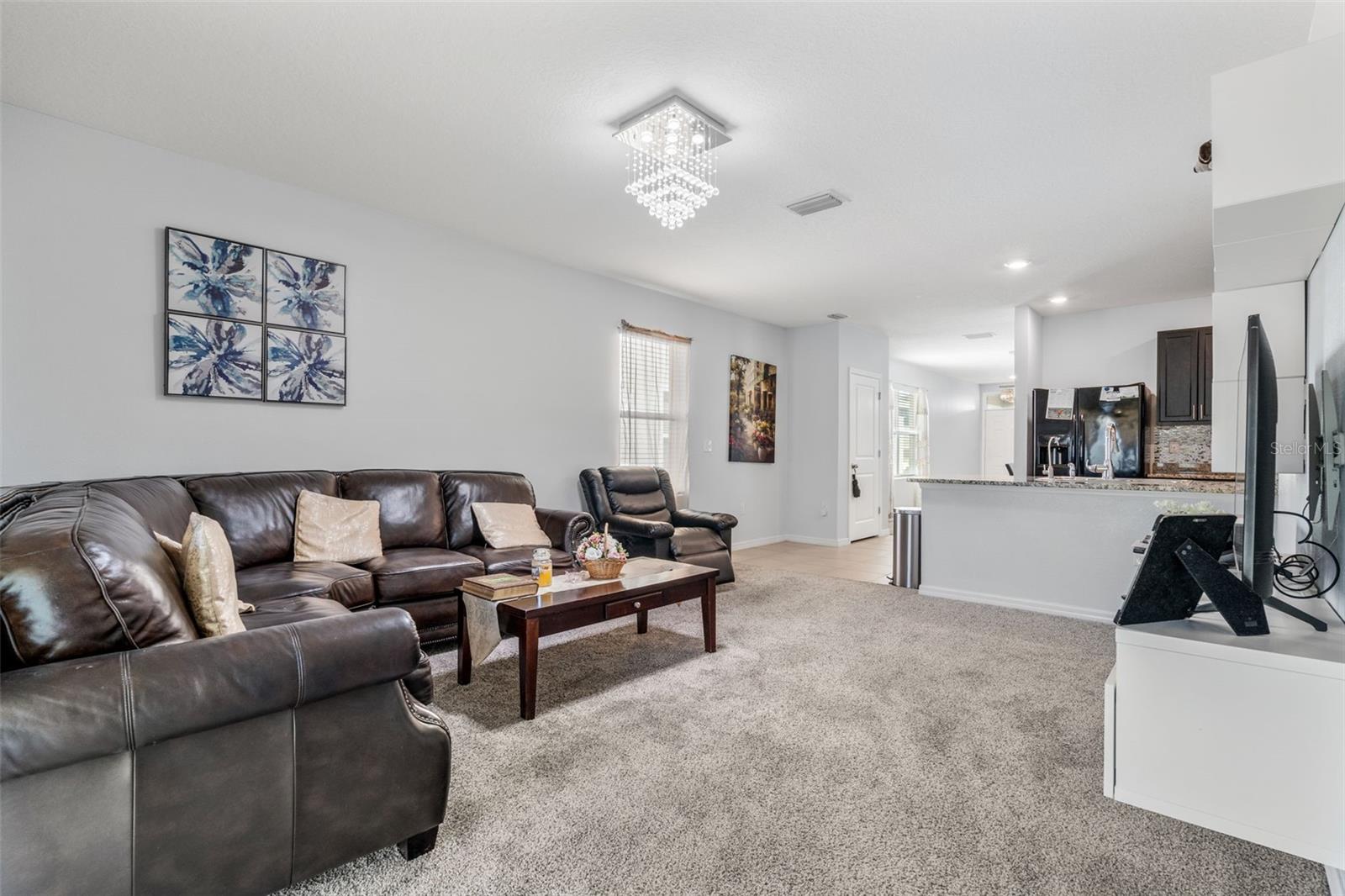 If you thought an affordable, single family home in an engaging lifestyle community was out of reach, you need to see this! Take a short stroll or bike ride to renowned and world class Crystal Lagoon from your comfortable, well planned 3/2 in Epperson Ranch South. The flowing floor plan features ample living space, a formal dining area and split bedroom plan. Move in ready, this delightful space features new carpet, shimmering lighting throughout and a nicely equipped kitchen with granite countertops and full appliance package. You'll also appreciate the primary suite's well organized walk in closet as well as a separate inside laundry room with included washer and dryer. Water filtration system and softener are also included. The Crystal Lagoon turns everyday living into a vacation with its vibrant blue water, sand beaches, kayaking, paddle boarding swim up bar and restaurant and more.