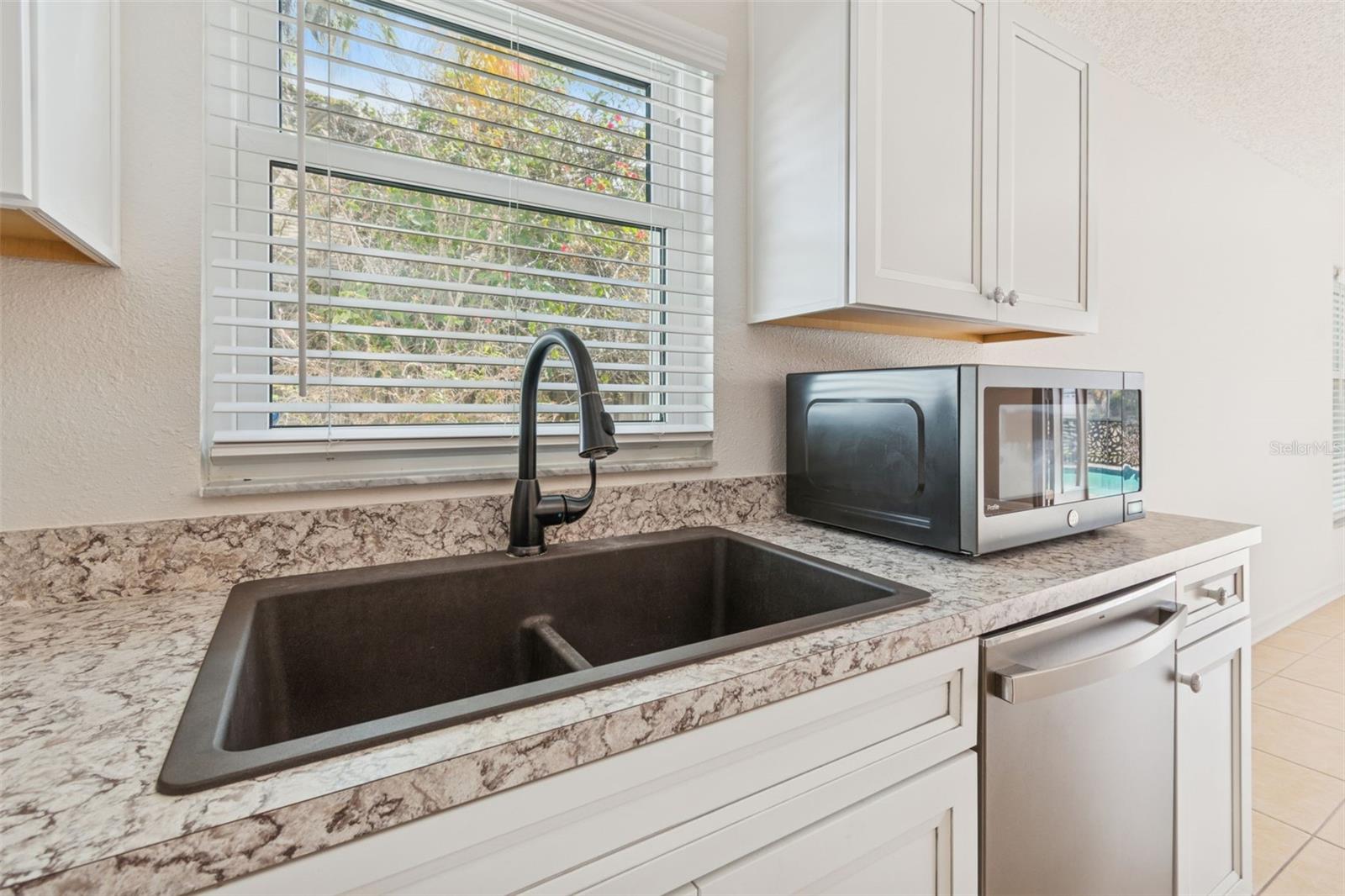 IMMACULENT POOL HOME IN THE HEART OF WESLEY CHAPEL! Check out this 3 bedroom, 2 bathroom, 2 car garage screened pool home in the conveniently located subdivision of The Villages of Wesley Chapel. This quiet neighborhood 1 mile away from I-75 has the charm you have been looking for without the high HOA fees, NO CDD fees and is in a NON FLOOD ZONE. The curb appeal draws you into the open floorplan with tall vaulted ceilings. The pride of ownership is evident in every area of the house. From the upgraded hurricane doors and windows, newer roof, remodeled kitchen with upgraded "slate" stainless steel GE appliance package, remodeled bathrooms, pool heater and for the nature lover and hummingbird and butterfly garden! Fresh paint and newer carpeting adds a fully finished feel throughout the home. The primary bedroom and guest bedroom have a double door passthrough. This would make a perfect office, den, study or nursery. The back screen pool overlooks the neighborhood pond-so no direct rear neighbors! The home is part of a greater community and all that it has to offer, with shopping, dining, entertainment, and the like- you'll never have to travel far to get to all the community activities and features there is in Wesley Chapel. The current owner has continuously improved the house since 2018 with the following: Roof 2024 | A/C 2018 | Washer & Dryer 2018 | GE Slate Stainless Steel Kitchen Appliances 2020 | Kitchen Remodeled 2021 | Pool Heater 2023 | Rescreened pool cage 2023 | Hurricane Windows 2020 | Hurricane Doors 2024
