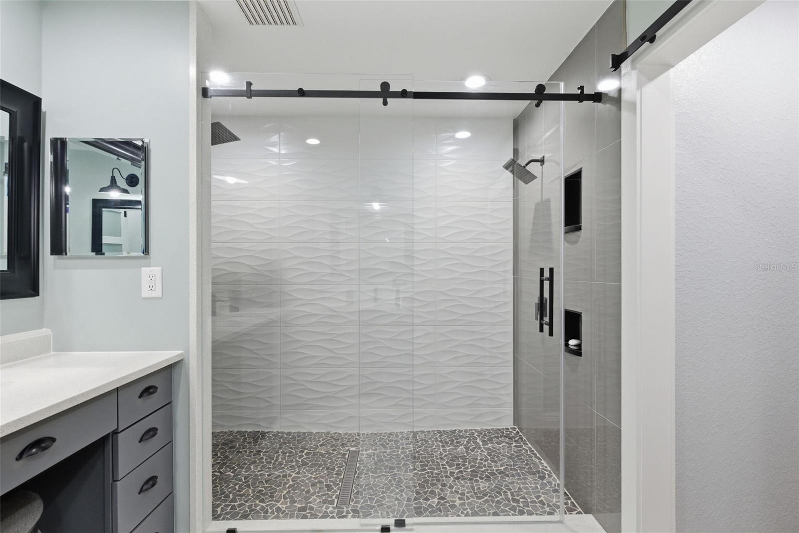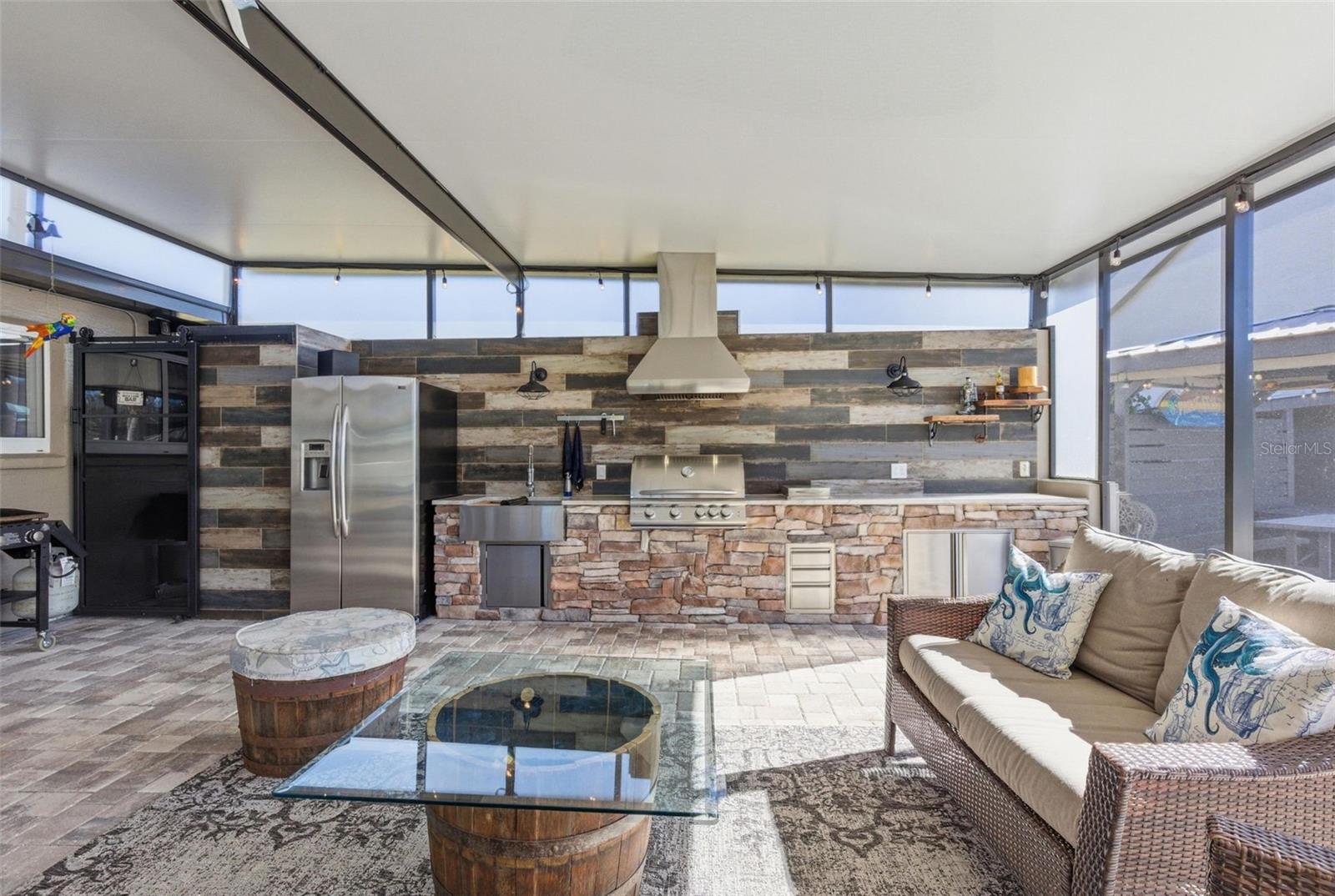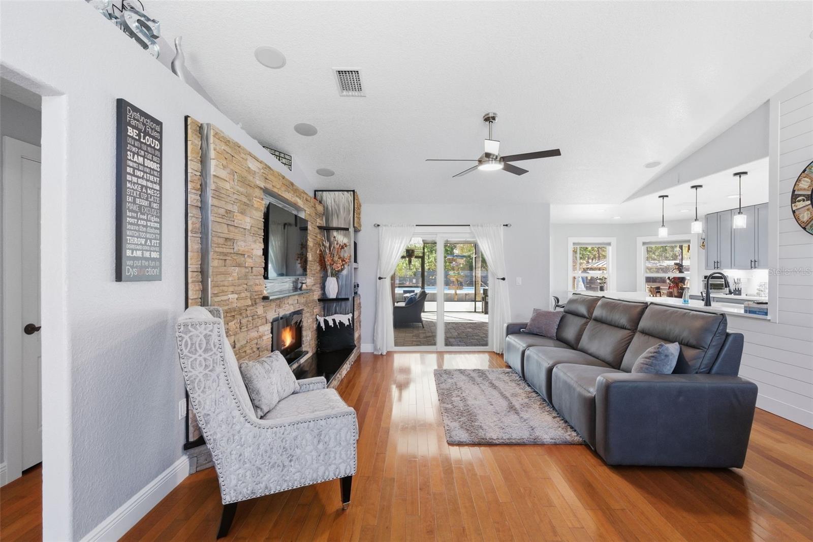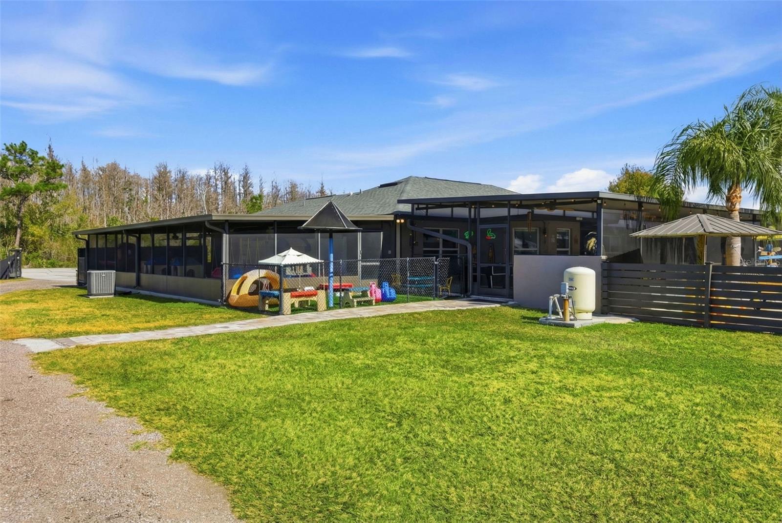 Exceptional opportunity in Wesley Chapel. This one-owner, rare and versatile 1.6-acre property zoned AG features a gated entrance with a fully fenced yard and offers two beautifully designed homes, ideal for multigenerational living, rental income, or a private compound, while enjoying the freedom of NO HOA and NO CDD fees. The 2,018 sq. ft. main residence offers three bedrooms and two bathrooms and has been extensively updated. The home was painted in 2025 and features new WINDOWS in 2021(double-pane argon gas-filled) sliders, a back door, and a new ROOF in 2021. The new KITCHEN 2025 showcases quartz countertops with a waterfall edge, soft-close custom cabinets (pull-out shelves in base cabinets), undercabinet lighting, and a touchless faucet, and includes an induction range, microwave, dishwasher, refrigerator, and full-size stackable NEW WASHER & DRYER 2025. The Primary bath was updated in 2020 with a large, dual-head shower featuring glass doors and accented by a barn slider entry door, and a new LAUNDRY room in 2025 includes cabinets. Additional living space includes a 20x50 screened recreational room, ideal for year-round enjoyment. Outdoor living is exceptional with new OUTDOOR LIVING 2022, featuring a paved 25x50 lanai with an outdoor kitchen complete with a grill, side burner, exhaust hood, refrigerator, sink, under-counter cabinets, and granite countertops, plus a gas fireplace with mantle and 65-inch television. The 24? round pool area includes a large paved deck and white sand sunning area, gazebo, covered outdoor shower with hot and cold, sundeck, and low-voltage lighting throughout, creating a private resort-style setting. Additional upgrades include a front sprinkler system, low-voltage lighting, a paved entryway, a new TANK & WELL PUMP in 2021, a new WATER SOFTNER system in 2023, a gas TANKLESS WATER HEATER in 2021, and hardwired security systems with cameras for added security. The secondary home offers 1,500 sq ft of beautifully designed living space with three bedrooms, 1 full bath, and one-half bath that was freshly painted in 2025. It features a new METAL ROOF 2025, a new gas TANKLESS WATER HEATER in 2021, a new JACUZZI TUB 2024, and a new 2024 BALCONY DECK with a custom handrail overlooking the pool. The home includes a fridge, microwave, range, and surround sound system, making it perfect for guests, extended family, or income potential. The property also includes a 40x60 detached garage, inside you will find RV parking with hookups, and an impressive 40x30 open WORKSHOP featuring a 9,000 lb lift, a 20x30 air-conditioned recreation room with tiled floor, a 20x30 enclosed workshop, and 220 power with 50-amp service, offering endless possibilities for hobbyists, business owners, or collectors. The expansive property offers ample space for a variety of uses, including the ability to keep farm animals (chickens & turtle not included) or horses, create a small homestead, or enjoy room for workshops, recreational equipment, or other hobbies. With no HOA restrictions, the land provides flexibility and freedom rarely found, allowing you to truly tailor the property to your lifestyle. Conveniently located with multiple access points to Interstate 75, this property is just minutes from the brand-new Target, The Grove, movie theater, restaurants, shopping malls, children's hospital opening late 2026, two nearby hospitals, and more.