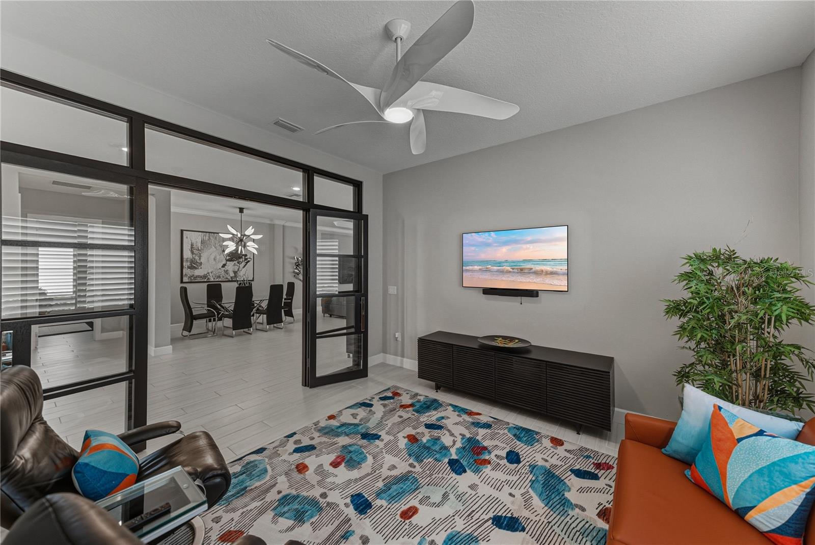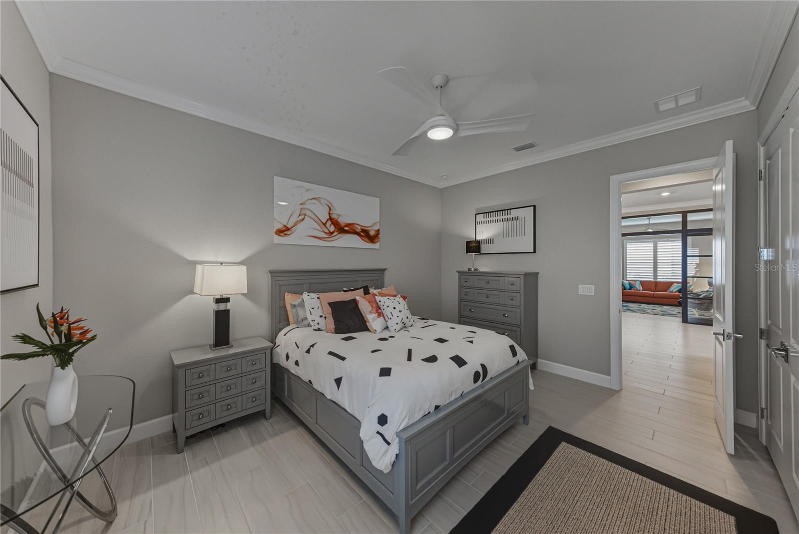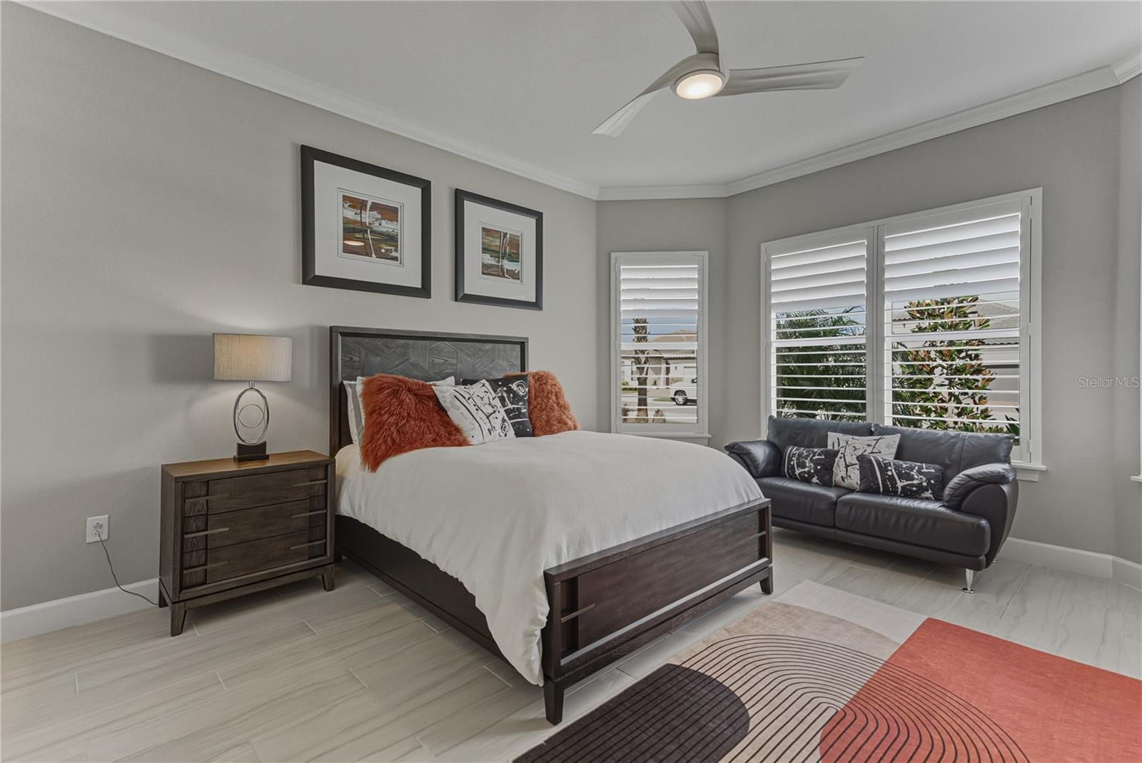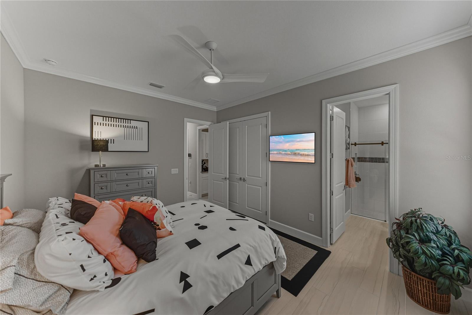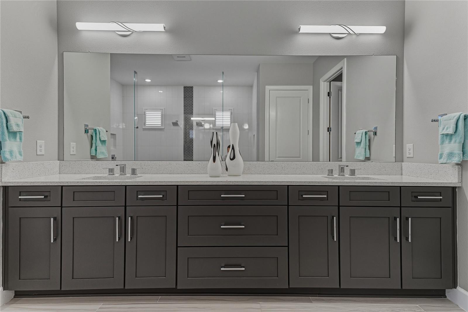 Luxurious custom upgrades are put into this Taylor Morrison built home. Located on a conservation lot, tucked away, in Esplanade of Wiregrass, makes it a private retreat. This stunning residence offers the ultimate in privacy, luxury, with thoughtful design. Step inside foyer to soaring tray ceilings with custom Brazilian mahogany glass doors, beautifully designed tile flooring, and striking custom lighting. This spacious three bedroom home boast three full baths, a versatile flex space, bonus room or dedicated office/den and formal dining. The property blends elegance and comfort while bringing the outdoors in with the double pocket sliding glass doors that lead you to the pool. The heart of the home features a gourmet kitchen with sleek quartz countertops, top-tier cabinetry with under mount lighting, pull outs and soft close drawers, huge island 10x5, Cafe and Monogram Appliances, a walk-in pantry along with designer finishes throughout. The kitchen has an additional four feet making this homes living space seamless and providing an intimate dining area. The additional room ideal for an office no detail was left unturned in this custom Brazilian mahogany glass wall. When the doors open they fold perfect to the transom windows and hold sound very well. The pampering owner’s suite with tray ceiling and push out bay windows is a true retreat with custom walk-in closet, a spa-like bath including an oversized walk-in shower and custom vanities that elevate everyday living. The second bedroom enjoys en suite bath and walk-in closet. This is perfect for visitors. The third bedroom in the front of the property is over sized with the large bay window push out. Function meets style in the expansive laundry room with cabinets, sink and drop zone. This extra large mudroom space is just off the generous 2-car garage with an extra four foot in length and width, measuring 25x25. Equipped with a 220 outlet for electric cars. Step outside to your private oasis—a sprawling screened lanai with pool, spa, elegant marble deck, outdoor grill, custom hood, gleaming granite refrigerator, fireplace, dining and living areas. The custom pool with sun shelf and spa are all perfectly framed with a 50 foot picture window screen with unobstructed serene conservation views. This exceptional property offers peace, privacy, and a truly elevated lifestyle. Don’t miss your opportunity to own a custom-crafted masterpiece in one of the most desirable settings available. Enjoy the clubhouse with an on-site café, swimming pools, fitness center, game room, walking trails, dog park, pickle ball and tennis. The best of Wesley Chapel Wiregrass Location featuring twenty golf courses with 30 mins, the best restaurants, wonderful shopping, 3 hospitals, salons, and much much more. Irrigation water is reclaimed.