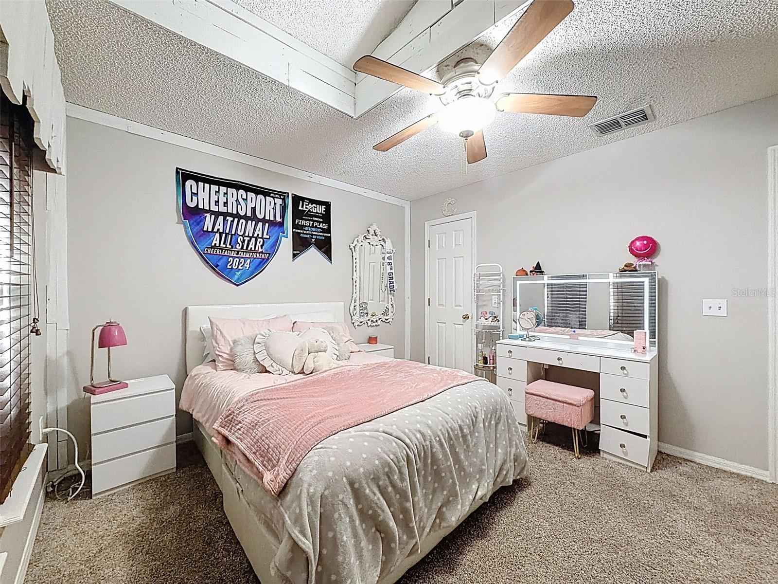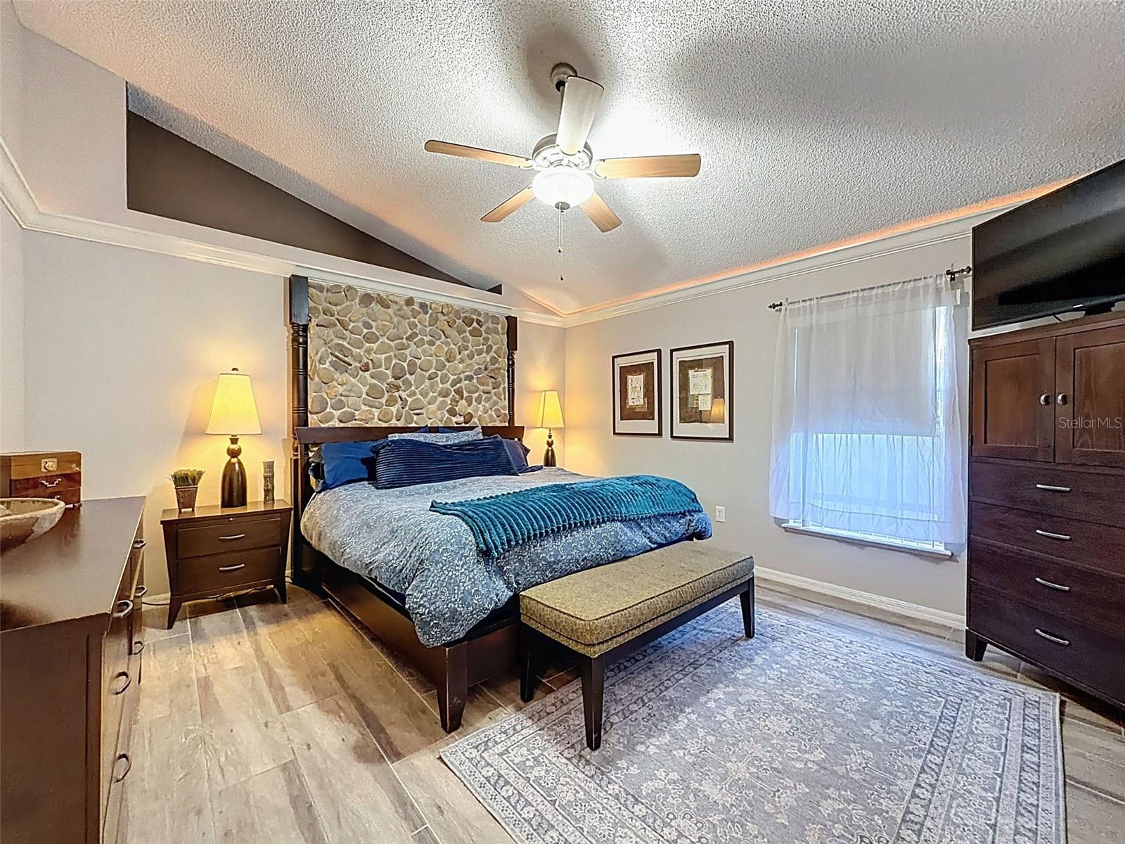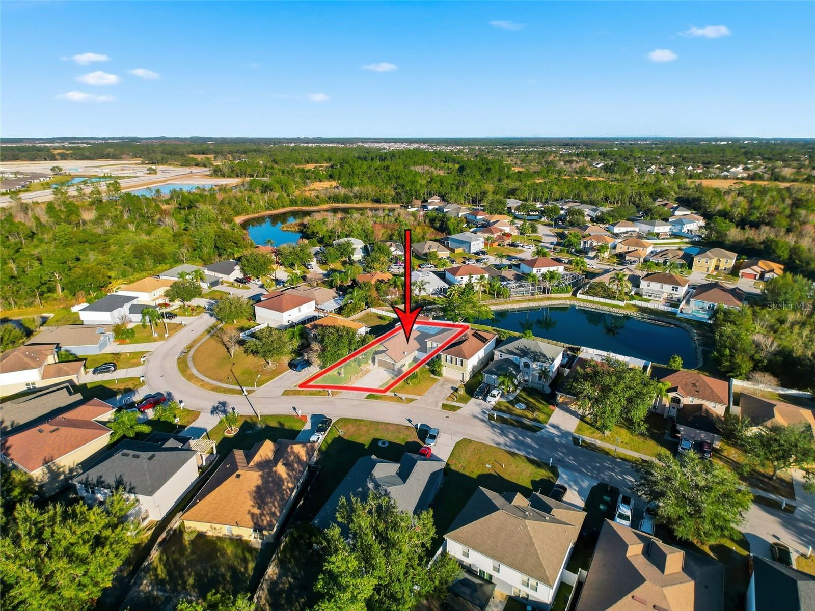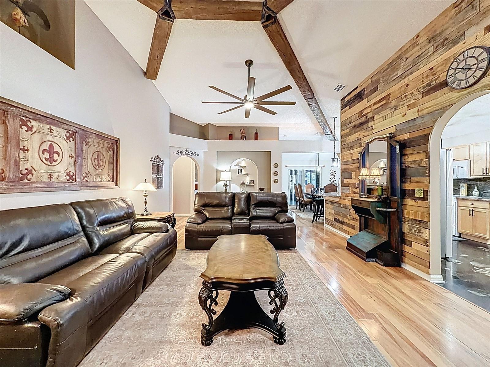 Meticulously maintained 4BR/2BA water view home in the sought-after Aberdeen community featuring NO CDD and LOW HOA, ideally located in the heart of Wesley Chapel. This open-concept, split-floor plan home includes vaulted ceilings with beams, lighted plant shelves, and a custom accent wood wall in the living room. The renovated kitchen offers granite countertops, brand new refrigerator (2025), tile backsplash, upgraded sink, solid wood cabinetry with pull-out shelves, breakfast bar, custom built-in pantry with barn door, and added cabinetry for extra storage. The spacious primary suite features tile floors, ambient crown lighting, plant shelves, a renovated ensuite with solid wood cabinets, walk-in shower, added storage, and a large walk-in closet. Secondary bedrooms feature newer carpet and are conveniently located near the guest bath with tub/shower combo and built-in hallway storage niches. A standout feature is the fully insulated, air-conditioned 12x20 flex space (2021) with 220V and 110V power, ideal for a workshop, in-law suite, guest quarters, or exercise room. Additional upgrades include a new A/C (2022), roof (2017), tankless water heater (2016), fence with multiple gates (2018), 10x16 storage shed with power (2018), widened driveway, stone accents, automatic sliding door to the screened lanai, dog washing station with hot and cold water, French drains, sprinkler system, water softener, and gutters. Enjoy the 20x20 screened patio with an insulated roof overlooking a peaceful pond-view backyard—perfect for relaxing or entertaining. Conveniently located near Wiregrass Mall, Epperson Lagoon, multiple golf courses, colleges, hospitals, I-75 and I-275, Tampa Premium Outlets, beaches, airports, Busch Gardens, Disney theme parks, dining, and shopping. Don’t miss this exceptional opportunity!