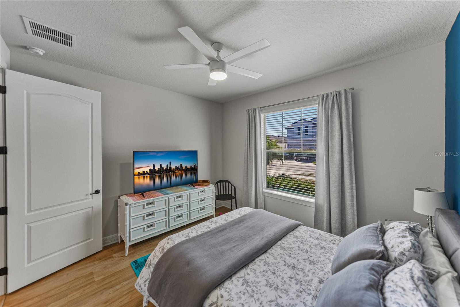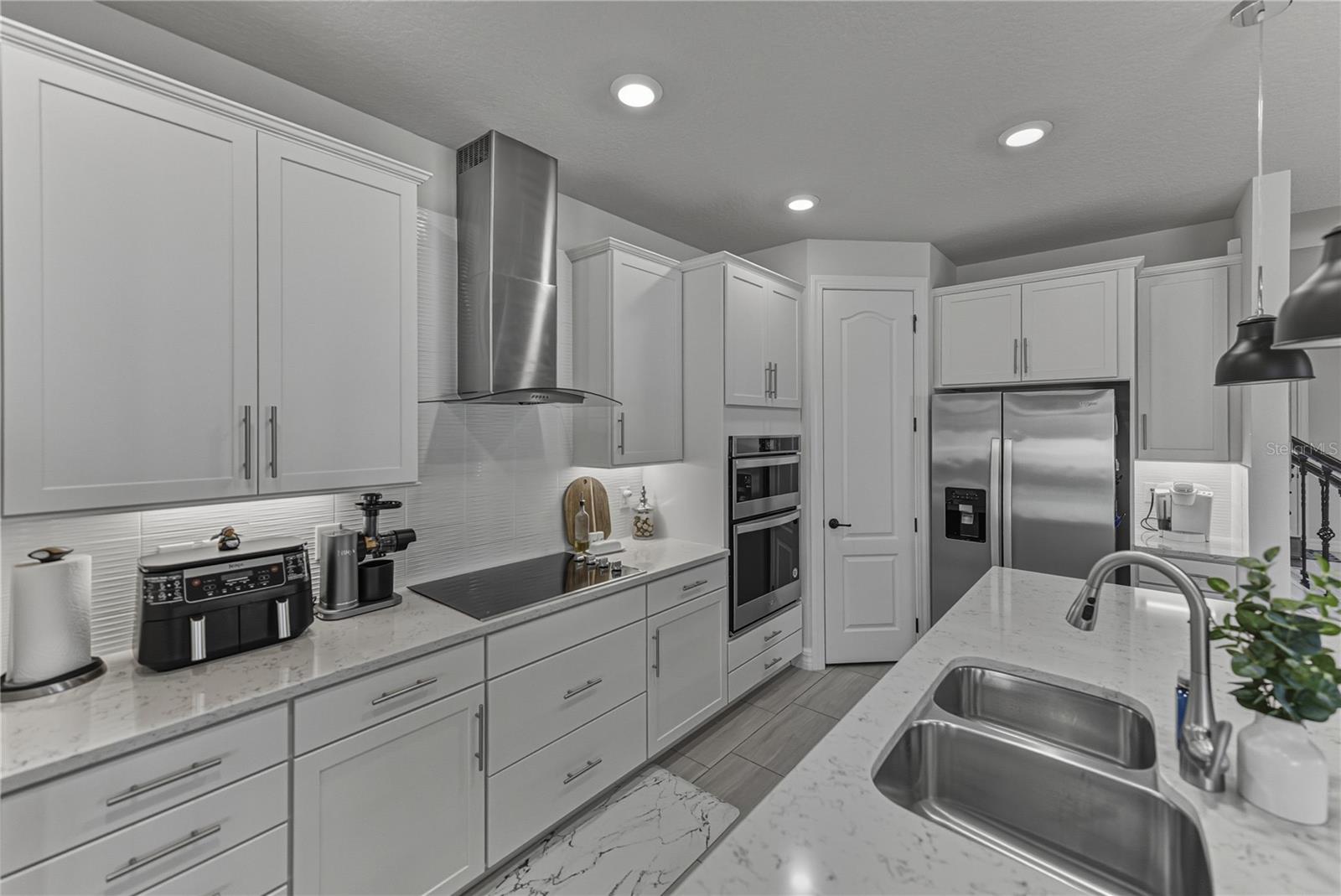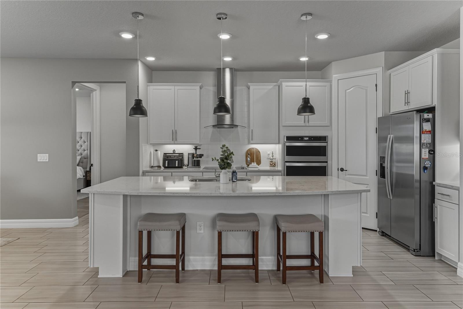 Wake up every day to the feeling of living on vacation in the Epperson Lagoon community, home to the country’s first crystal-clear lagoon and one of Wesley Chapel’s most exciting lifestyles. Set on a premium conservation lot with no rear neighbors, this 2020 built, 2 story, 3 bedroom + office, 3 bath home with loft and a tandem 3 car garage pairs thoughtful upgrades with easy, resort-style living. Curb appeal is immediate with a paver driveway, palm-lined landscaping, and a welcoming entry. Inside, natural light fills the open living spaces thanks to the home’s ideal orientation, highlighting 8’ interior doors, upgraded trim, and clean, modern finishes throughout. A private office behind glass French doors offers a polished workspace that feels tucked away yet connected. The kitchen anchors the home with an upgraded layout designed for entertaining and effortless everyday cooking. A built-in smart wall oven with guided cooking, a separate cooktop with designer hood, a cabinet-integrated microwave, a refrigerator surrounded with cabinetry, an upgraded tile backsplash, and extra pull-out storage keep the space functional and visually refined. The living and dining areas flow effortlessly around it, creating a comfortable setting for gatherings large or small. Indoor/outdoor living becomes a reality when the triple stacking sliding doors open to the newly screened back porch revealing the stunning private view. The primary suite is privately positioned and sunlit, offering a true retreat with a walk-in closet and an ensuite bath that features a garden soaking tub, walk-in shower with rainfall head and handheld wand, designer tile, and comfort-height cabinets that elevate the daily routine. Also on the first floor is a spacious guest bedroom near the home’s second full bathroom, and an elevated laundry room with cabinetry, a utility sink, a pull down spray faucet, and a storage closet. Stroll up the staircase to an incredibly flexible loft that presents to opportunity for a media room, playroom, or second living area. A generously sized third bedroom and a third full bathroom is also upstairs creating a truly separate guest retreat. Peaceful Florida living awaits outdoors. The screened lanai is finished with no-see-um mesh and overlooks a fully fenced backyard backing to conservation, offering privacy, tranquil views, and space to unwind. Updated landscaping, garden lighting, and mature palms complete the setting. Additional highlights include Nest thermostats on both levels, keyless entry, video doorbell and security cameras, a tandem garage bay ideal for a golf cart or extra storage, and plumbing in place for a water softener system. Beyond the home, Epperson delivers a lifestyle unlike any other, centered around its iconic lagoon with sandy beaches, water activities, events, and a true community feel. Everyday conveniences including Publix, dining, medical offices, schools, and more are just minutes away. This is more than a home, it’s a lifestyle upgrade. Schedule your private showing and experience it for yourself.