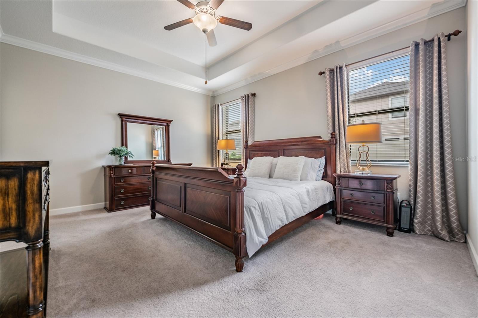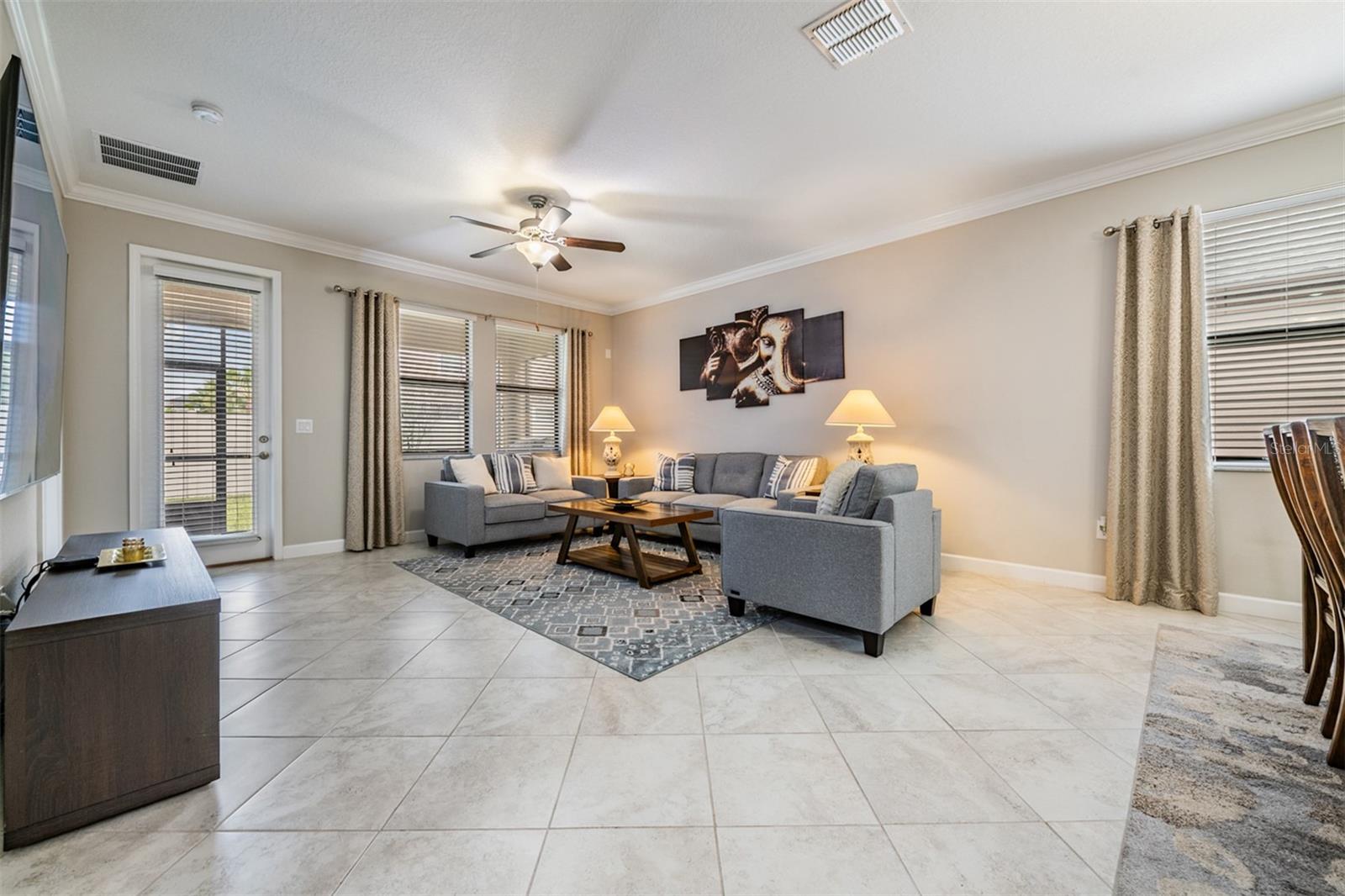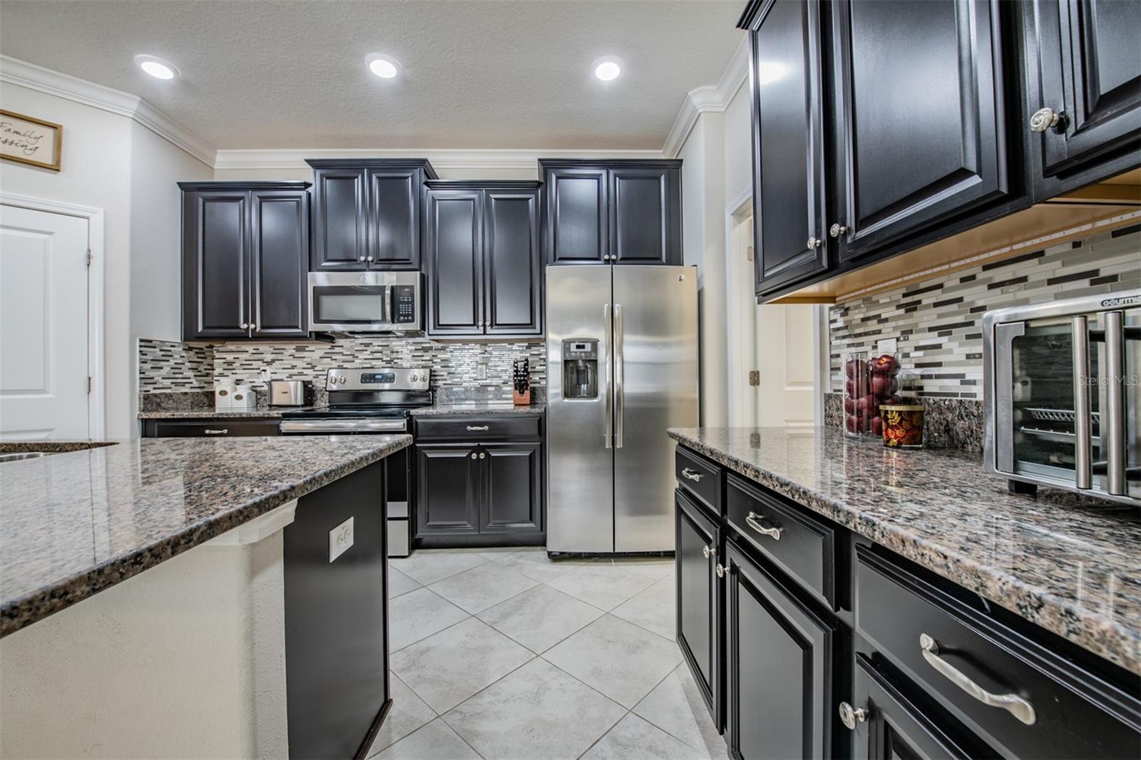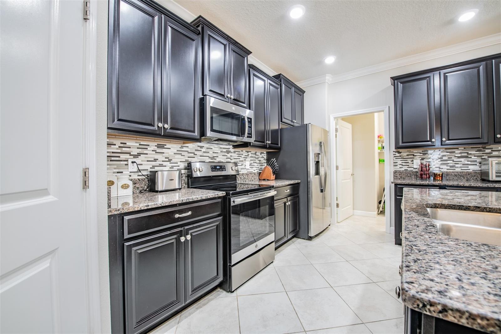 Welcome to this beautifully maintained 4-bedroom, 3-bath, 2-car garage home located in the highly desirable Union Park community of Wesley Chapel. Step inside through a new designer front door with glass detailing enhancing the home’s curb-appeal to find high ceilings, elegant tile flooring throughout the main living areas and plush carpeting in each bedroom. The gourmet kitchen is a true highlight, complete with granite countertops, updated backsplash, stainless steel appliances, and elegant cabinetry with crown molding. A large kitchen island with bar seating seamlessly flows into the living and dining spaces, making gatherings a breeze. The Living room opens to the covered screened in lanai, leading to a fenced backyard—ideal for outdoor relaxation. The primary suite features a tray-ceiling, customized walk-in closet, a large walk-in shower and dual sinks vanity for convenience. The conveniently located laundry room comes equipped with a washer and dryer and is easily accessible from both the primary suite and kitchen. Three additional bedrooms provide ample space for a home office, guest room, or hobby space. Additional features include ceiling fans installed in every bedroom as well as the living room, 2” designer blinds complemented by builder-grade crown molding featured throughout the home. The exterior features custom landscaping with edging, new rain gutters, and a new irrigation system. Enjoy the benefits of a water softener with reverse osmosis and a water heater for added efficiency. Union Park offers resort-style amenities: clubhouse, two pools, splash pad, fitness center, picnic pavilion, playground, dog park and nature trails. The location is incredibly convenient, just minutes from top-rated schools, Pasco-Hernando State College, AdventHealth and BayCare Hospitals, Wiregrass Mall, Tampa Premium Outlets, and endless dining options. Commuting is easy with quick access to major highways, Tampa International Airport, Downtown Tampa, and Florida’s stunning Gulf Coast beaches. This home truly offers it all—style, comfort, and an unbeatable location. Schedule your private showing today!