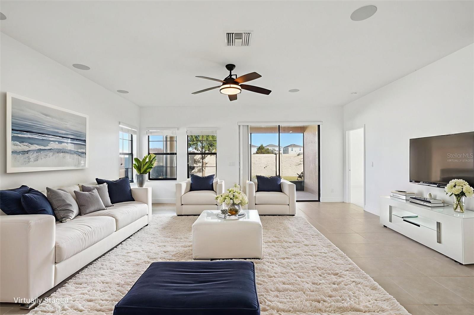 One or more photo(s) has been virtually staged. Welcome to this beautifully maintained WestBay Sandpiper floor plan, nestled in one of Union Park’s most sought-after villages. Offering just under 2,100 square feet, this 4-bedroom, 2-bath home features a thoughtfully designed layout that perfectly balances comfort and functionality. Upon entry, you’ll find two generously sized bedrooms to the left, connected by a conveniently located guest bath. A third bedroom sits to the right—ideal as a home office, flex space, or guest room. The private primary suite is tucked away at the rear of the home, providing a peaceful retreat. TILE FLOORING enhances the main living areas, while BRAND-NEW CARPET adds warmth and comfort to the bedrooms. The upgraded kitchen serves as the heart of the home, showcasing QUARTZ COUNTERTOPS, AN OVERSIZED ISLAND, INDUCTION COOKTOP WITH RANGE HOOD, WALK-IN PANTRY, BUILT-IN MICROWAVE AND OVEN, AND A BRAND-NEW REFRIGERATOR. The OPEN-CONCEPT DESIGN flows effortlessly into the expansive dining and living areas, creating the perfect space for entertaining. Recent updates include a NEW ROOF (2025), BUILT-IN SPEAKERS, NEW REFRIGERATOR AND GARBAGE DISPOSAL, WATER SOFTENER, NEWER WATER HEATER, FRESH INTERIOR PAINT, AND NEW CARPET in three bedrooms—making this home truly move-in ready. Zoned for Double Branch Elementary, John Long Middle, and Wiregrass Ranch High School, residents also enjoy Union Park’s EXCEPTIONAL AMENITIES, including a central park with wide-open green space, splash pad, resort-style pool, scenic walking trails, and year-round community events. Conveniently located just minutes from premier shopping, dining, entertainment, and major roadways, this home offers the perfect combination of lifestyle and location. Don’t miss the opportunity to own this stunning home in one of Wesley Chapel’s most desirable communities!
