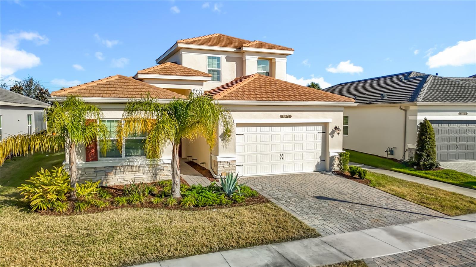 Welcome to this beautifully designed Holly model by GL Homes, offering nearly 3,000 sq ft of modern living space in the highly desirable 24-hour man-gated Winding Ridge community of Wesley Chapel. This thoughtfully crafted home features a bright open-concept floor plan perfect for entertaining, enhanced by luxury upgrades, designer lighting, and elegant architectural ceiling details that elevate the home’s style and ambiance. The luxurious primary suite provides a private retreat with a spa-inspired bath and generous closet space. A secondary bedroom with its own full bath offers ideal flexibility for guests, multigenerational living, or a private home office. Upstairs, enjoy a versatile loft/flex space that can easily serve as a media room, playroom, or additional bedroom. Step outside to the covered lanai, perfect for relaxing or hosting gatherings year-round. Additional highlights include a tile roof, 2-car garage, ample storage, and quality finishes throughout. Residents enjoy resort-style amenities including a clubhouse, pool, fitness center, and tennis courts — all within a secure man-gated community with no CDD fees. Conveniently located near top-rated schools, Wiregrass Mall, Tampa Premium Outlets, dining, medical facilities, and easy access to I-75 for commuting. This home blends space, comfort, and lifestyle in one of Wesley Chapel’s most sought-after communities. Easy to show — schedule your appointment and secure this gem of a home in a highly desirable location today!