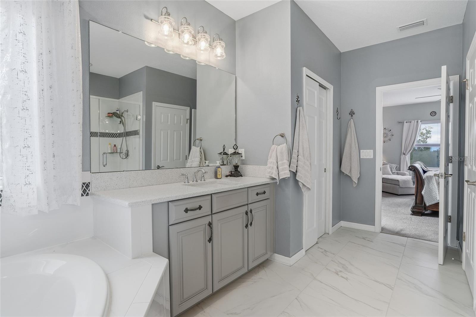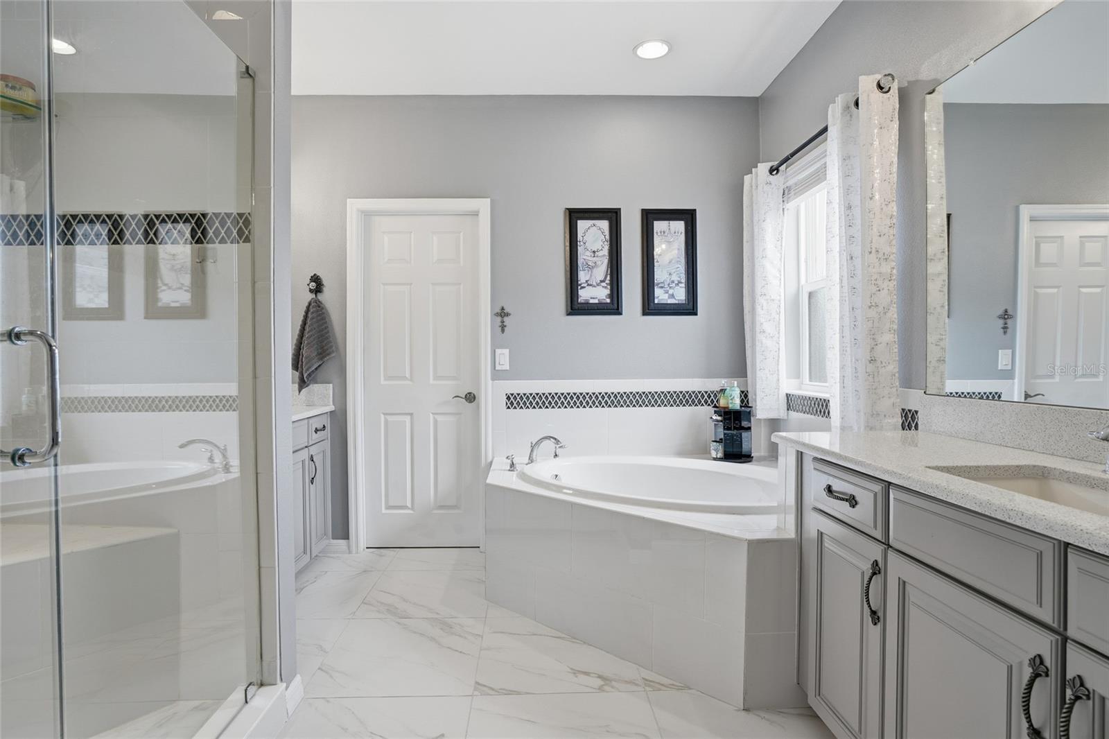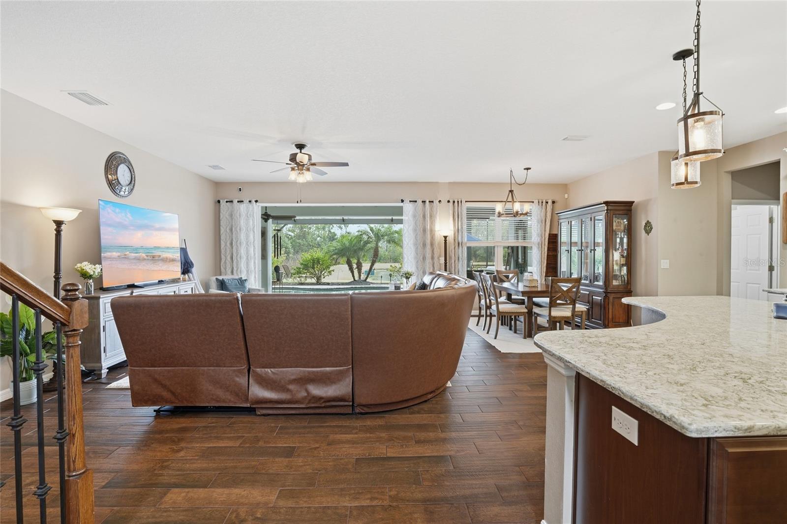 Welcome to this stunning Tradewinds model by award-winning Taylor Morrison, located in the gated Willow Point enclave of the sought-after Watergrass community. Built in 2020, this 6-bedroom, 4-bathroom, 3-car garage pool solar home offers over 4,800 square feet of luxurious living space and is perfectly situated on a serene waterfront lot with breathtaking conservation views. Very private. Step inside to discover an open and airy layout featuring soaring 20-foot ceilings, abundant natural light, and elegant upgrades throughout. The main floor boasts wood look ceramic tile in all living areas, a formal dining room, a formal living or den, and a gourmet kitchen equipped with induction cooktop, double oven, stainless steel appliances, quartz countertops, and a huge island—ideal for entertaining. The kitchen seamlessly flows into a spacious dining nook and the expansive gathering room, highlighted by a dramatic full pocket 4 piece pocket style sliding door that opens fully to a massive private panoramic screen-enclosed lanai, where you’ll find a saltwater chlorinated pool with custom lighting and Wi-Fi controls, an Islands Spa 5 person Jacuzzi, built in propane gas grill, and ceiling fans to keep the space breezy and comfortable. The pool is also served by solar heating perfect for extending the swim season almost all year round. This model is determined to impress with TWO owner’s suites- Perfect for Multi-generational living with potential utilization of the additional Owner Retreat as an Inlaw Suite. The downstairs owner suite is a peaceful retreat, complete with a spa-like ensuite bathroom featuring quartz counters, double vanities, a soaking tub, walk-in spa shower, and a generously sized walk-in closet. A solar system was installed in 2023 for peace of mind to condition the home as you wish while having low electricity bills. There are ceiling fans throughout the home. Upstairs, you'll find the owners suite and a sitting room off the owners suite entry set up as a spa retreat- complete with Sauna also perfect for a nursery, office or yoga space. The owner's bath is beautiful with a soaking tub, glassed in shower, dual sinks and quartz counters, and a walk-in closet with a fabulous custom shelving system. There are four additional spacious bedrooms that share a bath, a massive loft, and a separate media room, offering plenty of space for work, play, and relaxation. The home is stunning at night with landscape lighting and programmable holiday lights. Curbing, low maintenance rock in landscape beds, and additional pavers were added for access alongside garage entry and the entire side of home for convenience. This smart home comes with a doorbell camera, 3 additional perimeter cameras, additional wifi extender, and programmable thermostats for comfort and safety. A whole home water softener and circulating pump provides softened, hot water throughout the home whenever you need it. Located in one of the area’s premier master-planned communities, Watergrass offers resort-style amenities including a clubhouse with gym, multiple parks, tennis courts, three pools, walking trails, and more! Plus, you're just 1 mile from a brand-new Publix and retail plaza, with shopping, dining, and daily conveniences right at your fingertips. Quick access to I-75, Epperson Lagoon, and top-rated schools makes this location as convenient as it is beautiful. Don’t miss your chance to own this show-stopping home—schedule your private showing today!