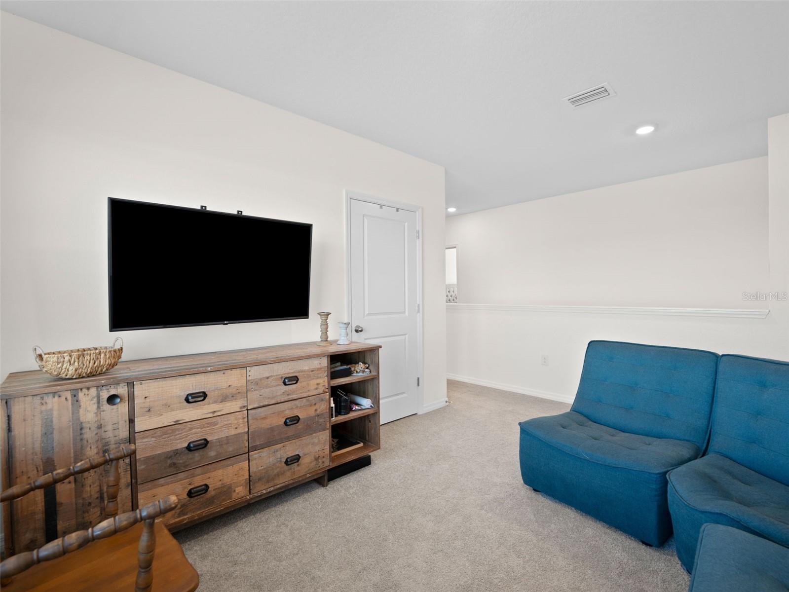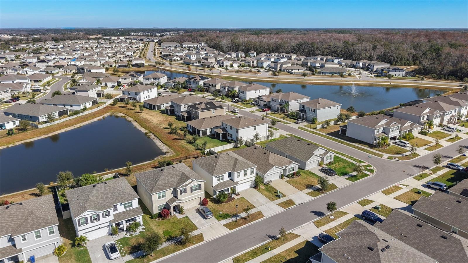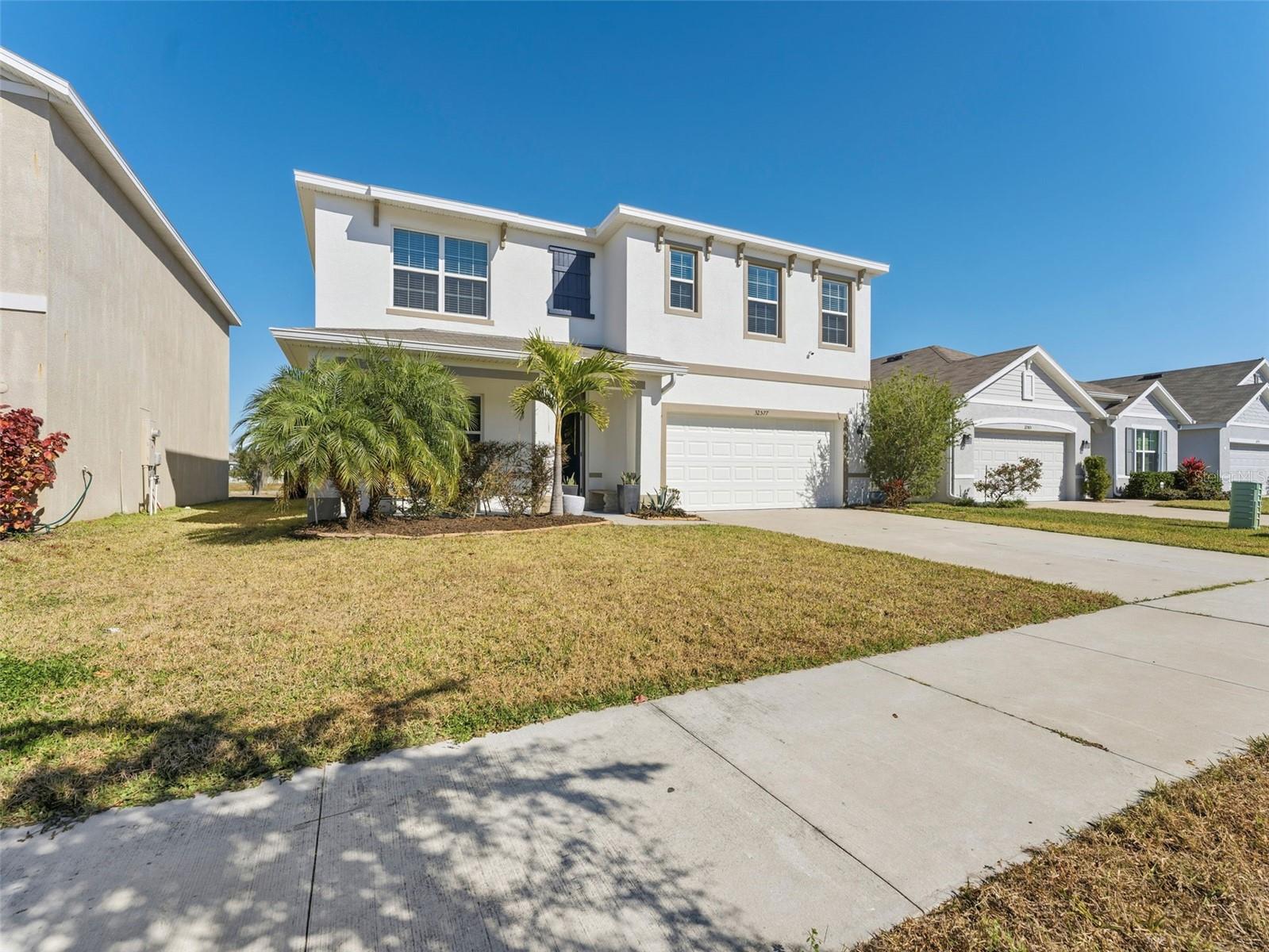 Welcome home to this spacious 5-bedroom, 3-bath home plus a dedicated office / den / or playroom, perfectly positioned on a tranquil pond with serene water views. Newly built in 2022, this home features freshly updated exterior paint in Sherwin Williams Alabaster offering timeless curb appeal and thoughtful upgrades throughout. Designed for flexibility and comfort, the versatile office/den features vintage doors, making it ideal for a home office, playroom, or home gym. The heart of the home showcases an upgraded kitchen with granite countertops, a custom backsplash, stainless steel appliances, and a large pantry with custom shelving. The first floor includes a generously sized bedroom with a full bath just steps away, perfect for guests or multigenerational living. Upstairs, you’ll find the primary bedroom (with an attached ensuite featuring a double sink vanity and TWO walk-in closets) and 3 additional bedrooms along with a bonus loft area—a flexible space well-suited for a playroom, homework hub, additional seating area, or gaming loft. With ample storage and a well-designed layout, this home comfortably accommodates growing or large families. Step outside to a fully enclosed backyard with a wrought iron fence, offering peace of mind while preserving picturesque pond views—ideal for pets, play, or relaxing evenings outdoors. Located in the highly desirable Union Park community, residents enjoy resort-style amenities including multiple community pools, scenic walking trails, playgrounds, a dog park, fitness center, sports field, splash pad, picnic pavilions, outdoor fitness stations, and a cozy fire pit. The low HOA fee includes Spectrum high-speed internet and cable. Conveniently located near top-rated schools, The Shops at Wiregrass, Tampa Premium Outlets, major hospitals including AdventHealth, BayCare, Moffitt, and the VA, plus a wide array of dining and entertainment options. Easy access to I-75 and I-4 puts all of Tampa Bay within a quick drive!