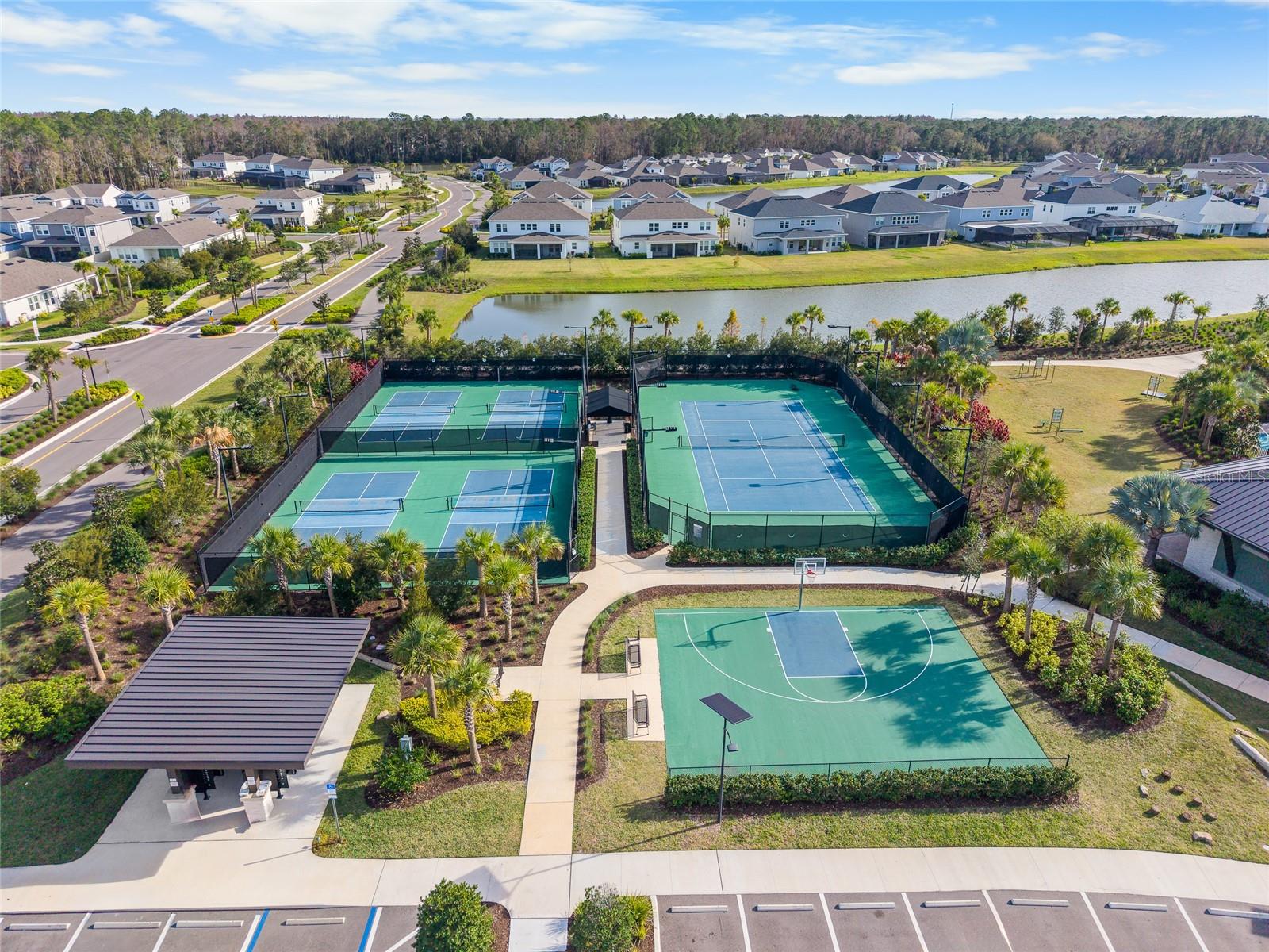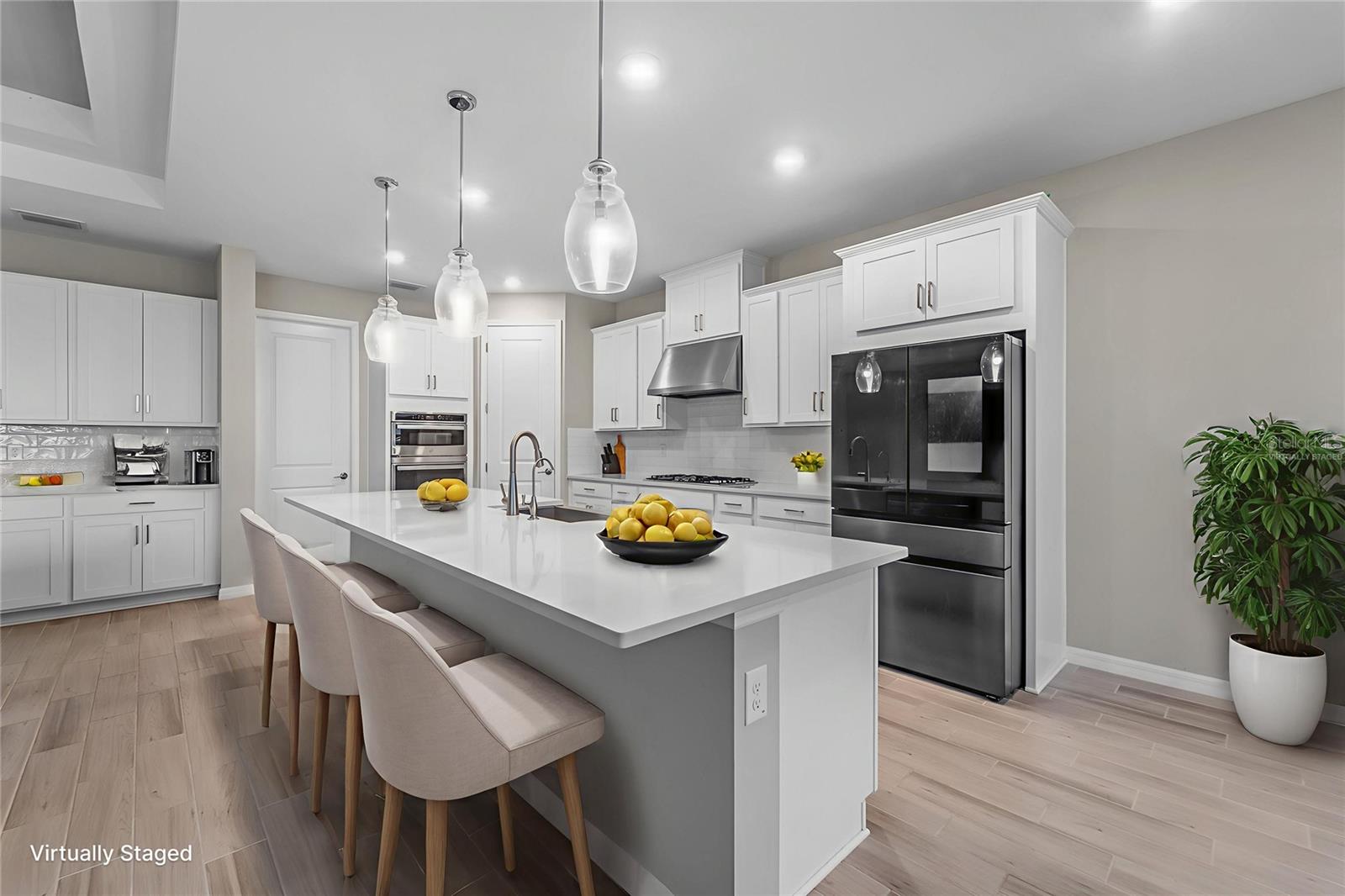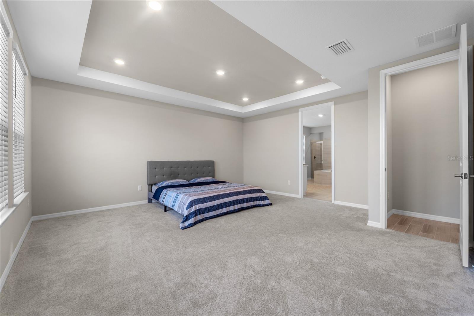 Short Sale. Experience luxury living in this nearly new Taylor Morrison Tortola model (2025), set on a premium lot (9,149 sq ft) with no neighbors in front or behind. Enjoy rare privacy and peaceful pond views in this spacious home with 5 bedrooms, 4.5 baths, and a 3-car garage across 3,461 heated square feet. The gourmet chef's kitchen features quartz countertops, a gas cooktop, hood, double ovens, a large island, a walk-in pantry, and a dry/wet bar. You have Dual Primary Suites on the first floor: a spacious owner's suite with a relaxing bath and two walk-in closets, and a guest bedroom with a full bath is tucked just off the entry, perfect for visitors or multi-generational living. The open living area has high ceilings and lots of natural light. Upstairs, there is a flexible loft, a media room, three bedrooms, and two full baths. Spend time outside on the extended, screened lanai ready for an outdoor kitchen or grill. Premium Upgrades: Includes tray ceilings, upgraded light fixtures, modern stair railings, a whole-home water filtration system, gutters, and an electric car charger in the garage. Located in one of Wesley Chapel's top gated communities, residents have access to The River Club. This resort-style center offers a sparkling resort pool, spa, and splash pad, a state-of-the-art fitness center, tennis, and pickleball courts. A social clubhouse, playground, basketball court, and dedicated dog parks. This home is just minutes from The Shops at Wiregrass, Tampa Premium Outlets, and top-rated Pasco County Schools, offering both privacy and convenience.
