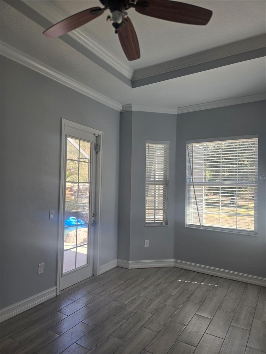 Spacious single story pool home situated on over one acre in Quail Hollow Pines, offering privacy, open living space, and an oversized 3 car garage. This split floor plan features three bedrooms and three full bathrooms with 2,742 square feet designed for comfortable living and entertaining. The central kitchen overlooks the family room, formal dining area, and breakfast nook, while sliding pocket doors open to a screen enclosed pool with waterfall, grotto, and beach style entry for seamless indoor outdoor living. The private primary suite includes pool access, dual walk in closets, and a large spa style bathroom. A separate guest suite and additional bedroom with bonus flex space provide room for family, visitors, or a home office. The property presents an excellent opportunity for customization and with recent new flooring, updated lighting, and installation of in ceiling surround sound speakers. Conveniently located near I 75 with easy access to Wesley Chapel shopping, dining, and medical facilities.