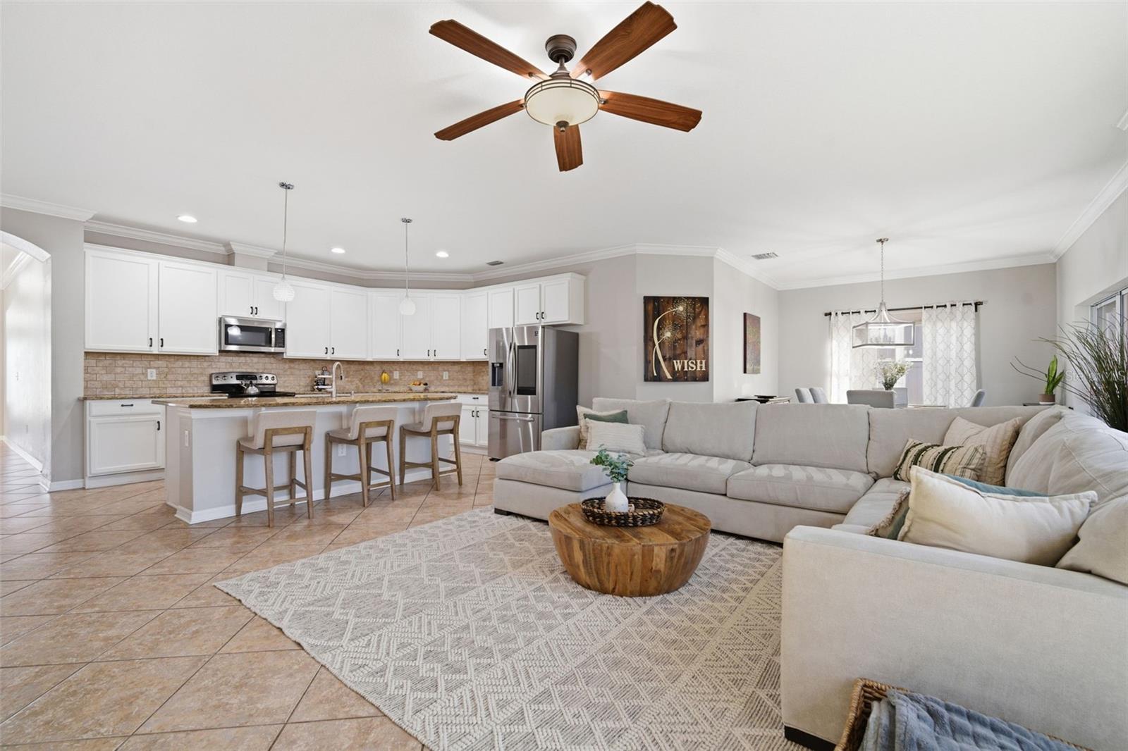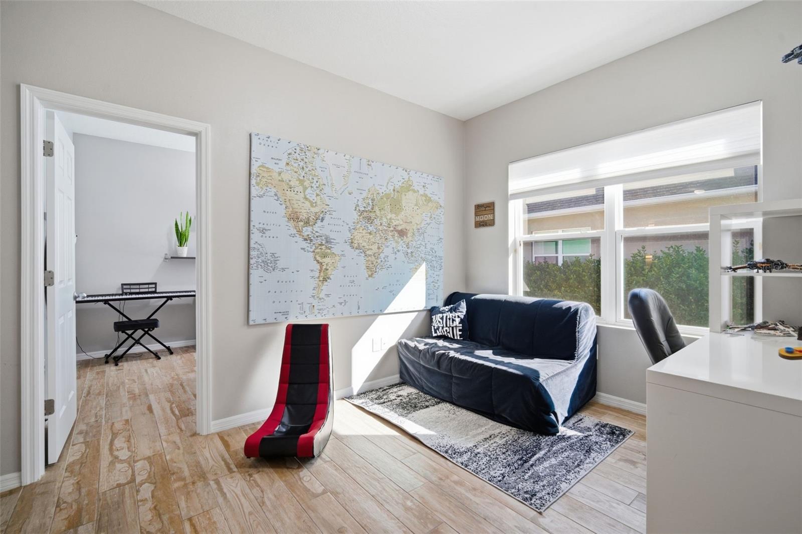Under contract-accepting backup offers. Welcome to this spacious, move in ready David Weekley home offering over 3,000 square feet of thoughtfully designed living space. With 5 bedrooms and 3 full bathrooms, this residence features a highly desirable layout ideal for multigenerational living and work from home flexibility. The primary suite and three additional bedrooms are conveniently located on the first floor, while the upstairs offers a private fifth bedroom with its own full bathroom and separate living space - perfect for guests, extended family, or a private retreat. Throughout the home, there is no carpeting, offering a clean, modern look with easy maintenance and allergy-friendly living. Recent upgrades, including a brand-new roof and fresh exterior and interior paint, provide immediate peace of mind and beautiful curb appeal. Located in desirable Wesley Chapel with access to A rated schools, this home is especially appealing for buyers who value education and location. The expansive floor plan is complemented by a 3-car garage, including a versatile garage bay equipped with a mini split system, ideal for a climate-controlled home gym, wellness space, yoga or fitness studio, or flexible training area. This setup is perfect for buyers prioritizing an active lifestyle, at home fitness, and health focused living. Step outside to your private outdoor oasis, where a saltwater pool creates a resort style backyard perfect for entertaining, relaxing, and enjoying the Florida lifestyle year-round. The pool area is finished with elegant travertine tile, enhancing both the beauty and comfort of the outdoor space. With generous living spaces, a smart layout, and major upgrades already completed, this home checks all the boxes for buyers seeking space, comfort, and long-term value. Residents of Meadow Pointe III enjoy access to a well-appointed community clubhouse featuring a resort style swimming pool, fitness center, playgrounds, and multiple sports courts, including tennis, basketball, and pickleball. The community also offers parks, open green spaces, and walking areas, providing opportunities for recreation, wellness, and connection, all conveniently located in the heart of Wesley Chapel. 31520 Holcomb Pass is a rare opportunity for those looking for a turnkey home, entertainer friendly layout, and functional luxury. Book your private showing today!