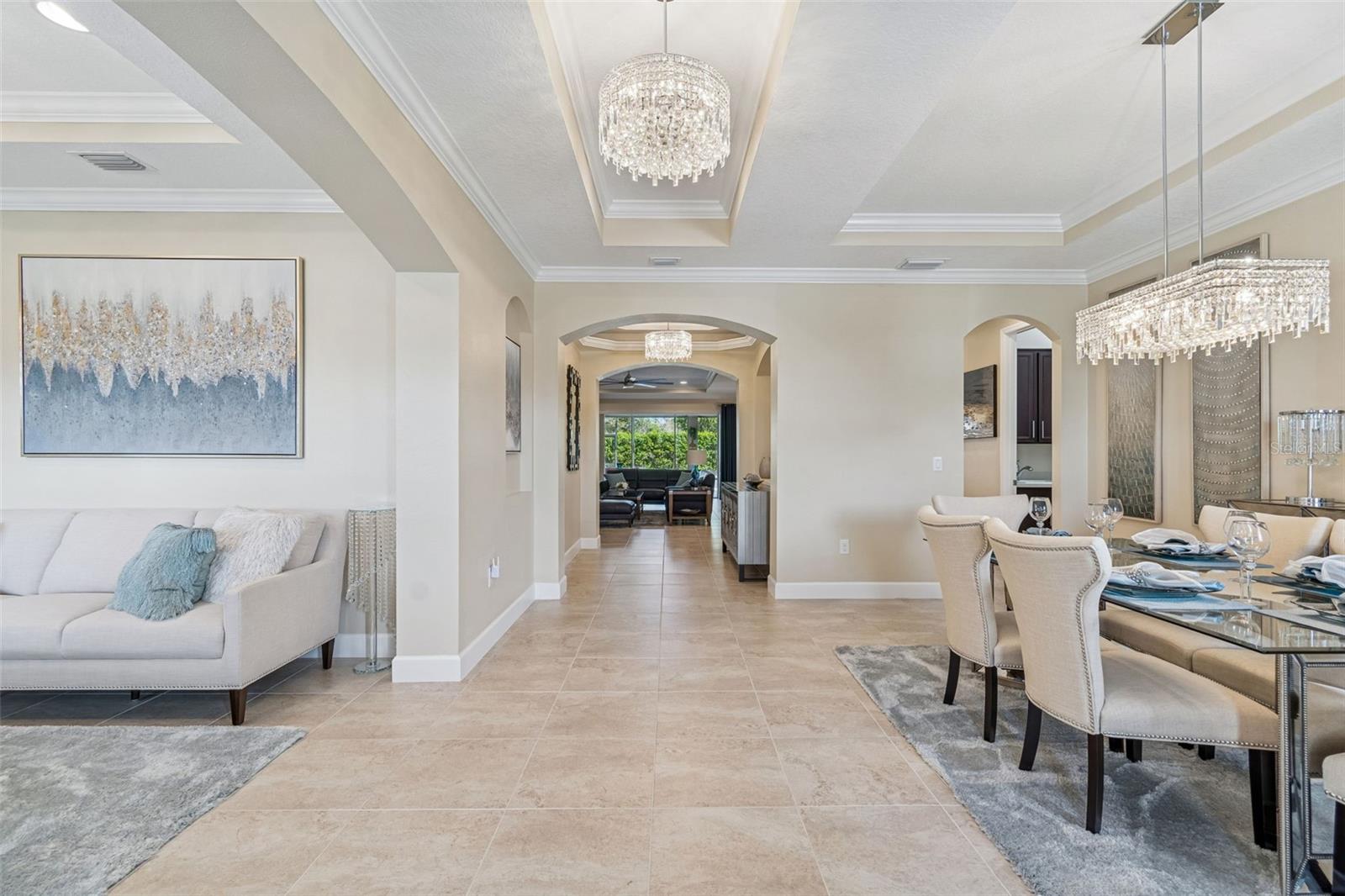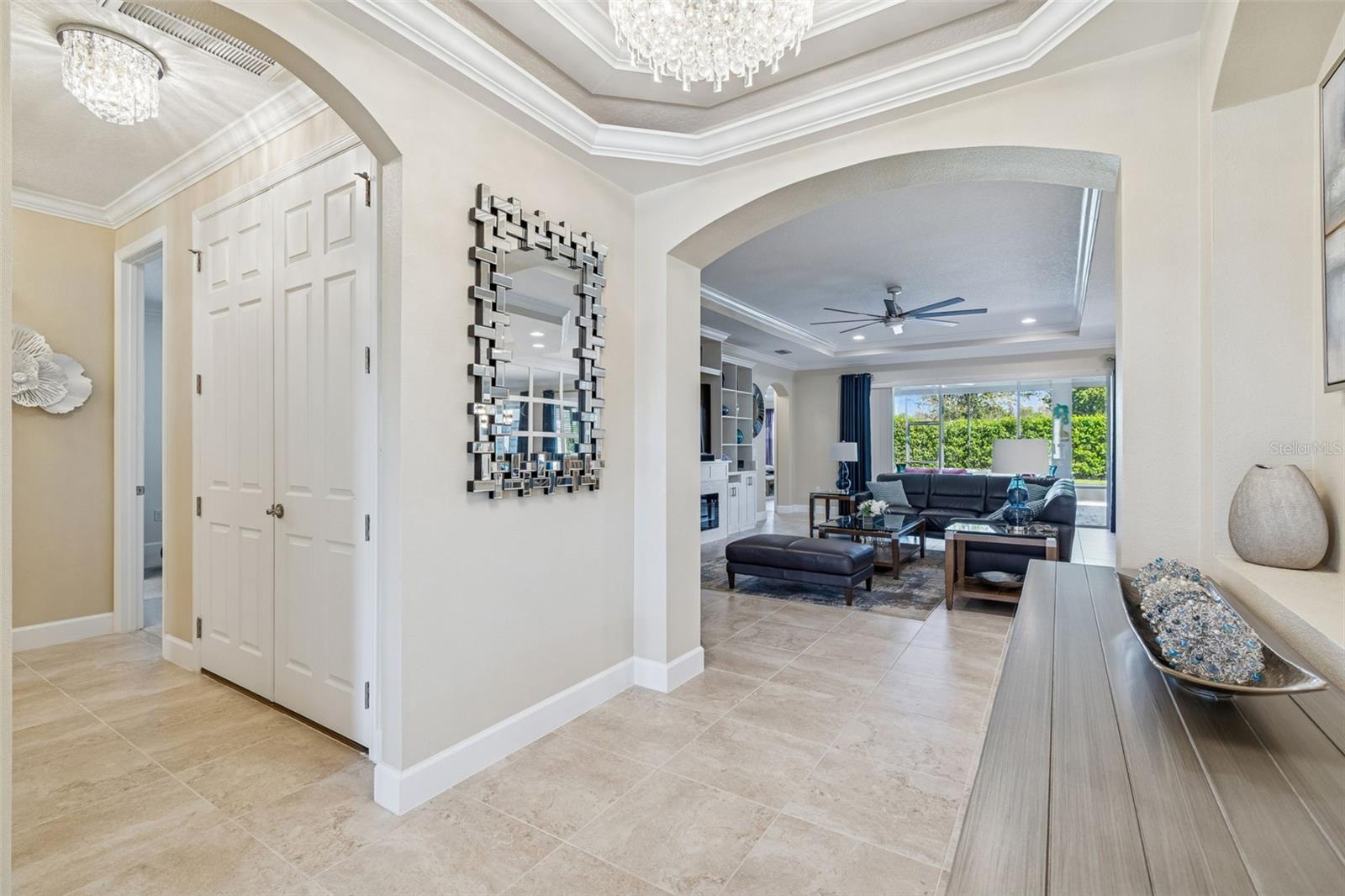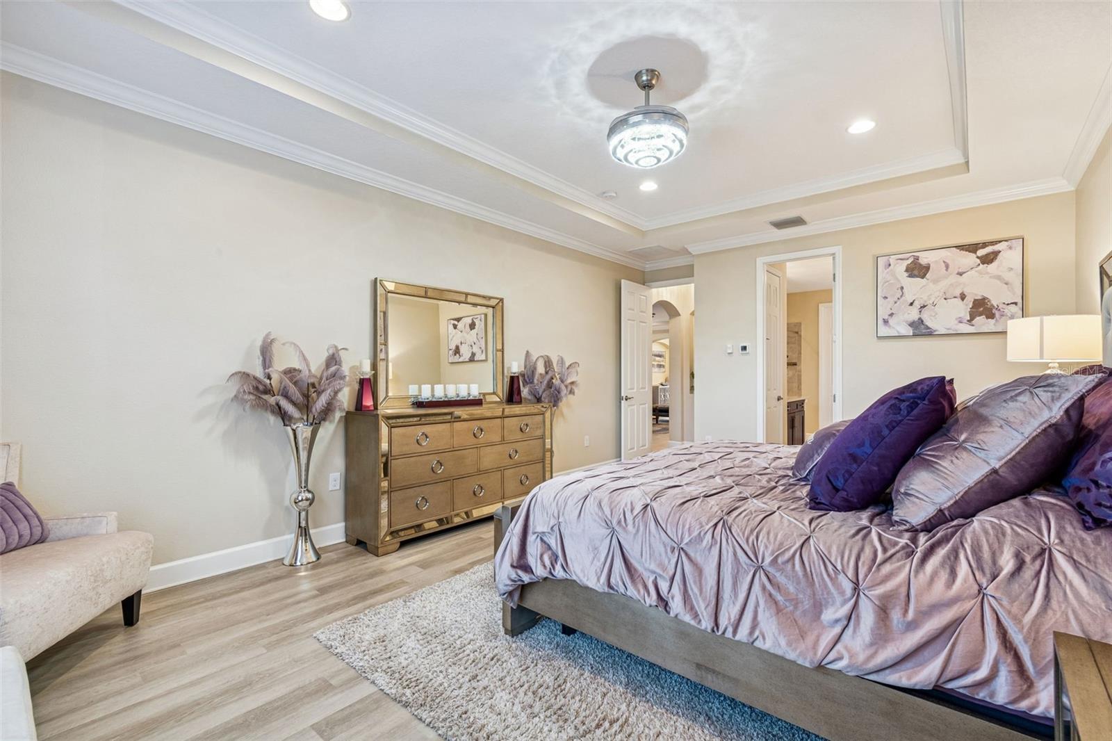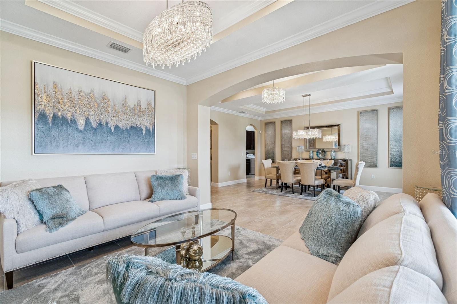 Welcome to a truly exceptional, QUALITY home located in the highly sought-after community of WaterGrass in Wesley Chapel, nestled within the GATED village of Willow Point. Built by the semi-custom builder Taylor Morrison, along with the Sellers upgrades, this home showcases a level of craftsmanship, detail, and design that stands apart from the rest. This home offers luxury, space, and functionality in one of the area’s fastest growing and most desirable locations. From the moment you arrive, the STUNNING CURB APPEAL sets the tone with beautifully manicured landscaping, a welcoming FRONT PORCH, and an inviting presence that immediately feels like home. Step inside to soaring 10-FOOT CEILINGS, a grand entry with DOUBLE TRAY CEILINGS, and tons of natural light brightening the THOUGHTFUL DESIGN AND UPSCALE FINISHES THROUGHOUT. This expansive floor plan features 4 BEDROOMS PLUS A BONUS ROOM, 3.5 BATHROOMS, FORMAL LIVING AND DINING AREAS, and a 3-CAR TANDEM GARAGE, offering incredible flexibility for modern living. There is ample space for a DEDICATED HOME OFFICE, ideal for remote work or for just having FLEX SPACE. The split-bedroom layout provides both privacy and functionality, while the open concept design creates seamless flow between living areas. The KITCHEN IS A TRUE SHOWSTOPPER, designed to impress with a massive center island, BUILT- IN STAINLESS STEEL APPLIANCES, HOOD VENT, spacious pantry, and an oversized dinette area featuring a CUSTOM MIRRORED GLASS ACCENT WALL that adds a unique designer touch. This space flows effortlessly into the main living area, making it perfect for entertaining. The home is UPGRADED with CROWN MOLDING, TRAY CEILINGS in ALL living spaces, RECESSED LIGHTING, and UPGRADED FIXTURES THAT ELEVATE every room. The attention to detail and quality craftsmanship is evident. This is a home that truly stands apart from today’s standard construction. The primary suite is a bright and peaceful retreat featuring dual vanities, a soaking tub, walk-in shower, and a HUGE WALK-IN CLOSET WITH CUSTOM BUILT-INS. Secondary bedrooms are generous in size, and the BACK BONUS ROOM offers endless possibilities for a media room, playroom, or additional living. Step outside to your private outdoor space where POCKET SLIDING GLASS DOORS create a seamless indoor-outdoor living experience. The EXTENDED COVERED LANAI (13 x 29 feet) is perfect for entertaining or relaxing, complete with modern ceiling fans and more than enough space for dining and lounging. With NO BACKYARD NEIGHBORS, enjoy FULL PRIVACY. Living in WaterGrass means access to resort-style amenities including pools, clubhouse, fitness areas, playgrounds, and community walks, along with a vibrant and growing community atmosphere. The LOCATION IS UNBEATABLE, just minutes from I-75, top-rated schools, RECREATIONAL SPOTS, AdventHealth and BayCare hospitals, Wiregrass Mall, Tampa Premium Outlets, The Grove, KRATE, and endless dining and shopping options. The area continues to expand, adding even MORE VALUE AND CONVENIENCE. This home offers a rare opportunity to own a luxury, meticulously maintained property with high- end finishes, functional space, and an incredible location in one of Wesley Chapel’s premier gated villages. (PLEASE REMOVE SHOES FOR SHOWINGS)