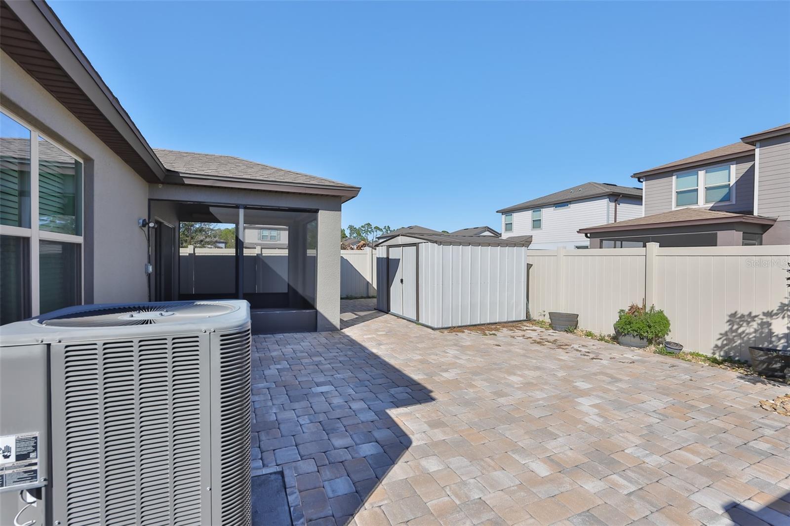 Welcome to this cute home located in the gated community of Wesbridge! Built in 2020, this well-maintained 3-bedroom, 2-bath home offers 1,560 square feet of comfortable living space with a versatile den—perfect for a home office, playroom, or flex space. The kitchen features beautiful quartz countertops, ample cabinetry, and all appliances included. Ceramic tile flooring runs throughout the home, creating a clean and cohesive look. The spacious primary suite offers dual sinks, a garden tub, and a separate shower for added comfort. Enjoy natural light through the elegant glass front door and relax outdoors under the covered lanai. The backyard is enhanced with pavers for additional seating or entertaining space, plus a convenient storage shed for extra belongings. Modern features, functional space, and a desirable gated location, this home is ready for its next owner!