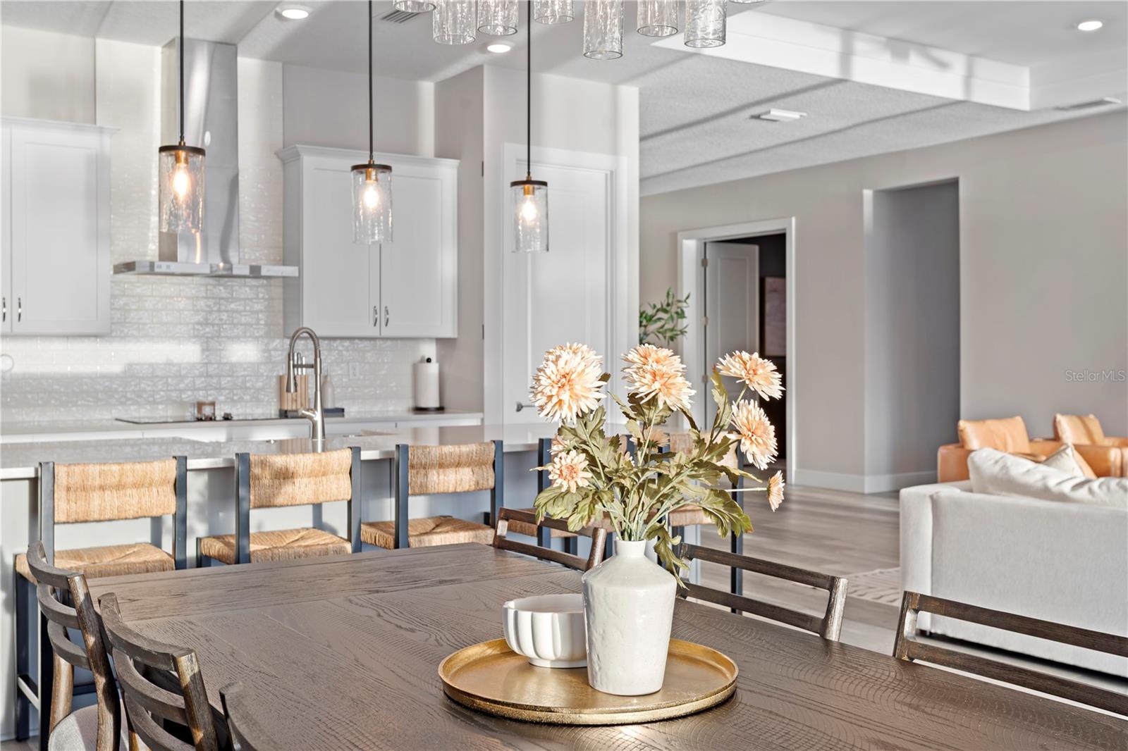 Welcome to 8346 Ivy Stark, a stunning 2023 Biscayne built home in the prestigious Robin’s Cove enclave of the Epperson Lagoon community. The pavered driveway and walkway is beautifully framed by lush tropical landscaping, creating an elegant first impression as your approach. Through the grand French doors, you're immediately captivated by designer touches and panoramic views of the resort-style pool, spa, and serene pond, delivering that unforgettable wow factor. This 4-bedroom, 3.5-bath with an office offers an ideal layout with a first-floor primary suite featuring tray ceilings, a spa-inspired en-suite bathroom, and dual custom walk-in closets for ultimate organization. A secondary bedroom is also conveniently located downstairs, while two additional bedrooms and a generous loft await upstairs. The open-concept great room flows effortlessly into a designer kitchen, complete with high-end appliances, sleek countertops, and a custom walk-in pantry with built-in shelving—perfect for entertaining or daily living. A stylish half bath off the great room and a built-in mudroom off the garage add smart touches of everyday convenience. The three-car split garage includes a two-car bay with EV charging capability and a separate single-car garage, ideal for storage, a workshop, or extra vehicle space. Outdoors, your private backyard oasis stuns with a 2024-installed luxury pool and spa, a fully equipped outdoor kitchen, and motorized patio shades for added comfort—all with expansive pond views. Additional 2024 upgrades include a whole-house gutter system, water softener, and other carefully curated enhancements designed for long-term peace of mind. As part of the Epperson community, you'll enjoy exclusive access to the iconic 7.5-acre Crystal Lagoon, with white-sand beaches, a swim-up bar, water sports, and food trucks, along with UltraFi high-speed internet, solar street lighting, golf cart paths, and scenic trails. Robin’s Cove also offers Eagle Park with a clubhouse, fitness stations, playgrounds, dog parks, and a dock on King Lake. Perfectly located minutes from I-75, top-rated schools including Kirkland Ranch Academy of Innovation and K-8, and upscale shopping and dining at Tampa Premium Outlets, Shops at Wiregrass, and Krate at the Grove—this home delivers not just a place to live, but a refined Florida lifestyle unlike any other.