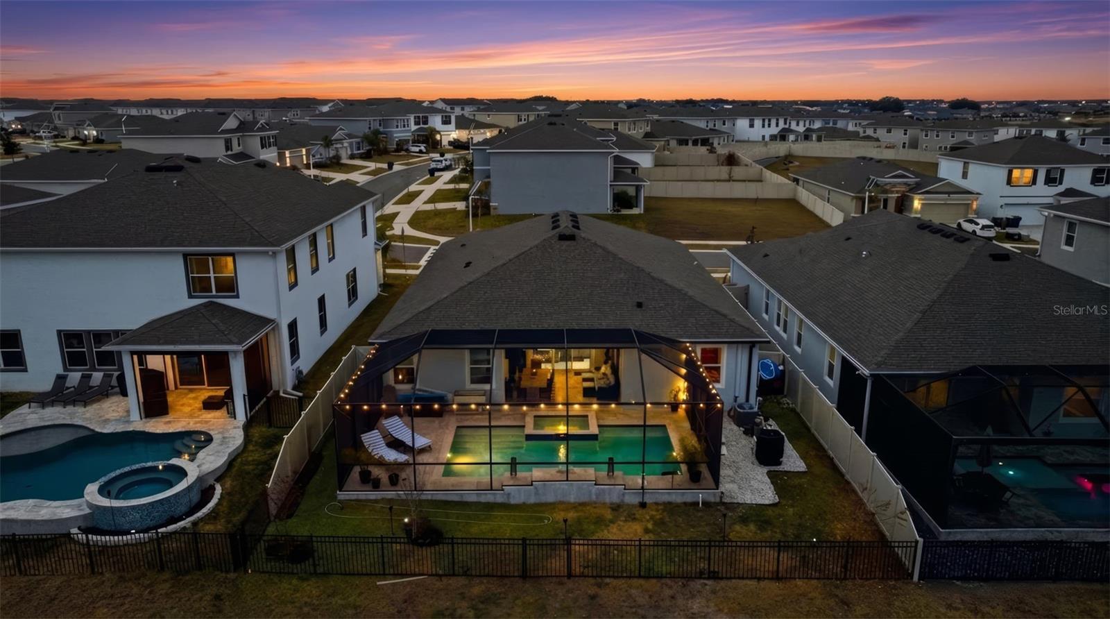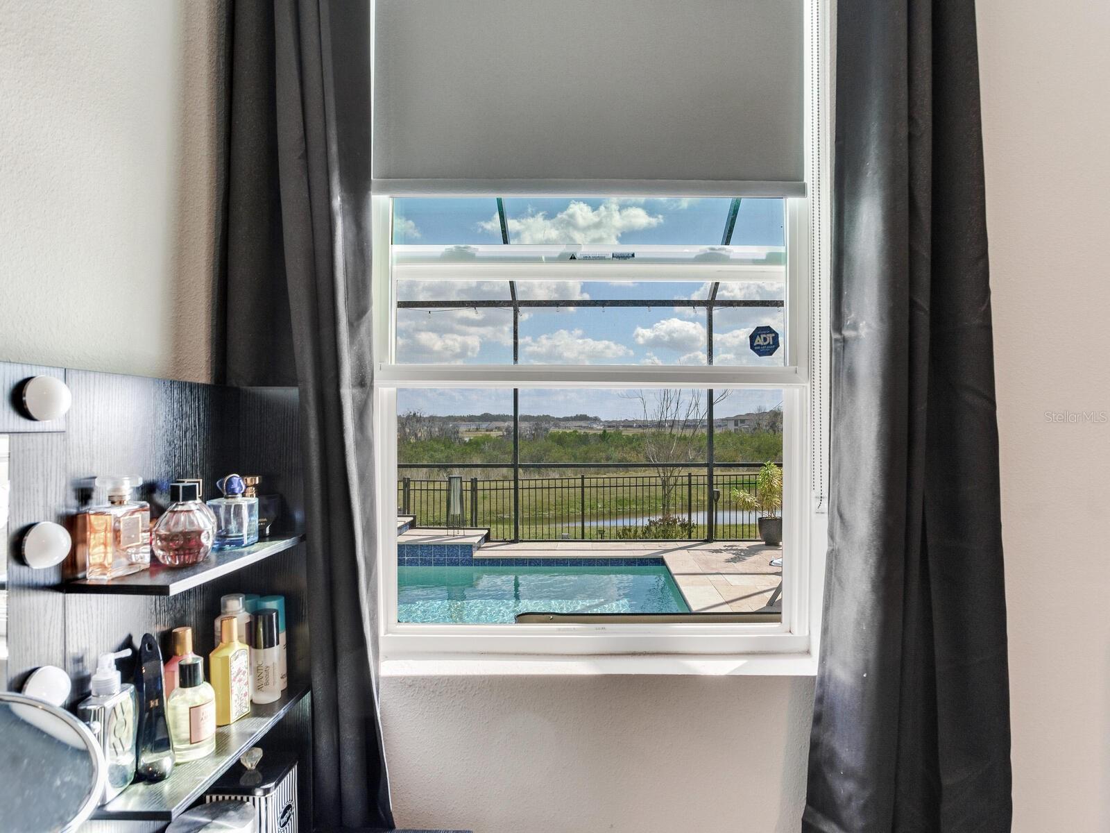 Constructed in 2023 and thoughtfully elevated far beyond builder-grade, this POOL home on a premium conservation lot delivers the look, feel, and finish of a true custom residence, Without the wait! From the moment you arrive, the custom designed front door sets the tone for what lies beyond. Inside, soaring 10-foot ceilings, tray detailing, and a sweeping split floor plan create a sense of scale and architectural intention rarely found in newer construction. Your eye is immediately drawn through expansive glass sliders to a resort-style outdoor living space, where a heated saltwater pool, spa, and tranquil water views with no rear neighbors create a serene backdrop. At the heart of the home, the kitchen was designed to impress and perform! This space is anchored by a grand island, elevated finishes, and a generous walk-in pantry. It flows seamlessly into expansive living and dining areas curated with custom accent walls and integrated designer lighting, giving the home a polished, magazine-worthy aesthetic. Throughout, porcelain tile and luxury vinyl plank flooring offer both durability and refined style. The primary suite is a true retreat, featuring peaceful water views, a custom walk-in closet, and a spa-inspired bath with upgraded finishes and a sleek, modern shower. Secondary bedrooms are privately positioned and enhanced with custom closet systems, while even the laundry room reflects intentional design with added cabinetry and function. Step outside and experience where this home truly sets itself apart. The covered, screened lanai opens to a travertine pool deck, ambient lighting, and a thoughtfully placed spa, which is perfect for relaxing while enjoying the outdoor television. The fully fenced backyard offers privacy, space, and uninterrupted water views. This creates a resort-inspired setting designed for both entertaining and everyday escape. This home is also equipped with full smart-home integration, allowing you to control lighting, climate, security, and pool features with ease. Added rain gutters and a spacious 3-car garage further enhance both function and long-term value. Located in the highly sought-after Epperson Lagoon community, residents enjoy access to a 7.5 acre crystal clear lagoon with sandy beaches, paddleboarding, kayaking, a tiki bar, and year-round activities. Miles of scenic trails, parks, and playgrounds complement the lifestyle, while proximity to Tampa Premium Outlets, KRATE at the Grove, I-75, and top-rated schools like Kirkland Ranch Academy of Innovation make everyday living effortless. Why wait for builder upgrades, delays, and added expenses… When it’s all already here?!