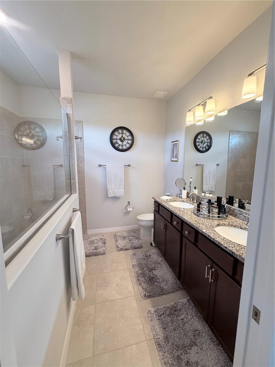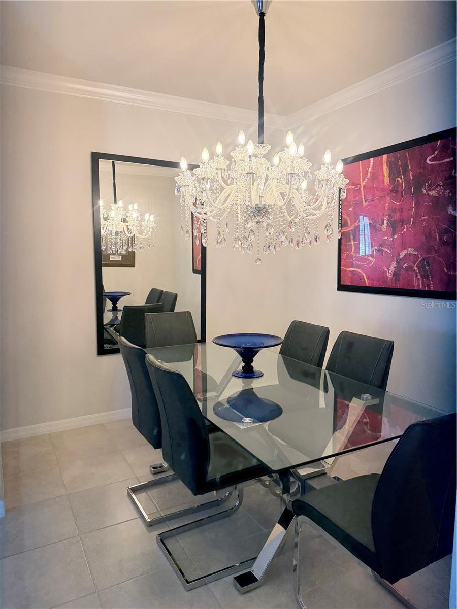 Welcome to the Tropic at Epperson in highly sought-after Wesley Chapel, where refined design, modern efficiency, and resort-style living come together seamlessly. This beautifully upgraded, single-story residence offers an open-concept floor plan designed for both comfort and effortless entertaining. Featuring 3 spacious bedrooms, 2 full bathrooms, a versatile den, and a 2-car garage with a 4-foot extension, this move-in ready home blends functionality with elevated style. Assumable Mortgage available on this home. From the moment you arrive, the elegant stone-accented exterior and elevated lot create striking curb appeal. Inside, you will find tile flooring throughout with no carpet, enhancing both sophistication and ease of maintenance. Plantation shutters adorn every window, while crown molding, upgraded lighting, and upgraded interior doors add timeless architectural detail. The heart of the home is the thoughtfully designed kitchen, complete with granite countertops, light painted cabinetry with crown molding, upgraded appliances, and ample space to gather. The seamless flow into the living and dining areas makes everyday living feel open and inviting. Retreat to the private owner’s suite featuring a luxurious walk-in shower, while the secondary bath also impresses with a glass shower door upgrade. Smart home technology, wired surround sound, and added above-garage storage racks provide modern convenience throughout. Step outside to enjoy your peaceful backyard water view from the screened-in porch, added in 2022, creating the perfect setting for morning coffee or evening relaxation. Located within a top-rated school district, residents of Epperson enjoy access to the community’s extraordinary 7.5-acre Crystal Lagoon, a one-of-a-kind resort-style amenity offering year-round recreation and leisure. This brand-new, energy-efficient home offers the perfect blend of luxury, comfort, and lifestyle. Welcome home. Chandelier and potted plants by the garage door do not convey.