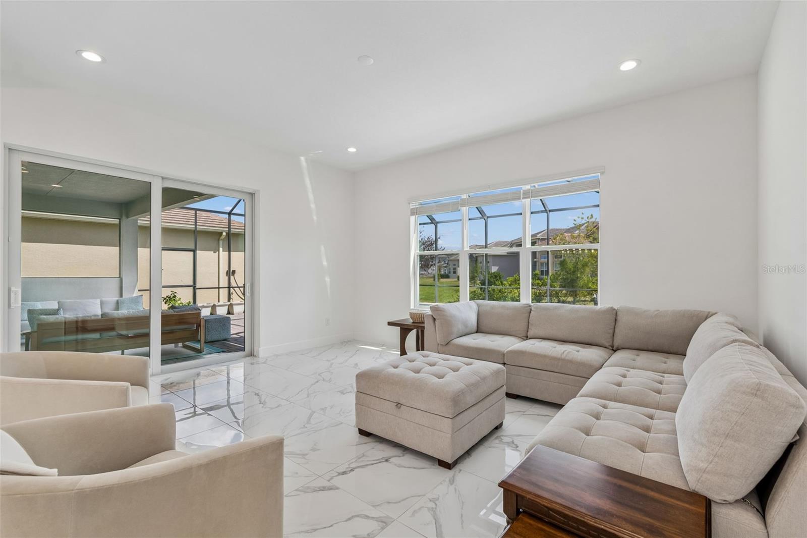 Why wait to build? Move right into this gorgeous 3-year-old home that shows like new in the gated community of Winding Ridge (no CDD). Beautifully maintained, this home offers modern design, quality construction and stylish finishes throughout. Go inside and the stunning floors lead you to an open and inviting floor plan designed for everyday living and entertaining. The spacious living and dining areas flow seamlessly into the well-appointed chef's kitchen featuring contemporary cabinetry, sleek countertops, stainless steel appliances, a built-in oven/microwave, gas cooktop, generous walk-in pantry and a large island ideal for gatherings. Don't miss the extra game room adding to your entertaining space! A powder room and fifth bedroom with en-suite bath completes the first level. Plenty of closet storage. Upstairs, the owner’s suite provides a private retreat with a generous bedroom, two large walk-in closets, and a beautifully designed en-suite bath. Additional three bedrooms provide flexibility for family, guests or a home office. Enjoy Florida living with a covered outdoor space and a backyard ideal for relaxing or entertaining with plenty of seating area and a heated, saltwater pool. Built just three years ago, this home offers the benefits of newer construction, including modern energy efficiency, updated systems, and low-maintenance living. Residents enjoy convenient access to shopping, dining, top-rated schools, medical facilities and major roadways. Wesley Chapel continues to be one of Tampa Bay area's fastest growing and sought-after locations. Move-in ready and better than new so schedule your private showing today. This home has over $130,000 in upgrades (not including the pool area). Additional lighting, fan pre-wires, surround sound pre-wires, stub-ins for outdoor kitchen and generator, security system pre-wires, water softener, gutters, 300-amp service, central vac, extra insulation and more. Ask for the complete list. Furnishings available by separate bill of sale.