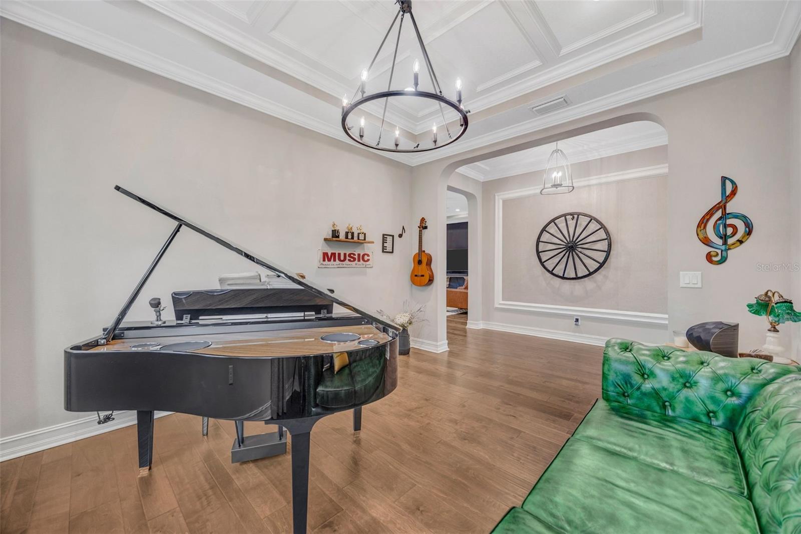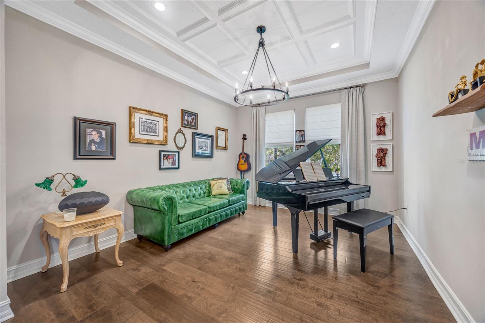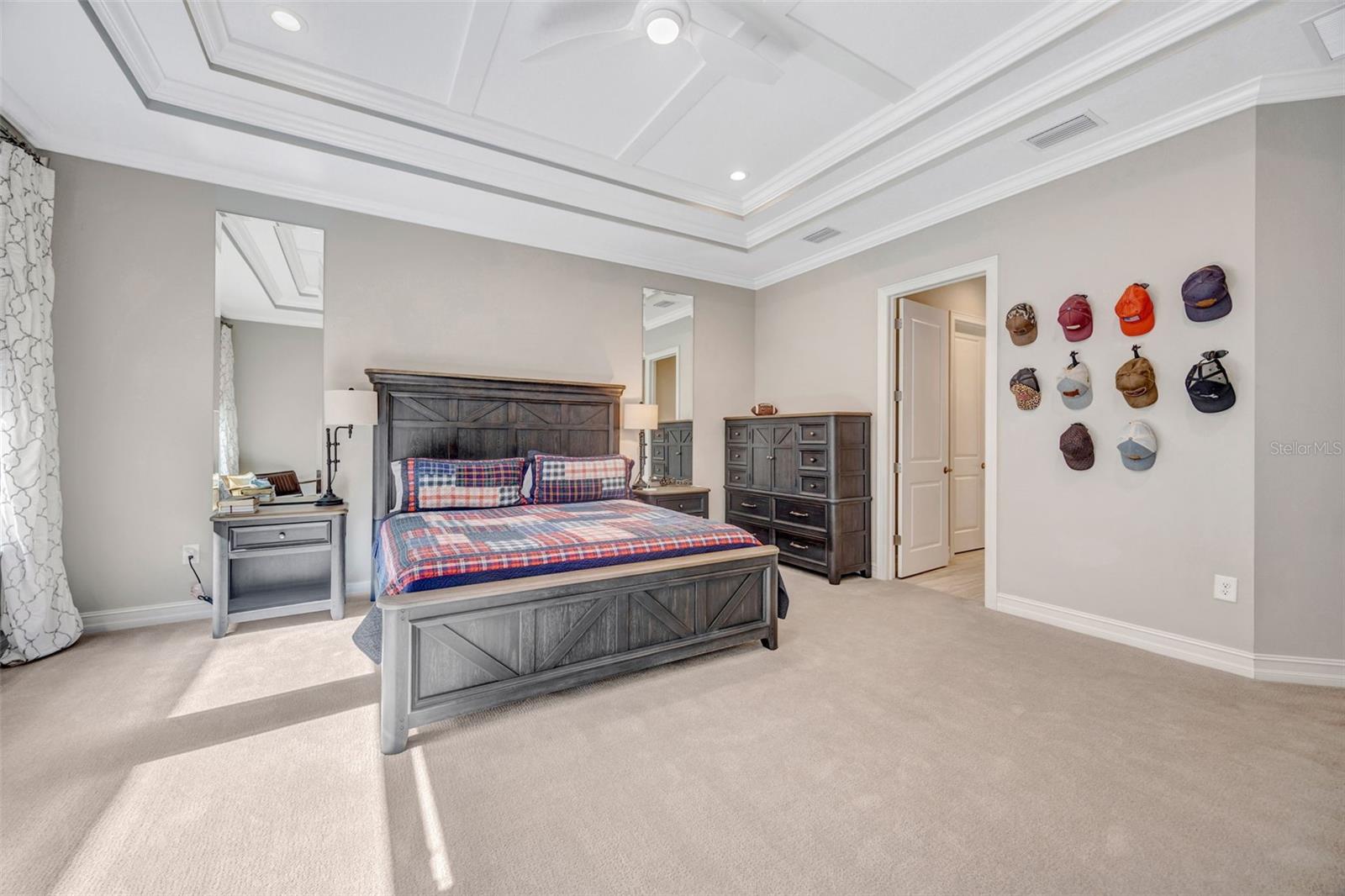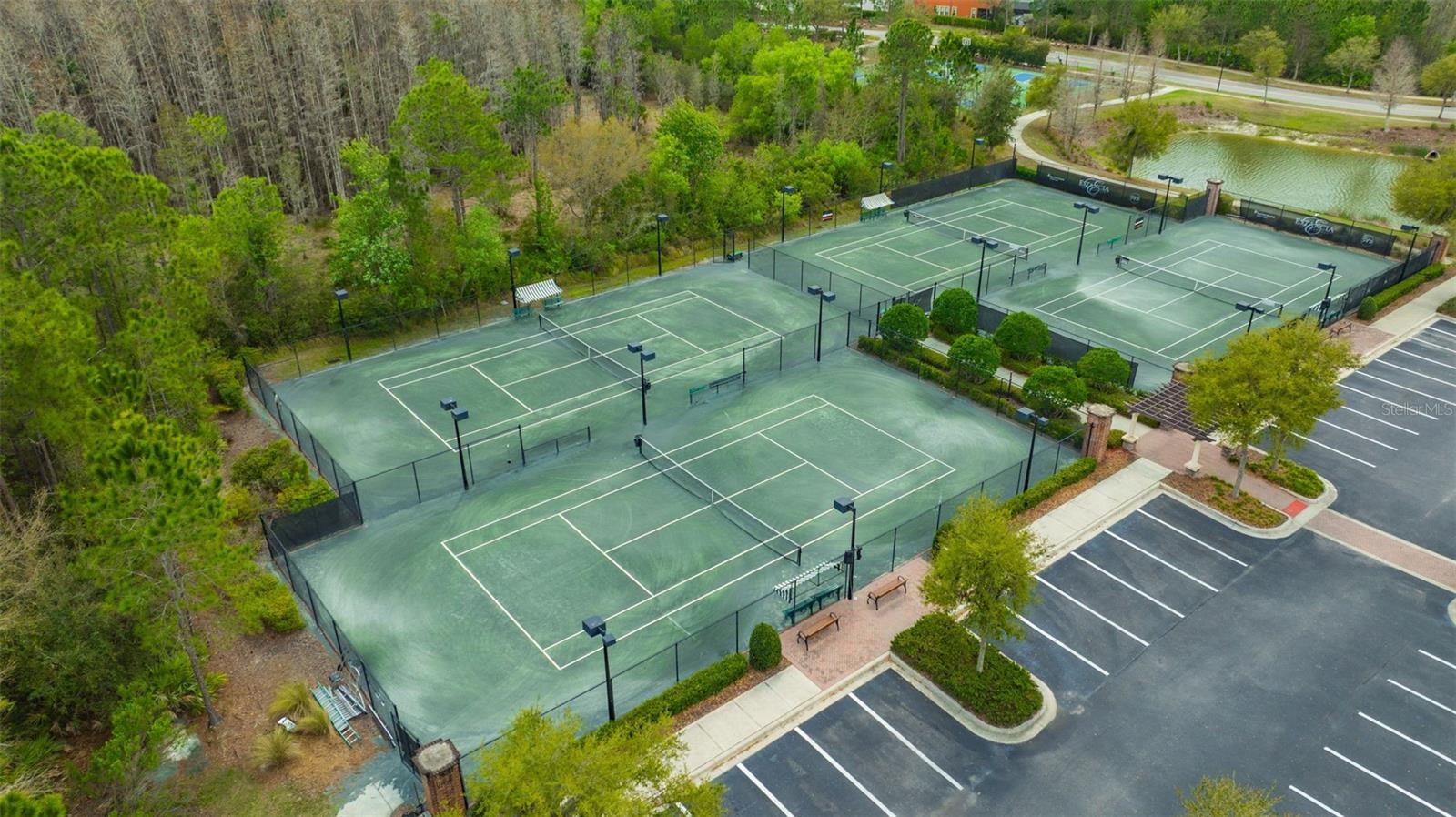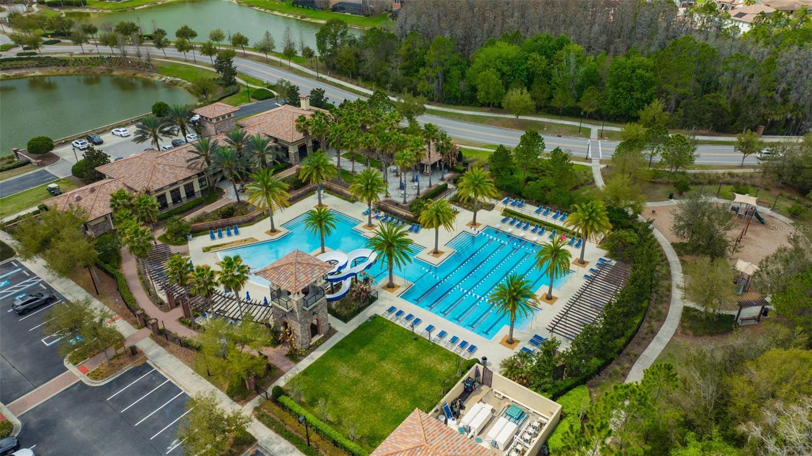 Welcome to luxury living in the gated community of Matera in Estancia located in the heart of Wesley Chapel! Beautifully designed by Standard Pacific Homes, this FORMER MODEL features 4-bedrooms, 3-bath PLUS a versatile flex space - over 3,030 square feet of thoughtfully crafted living space and a 3-car garage equipped with EV connection and SOLAR PANELS FOR REDUCED ELECTRIC BILLS! Step inside to find rich wood flooring throughout the main living areas, complemented by elegant architectural details including crown molding in the main living areas, coffered ceilings in the dining room and a tray ceiling in the great room—adding depth and sophistication throughout the home. Sit back and relax with a beverage you just poured for yourself and guests from your wetbar featuring a wine chiller and ice maker. The open-concept layout is perfect for both everyday living and entertaining, featuring a stunning gourmet kitchen with quartz countertops, custom backsplash, ample soft-close cabinetry, HUGE center island and seamless flow into the spacious living areas. The home is complete with a full GE Café series stainless steel appliance package including diswasher, 5-burner natural gas cooktop, range hood vented outside, in-wall convection oven and microwave. The primary suite is a true indulgence, showcasing a double-tray ceiling with decorative inlay for added elegance and newly installed custom California Closets for exceptional organization. Wake up in the morning and press the button to raise the room darkening shades to let the Florida sunrise start your day. The spa-like primary bath features a walk-in shower with tile extending to the ceiling and dual shower heads, creating a sleek, high-end finish. Relax in the large soaking tub at the end of a busy day. Three additional bedrooms and the flex space provide versatility for guests, a home office, or hobbies. Outdoor living is exceptional, with a private FENCED backyard oasis designed for entertaining. Relax under the covered lanai, enjoy the fully equipped OUTDOOR KITCHEN WITH GREEN EGG under a COVERED CONCRETE CABANA, or unwind beside the striking STONE WOOD-BURNING FIREPLACE—perfect for enjoying Florida evenings year-round while overlooking the private Florida conservation beyond. Located in the highly sought-after Estancia with resort-style community amenities including 2 swimming pools, fitness center, tennis courts, basketball courts, pickleball, walking trails, playground and large dog park. The home is centrally located with close access to the Wiregrass Mall, Advent Healthcare, Bay Care Medical, Florida Medical Center, the new Orlando Health Hospital (opening 2026), Moffit Cancer Center, the Tampa Premium Outlets, The Grove, restaurants and sport facilities, as well as top-rated area schools. Minutes from I-275 and I-75, approximately 35 minutes from Tampa Int. Airport and downtown Tampa, about 75 mins from Disney and theme parks and about 60 mins from beaches.