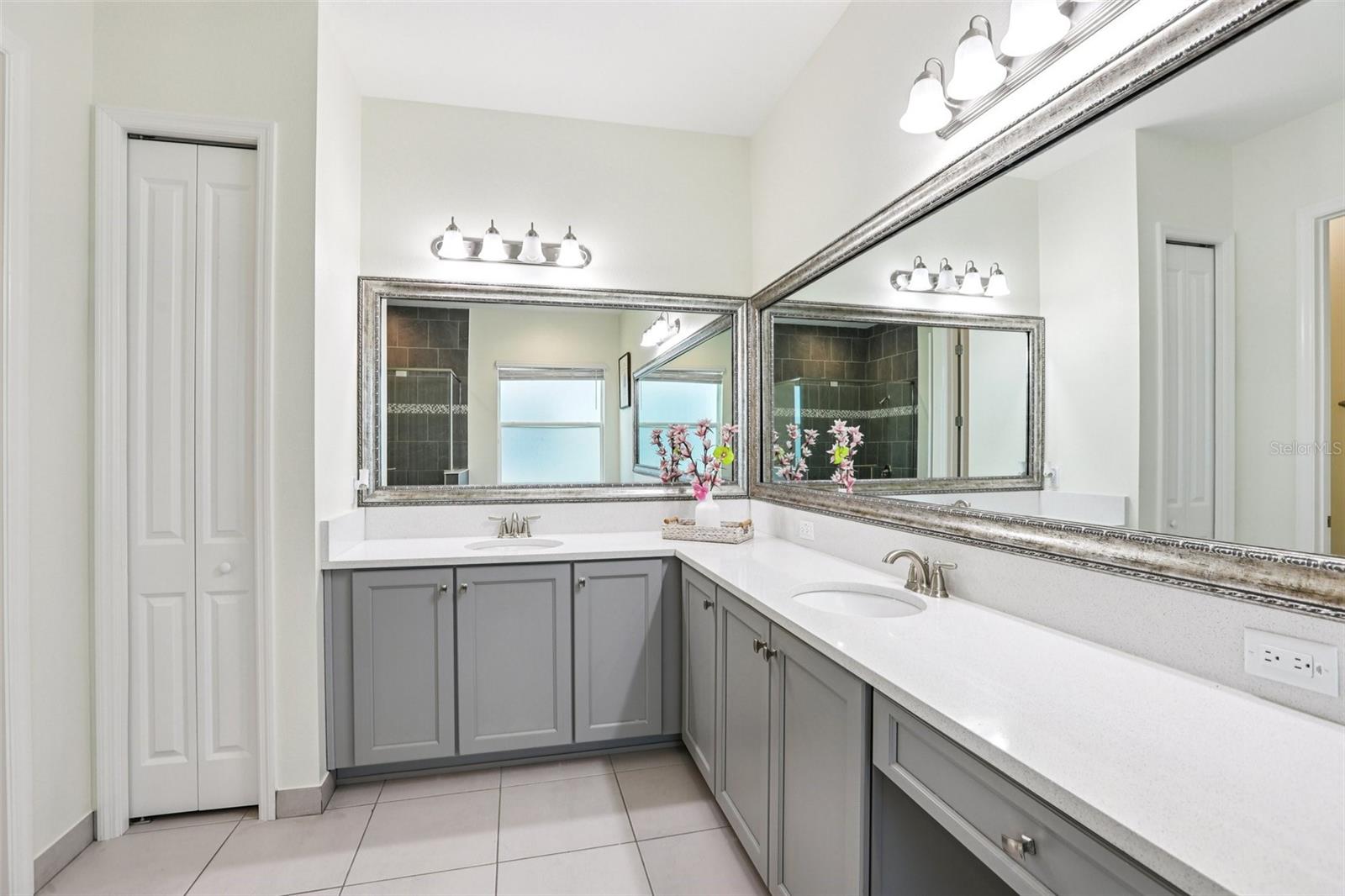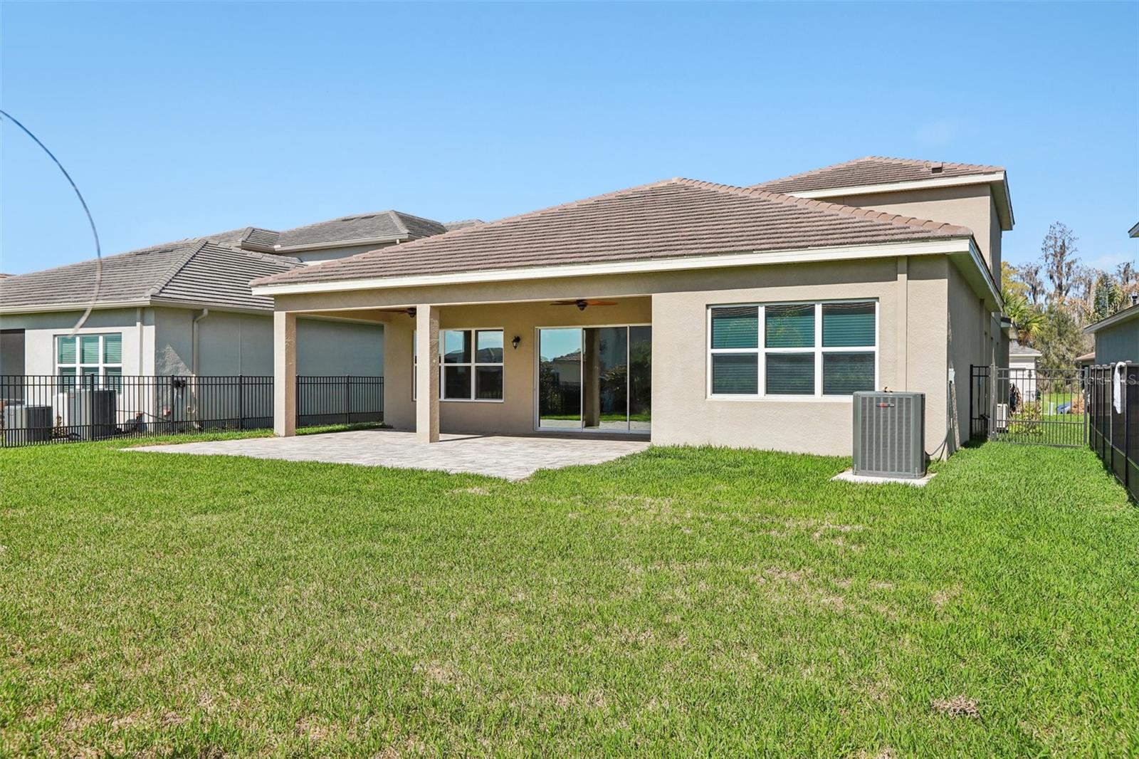 This beautifully maintained, move-in-ready 3 Bedroom Plus OFFICE Plus BONUS ROOM 3 car garage Executive Home in the gated community of Winding Ridge offers the perfect blend of modern style and everyday functionality. Large OFFICE is currently being used by the owners as the 4th bedroom, Sellers will install a closet upon buyer request. From the moment you pull up to the OVERSIZED PAVERED DRIVEWAY AND 3-CAR GARAGE—**pre-wired and ready for an EV charger**—the STACKED STONE ACCENTS AND CLASSIC TILE ROOF set the tone for a home that perfectly suits a Florida family lifestyle! Stepping through the DOUBLE LEADED GLASS FRONT DOORS, you are greeted by an airy, light-filled floor plan featuring TRAY CEILINGS AND UPGRADED LIGHT FIXTURES. Best of all, there isn’t a stitch of carpet to be found; DURABLE LUXURY VINYL PLANK (LVP) FLOORING RUNS THROUGHOUT THE HOME, making it ideal for a busy, modern lifestyle. The highlight of the wide-open floor plan is the spacious kitchen and living area designed for gathering. The MASSIVE KITCHEN ISLAND WITH ITS DEEP APRON SINK IS A NATURAL CENTERPIECE, COMPLEMENTED BY SLEEK QUARTZ COUNTERTOPS, A CUSTOM TILE BACKSPLASH, AND A PREMIUM GAS RANGE WITH A GRIDDLE. A cutom designd, double-door pantry provides plenty of storage, while the adjacent dining room features a CUSTOM ACCENT WALL that adds a personal, designer touch. The living room is PRE-WIRED FOR SURROUND SOUND for an elevated media experience! For those who need a home office, playroom, or guest space, the VERSATILE DOWNSTAIRS FLEX ROOM and convenient powder room offer the extra square footage today’s families crave. Additional highlights include a WATER SOFTENER and a REVERSE OSMOSIS WATER TREATMENT SYSTEM for clean, pure water. The SPLIT-BEDROOM LAYOUT ensures everyone has their own space, and the primary suite serves as a quiet retreat with DIRECT ACCESS TO THE LANAI and an EN SUITE BATHROOM FEATURING DUAL SINKS, A DEDICATED VANITY, AND A RELAXING GARDEN TUB. Organization is effortless here, as ALL OF THE BEDROOMS ARE FURNISHED WITH CUSTOM CLOSET SYSTEMS. Upstairs, the HUGE BONUS ROOM WITH ITS OWN POWDER ROOM is a fantastic secondary living space for movie nights or a teen hangout. Outdoor living is just as impressive, with TRIPLE SLIDERS OPENING UP TO A 15-FOOT EXTENDED, PAVERED LANAI WITH A VIEW OF THE POND AND A FULLY FENCED, OVERSIZED BACKYARD—perfect for pets, play, or weekend BBQs. Living in Winding Ridge also means enjoying a resort-style lifestyle, with access to a clubhouse, fitness center, pool, splash pad, and courts for tennis, pickleball, and basketball. This home truly offers the spaciousness and modern upgrades a growing family needs in a community that has it all.