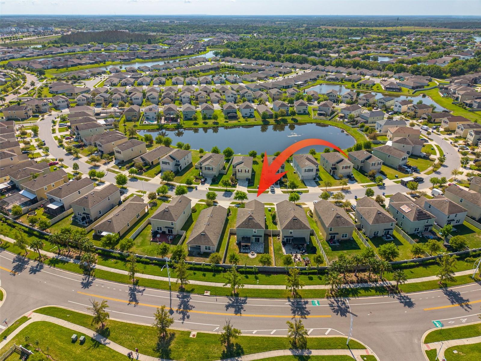 Four bedrooms. Over 2,200 square feet. Gated lagoon community. $400,000. This is the one your agent was about to text you. Located in the Tuscan Bay section of Epperson Ranch South, this 2,260 sq ft two-story home delivers a comfortable, open layout with room to grow. The main level features plank flooring, a shiplap accent wall with a floating wood shelf in the dining area, and a kitchen with granite countertops, stainless steel appliances, pendant lighting, and a center island that opens to the living space. A half bath and walk-in pantry round out the first floor. Upstairs, the primary suite includes a walk-in closet with natural light and an en-suite bath featuring a fully rebuilt walk-in shower — frameless glass enclosure, floor-to-ceiling stone tile, a built-in bench, pebble tile floor, and matte black hardware throughout. Updated arched mirrors and modern lighting complement the dual vanity. A dedicated laundry room, three additional bedrooms — each sized to fit a full furniture layout — and a flexible bonus area at the top of the stairs complete the upper level. The backyard is where this home stands apart. A full paver patio with a hardtop pergola, string lights, a stone fire pit with seating, and privacy fencing — with green space still left over. It's ready to enjoy from day one. Fresh paint in neutral tones throughout. Updated ceiling fans in every bedroom. 2-car garage. All inside Epperson's gated Crystal Lagoon community — sandy beaches, kayaking, paddle boarding, trails, parks, and a clubhouse at your doorstep. Minutes to Publix, Starbucks, and the Shops at Wiregrass. Thirty-five minutes to downtown Tampa via I-75.