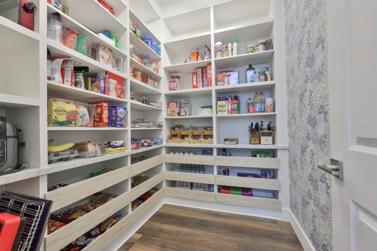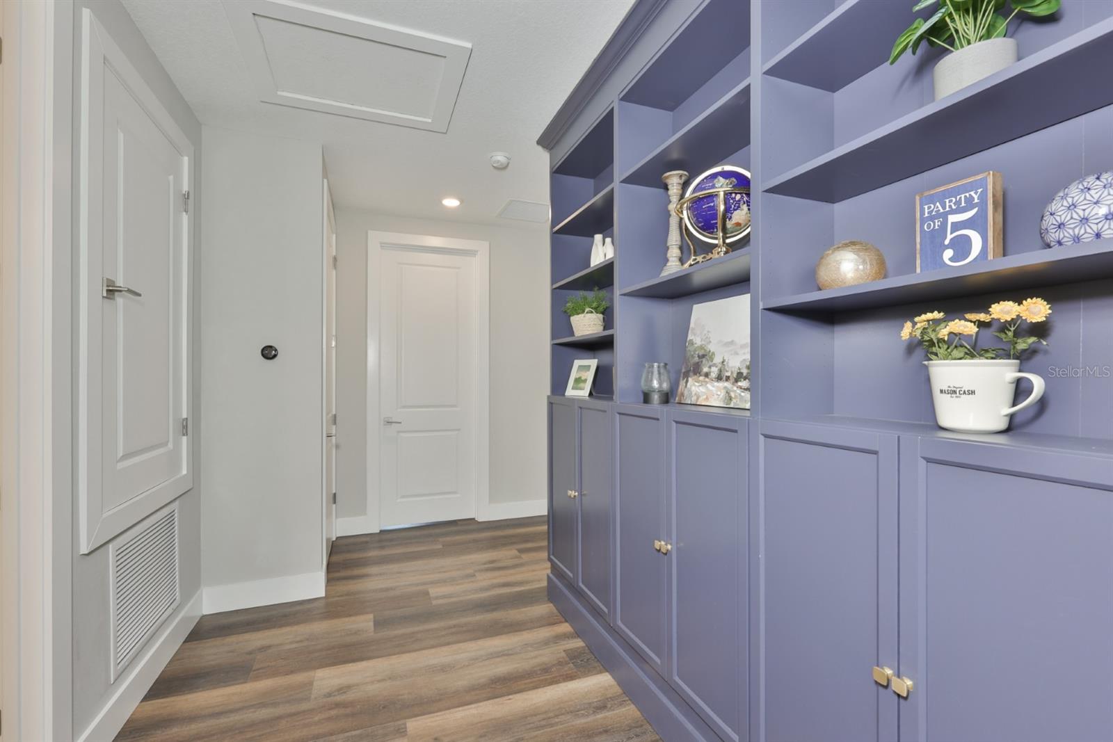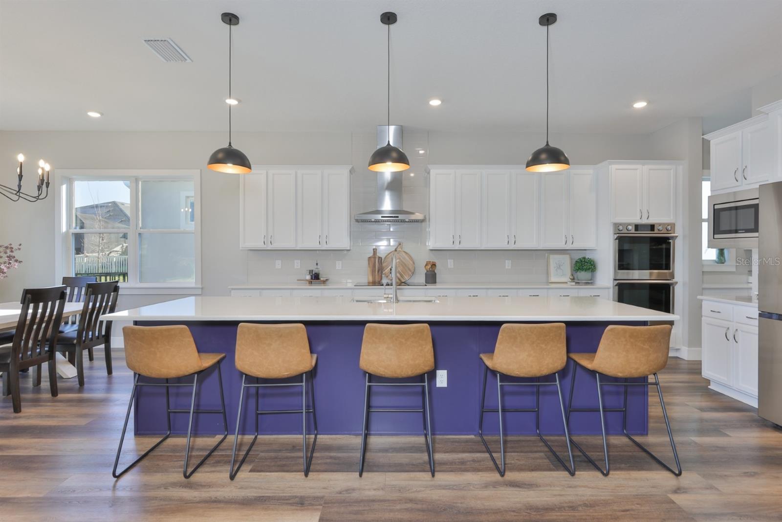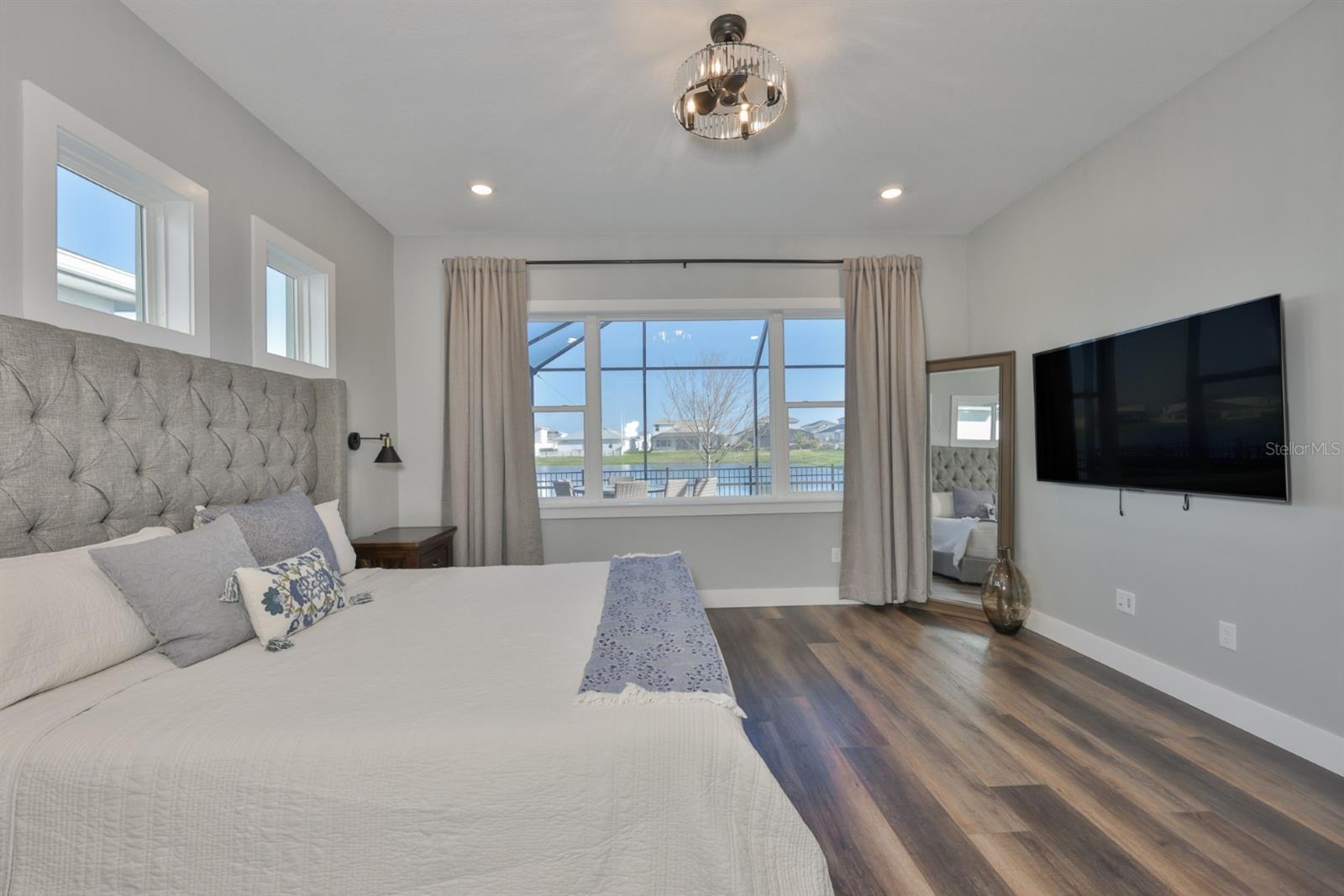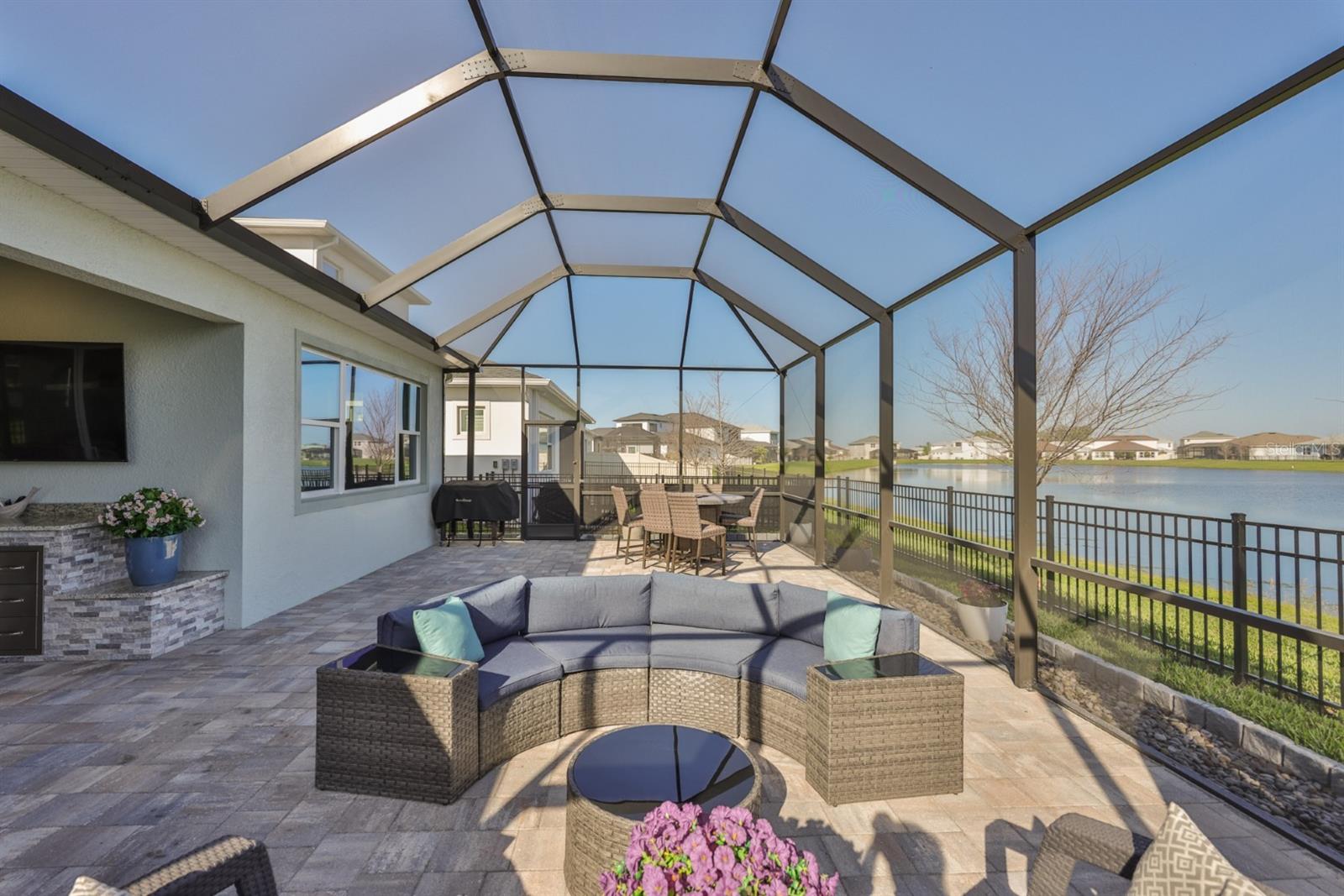 Experience the ultimate in waterside luxury with this stunning executive home by Biscayne Homes. Situated in the prestigious Robin's Cove enclave of Epperson, this 3,719 SF home combines modern sophistication with a resort-style Florida lifestyle. The Egret III floor plan offers an expansive open-concept layout featuring five oversized bedrooms, a loft, a bonus room plus three full bathrooms and two half-baths! The interior features a fresh, neutral palette throughout highlighted by high ceilings, Level 3 LVP flooring, upscale finishes, built-in cabinetry, LED lighting, upgraded bathrooms and "Cashmere" colored walls with "Extra White" trim. The kitchen is designed for high-end utility and hosting, with an upgraded butler's area and a massive 8'x7' walk-in pantry with wooden shelving. Other professional-grade upgrades include extended kitchen custom cabinetry with luxury hardware, extended quartz countertops, and an oversized kitchen island with custom cabinet panels- large enough to comfortably seat a group of five. The appliance package features a stainless steel single-basin sink and Samsung appliances, including a double oven and a counter-depth four-door "handprint free" French door refrigerator. Transition from the heart of the home to the outdoors! Step through the four-panel panoramic sliding doors to the outdoor kitchen and an expansive, screened-in lanai, perfect for year-round relaxation and entertaining waterside! Living in Epperson provides a resort-style experience centered around the 7.5-acre Crystal Lagoon. Epperson is amenity rich with residents enjoying access to white-sand beaches, swim-up bars, kayaking, and paddleboarding. The golf-cart friendly community also offers trails, a dog park, tot lots, green spaces, Eagle Park (0.5 mi) & has UltraFi high-speed internet included! Elem (1.2 mi)-Middle (2.4 mi)-High (2.6 mi) Schools are close to home, including the top-rated InPrep Academy (K-8 charter) and Kirkland Ranch Academy (a magnet high school) both ~1 mi from home! Tampa commute is ~30 min from home, quick access at Overpass Rd & I75 (~3 mi from home). Nearby shopping includes Tampa Premium Outlets, the Shops at Wiregrass, and Krate at the Grove. Biscayne Homes is an award winning luxury builder with superior construction standards, including concrete block on first and second levels! ASK for community brochures on trails, lagoon and community maps!