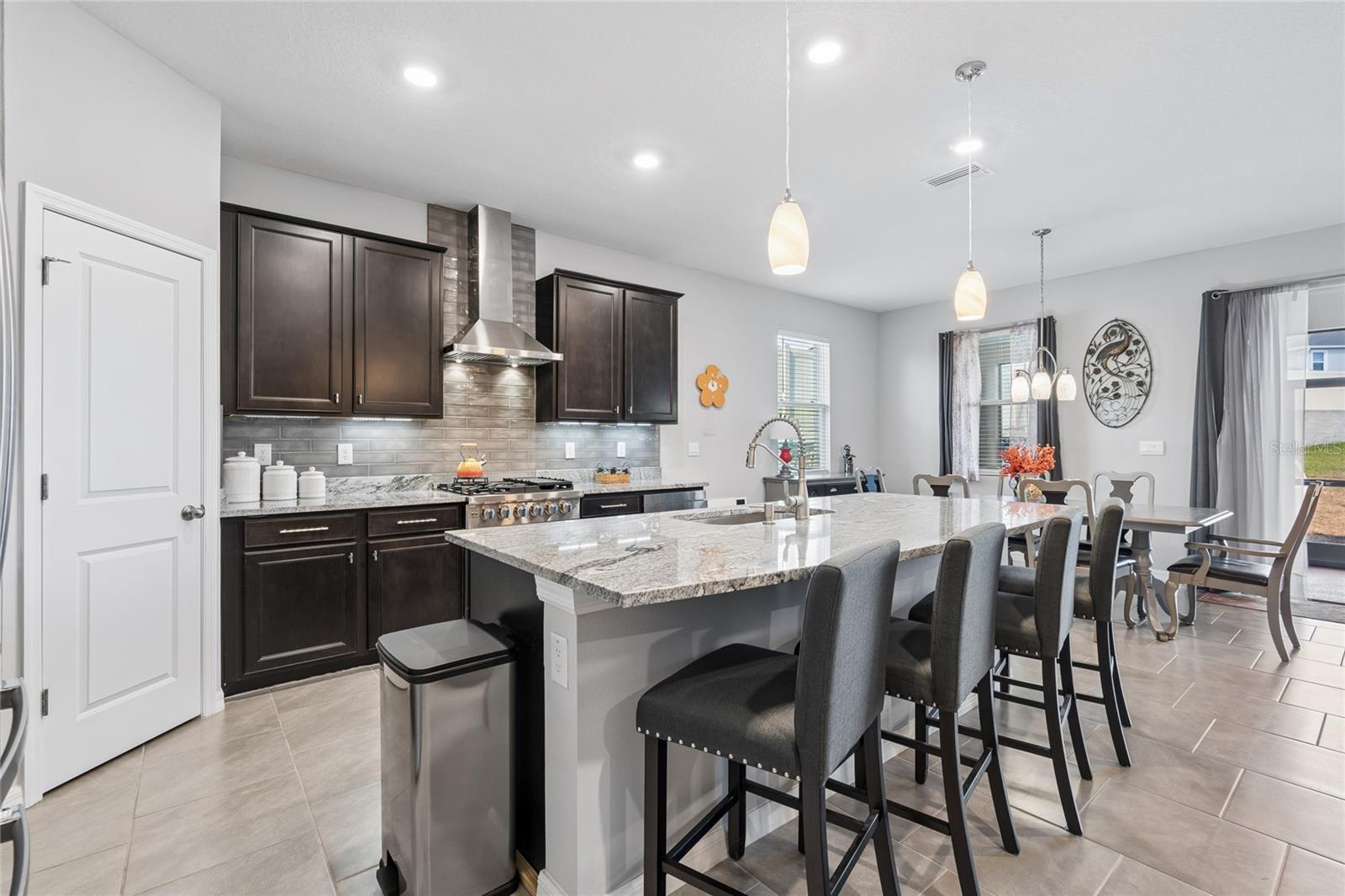 This highly upgraded 2024-built Lantana Preferred Series home in Epperson offers 4 bedrooms and 2.5 bathrooms on a premium, oversized lot with Elevation F—the most grandiose of the three available elevations. Ideally located on an interior lot, this home offers a peaceful setting tucked away from the upcoming four-lane expansion and paving of Tyndall Road to become a thoroughfare through to Overpass Road. This interior location ensures a serene setting away from future traffic signals and high-traffic views. Featuring a distinctive front gable, an expansive feel with 9.4-foot ceilings, and a custom gourmet kitchen, this residence is defined by its purposeful upgrades and refined finishes rather than standard builder-grade materials. The gourmet kitchen features all granite countertops, high-end appliances, and a microwave drawer. Highlight: Professional-grade 36” FORNO Massimo French Door GAS Range (6-burner/83k BTU/Air Fry/Steam Clean) — a rare find. It is one of very few homes in all of Epperson Ranch with a gas stove! A large center island anchors the open-concept layout, which flows directly into the living and dining areas. Additional upgrades include a screened front entry with a large designer screen door and a fully enclosed rear lanai. Attention to detail continues into the bathrooms, which have been elevated with many upgrades including upgraded Moen faucets and stand-alone mirrors replacing the standard builder-grade mirrors. Thoughtful interior additions like 3-inch faux wood blinds provide privacy and clean, uniform sightlines. Residents enjoy Epperson’s 7.5-acre crystal lagoon with sandy beaches, water activities, tiki bar, and community events, plus miles of trails, parks, playgrounds, a dog park, and UltraFi high-speed internet included in the HOA. The location provides quick access to I-75, shopping at Tampa Premium Outlets and KRATE, dining, and top-rated schools including Kirkland Ranch Academy. Information provided is deemed reliable but not guaranteed. Buyer is responsible for verifying all facts, including square footage, measurements, permits, HOA requirements, and community amenities. Washer and Dryer do not convey.