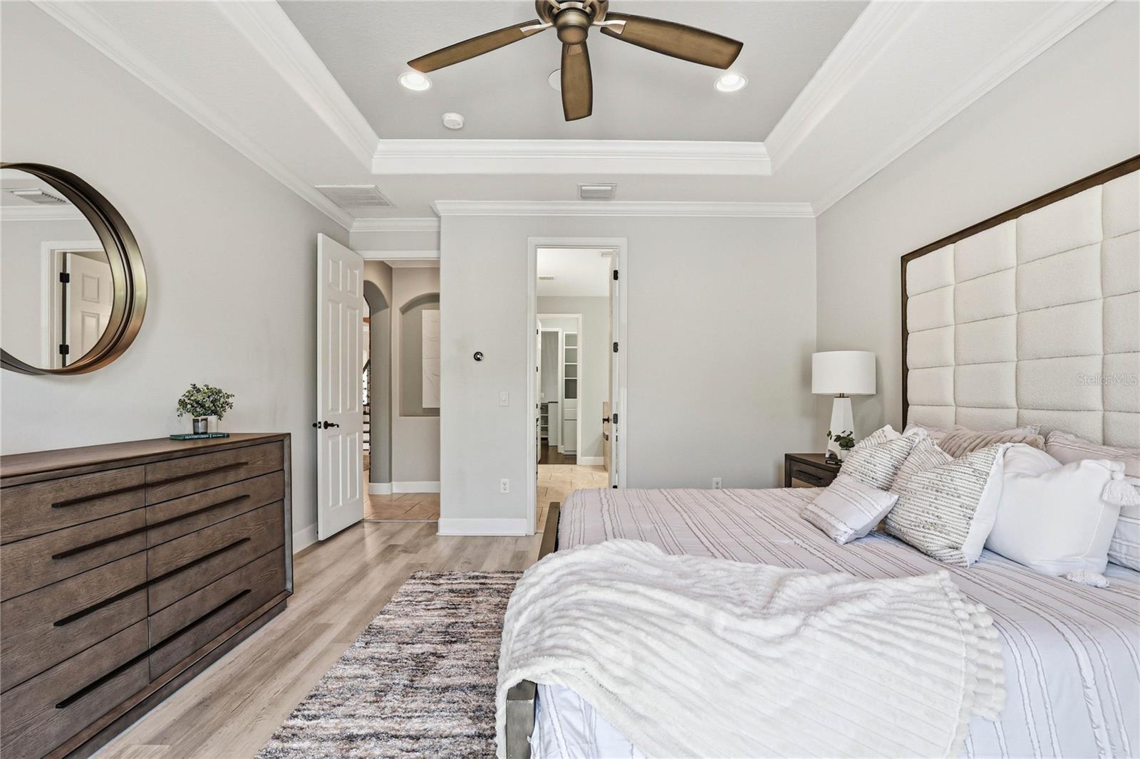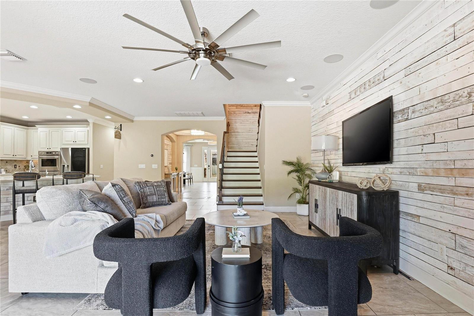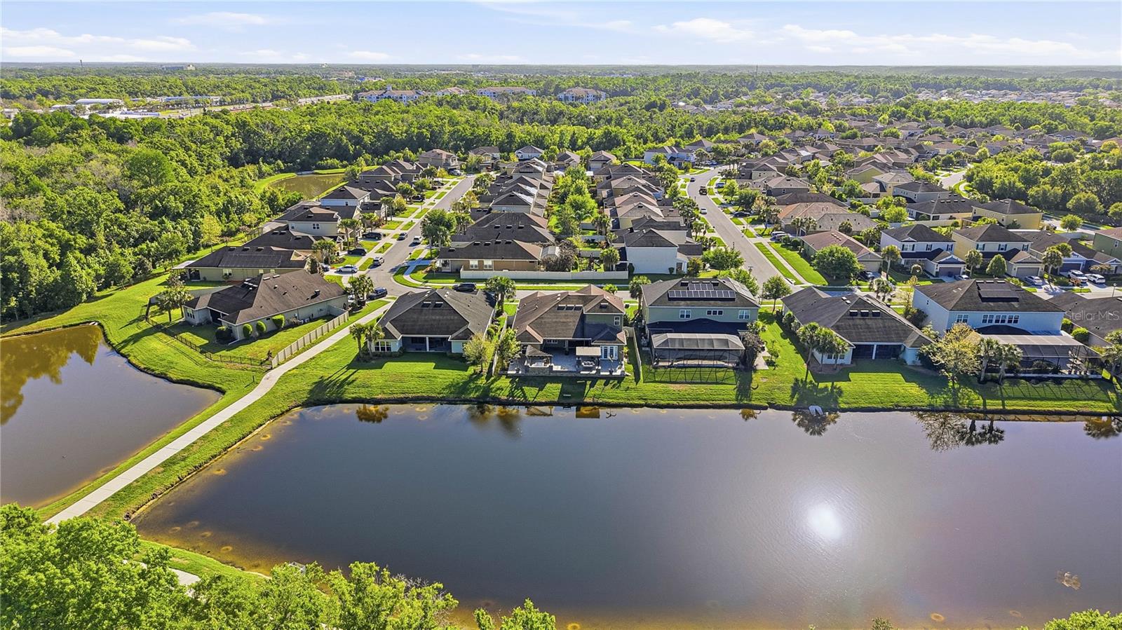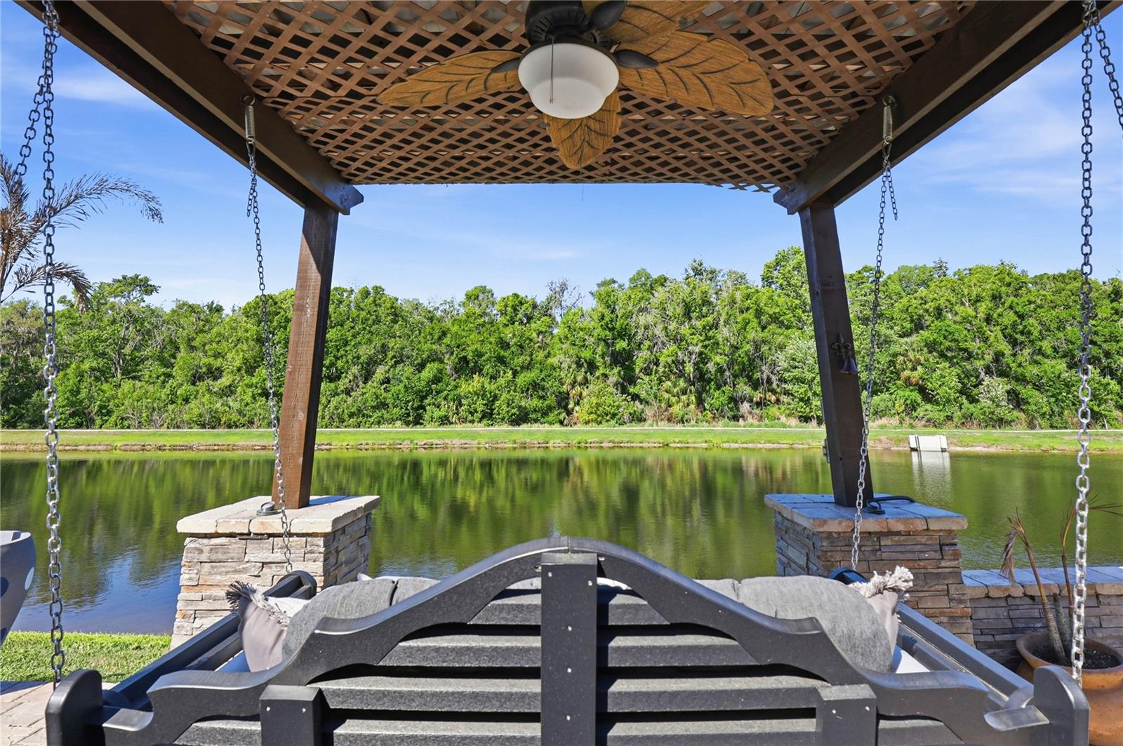 Welcome home to Arbor Woods luxury at its finest, with a sprawling and thoughtfully designed floor plan that pairs upscale finishes with exceptional indoor-outdoor living. This 4 bedroom + office, 3 full baths, 2 half baths home offers two first floor living spaces, a second floor loft, and a truly standout backyard overlooking the water. The exterior sets an inviting tone with sidewalk lined streets, a paver driveway, Hardie shake and stone accents, and a cozy covered front porch that allows you to slow down and enjoy the setting. Inside, the home immediately impresses with crown molding, tray ceilings, elevated lighting, warm neutral paint, shiplap feature walls, built-in speakers, a central vacuum, and no carpet throughout. The expansive family room is designed for entertaining and gathering, with recessed sliding doors that open wide to the outdoor living space, creating a seamless transition and showcasing peaceful water views. The kitchen overlooks it all, making hosting effortless. It offers a central island with breakfast bar seating, a Monogram built-in double oven, a gas cooktop with pot filler, a walk-in pantry, coffee nook, and a cozy eat-in dinette to keep conversations easily flowing. For more formal gatherings, the dedicated dining room sits near the front of the home, complete with a statement chandelier and wainscoting details. Nearby, the private office is tucked away from the main living areas, offering a quiet and functional workspace. Additional living spaces include a media room at the rear of the home and an impressive 18x19 second floor loft featuring a wet bar, beverage refrigerator, and convenient half bath, creating the perfect space for movies, guests, or even a game room! The primary suite is privately positioned on the first floor and features direct access to the patio through French doors, along with a serene and well appointed ensuite bathroom. A unique highlight is the adjacent bedroom that has been transformed into a massive custom walk- in closet with built-in organizers and a chandelier, while still offering the flexibility to easily convert back into a bedroom. It shares a Jack and Jill bathroom with the third bedroom. Bedroom four is located on the opposite side of the home near a full bath, providing an ideal guest setup. Outdoors, the backyard has been thoughtfully designed for year round enjoyment. The paver patio features an outdoor kitchen, fire pit, covered seating, open seating, and a charming swing overlooking the pond, creating a space that feels like the epitome of relaxed Florida living. Located within the gated community of Arbor Woods, residents enjoy access to a swimming pool and playground, all just minutes from Tampa Premium Outlets, Wiregrass Mall, major highways, and everyday conveniences. Reach out today for more details or to schedule your private showing!