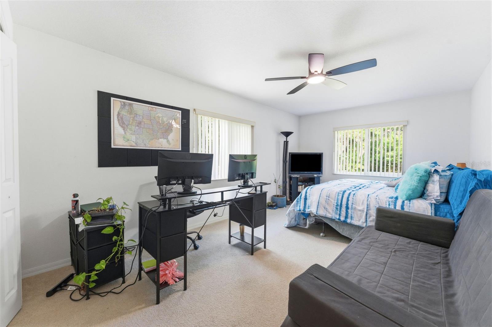 Situated on nearly 2 acres with no HOA or CDD, this 4-bedroom, 3-bath, 3-car garage home offers privacy, space, and flexibility in Wesley Chapel. Built in 2002, the home features a split, open floor plan with high ceilings, arched architectural details, and multiple living and dining areas filled with natural light. The kitchen overlooks the main living space and includes granite countertops, solid wood cabinetry, a center island, and bar seating, ideal for entertaining. The spacious primary suite and additional bedrooms provide comfortable separation, while a large dedicated office can easily function as a 5th bedroom or flex space. Enjoy outdoor living with a screened-in lanai that opens to an oversized paver patio and expansive backyard surrounded by mature trees. The property offers plenty of room for boats, RVs, or future additions. Major updates include a 1-year-old roof, newer hurricane-impact windows, 5-year-old HVAC, and a 1.5-year-old well system. The home is on well and septic, keeping utility costs low. Seller has obtained a professional exterior repaint quote for buyer convenience. A credit toward repaint may be offered with acceptable terms, allowing the buyer to customize to their preference. A rare combination of land, upgrades, and location, close to Wesley Chapel amenities while still offering a private, estate-style setting.