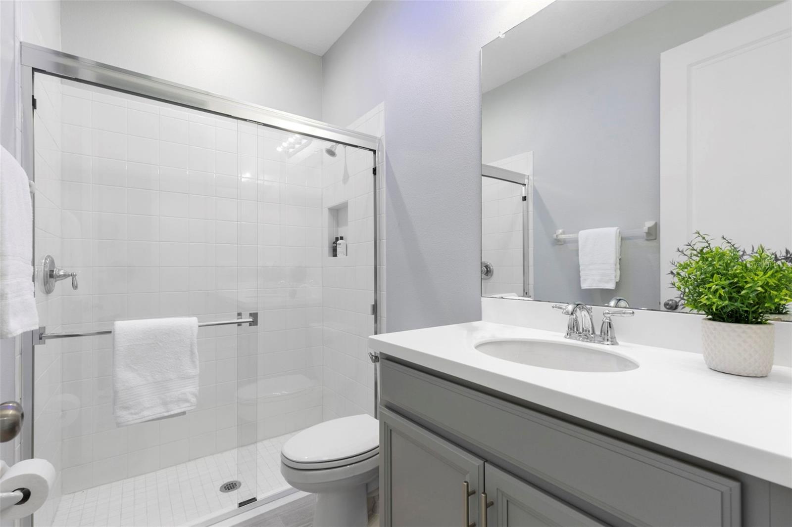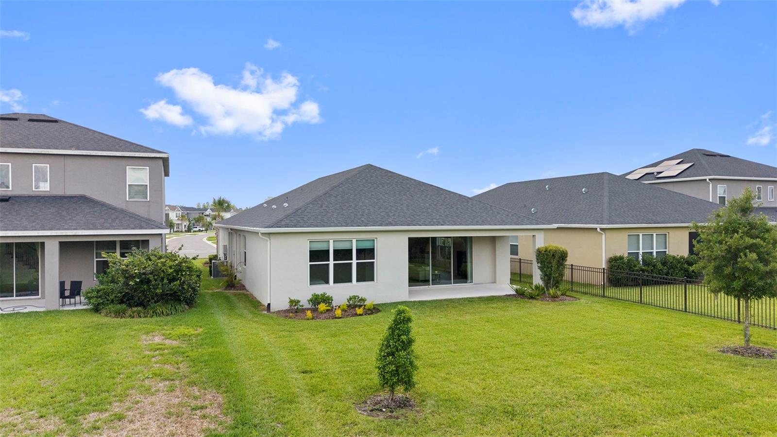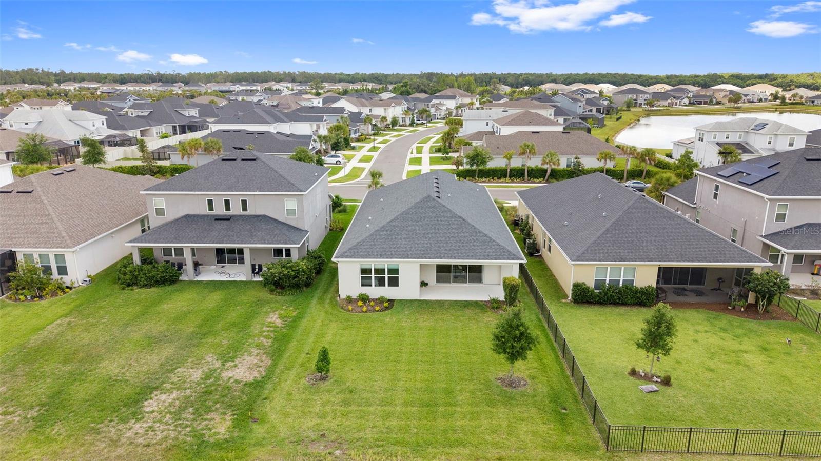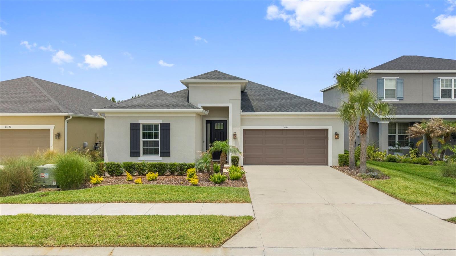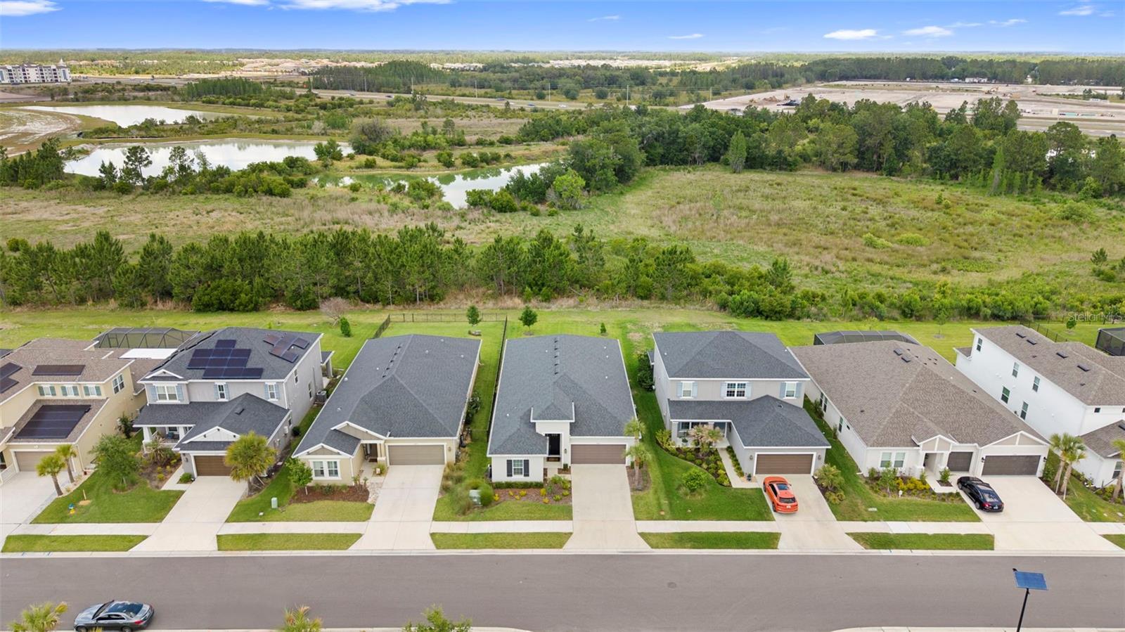 One or more photo(s) has been virtually staged. Positioned within the sought-after community of River Landing and set against a peaceful wooded backdrop, this original-owner 2022 Taylor Morrison residence offers a seamless blend of contemporary design, comfort, and elevated everyday living in one of Wesley Chapel’s prime locations. Thoughtfully designed with 2,420 square feet of single-story living, this four-bedroom, three-bath home with a versatile bonus room and two-car garage balances style with functionality, all while being ideally situated near the community gate, resort-style amenities, premier shopping, dining, and major roadways. Step through the covered entryway into a light-filled interior where natural light carries throughout the home, enhanced by 8-foot doors that add to the open, elevated feel. Just off the foyer, a spacious bedroom and full bath create a private retreat for guests, complete with a sleek glass walk-in shower and a Broan Surface Shield antiviral and antibacterial LED exhaust fan. Nearby, a flexible bonus room offers endless possibilities—ideal as a home office, formal dining space, or creative studio. Continue down the hall as the layout opens into the heart of the home, where open-concept living takes center stage. The gourmet kitchen is both striking and functional, featuring 42-inch wood cabinetry, quartz countertops, a designer tile backsplash, recessed and statement lighting, stainless steel appliances, and a gas range, along with an expansive island with wood planking detail. A dry bar and oversized walk-in pantry elevate the space, making entertaining effortless. The kitchen flows seamlessly into the dining and living areas, where pocket sliding glass doors blur the line between indoor and outdoor living. Privately tucked just off the living room, the primary suite offers a serene escape with a modern, tranquil feel, complemented by an expansive walk-in closet. The spa-inspired en-suite bath features a glass walk-in shower with bench seating, a soaking tub, dual-sink quartz vanity, and an additional Broan Surface Shield LED exhaust fan. Two additional bedrooms are thoughtfully positioned and share a beautifully designed full bath, completing the home’s well-executed single-level layout. Through stacking glass sliders, the covered lanai opens to an expansive backyard overlooking peaceful wooded views, offering the perfect canvas for a future pool or outdoor kitchen. Additional highlights include a leak detection system with auto shutoff, security system, Nest thermostat, pre-wiring for surround sound, tankless water heater, whole-house water softener and filtration system, electric vehicle charging connection, epoxy-coated garage flooring, MyQ app-controlled garage door opener, and French drains. River Landing residents enjoy an exceptional lifestyle with a beautifully appointed clubhouse featuring recreational and fitness spaces, a game room, lagoon-style pool with splash area, hot tub, cabanas, ample lounging areas, pickleball and tennis courts, basketball courts, soccer fields, dog park, playground, and corn hole area—creating a true resort-style living experience. Ideally situated near The Shops at Wiregrass and Tampa Premium Outlets, the community offers both convenience and lifestyle, with easy access to I-75, SR 56, SR 581, and SR 54.