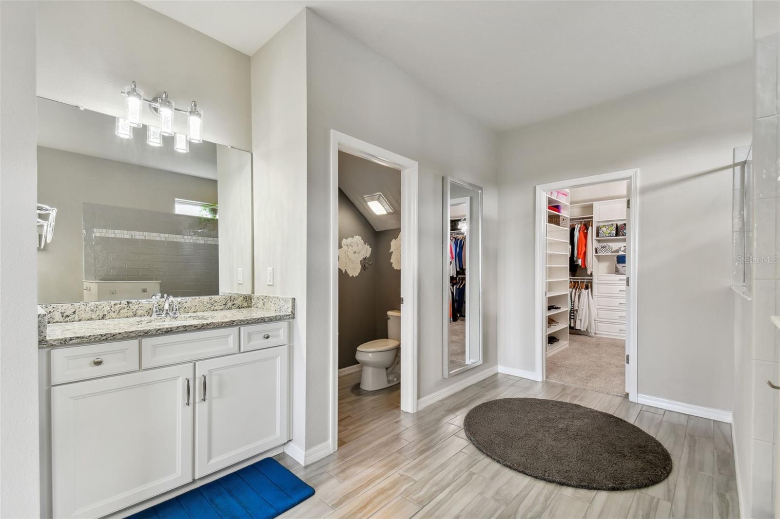 Discover unparalleled luxury in this exquisite Pulte Pompeii Grand home, where every detail exudes elegance and sophistication. Spanning 2802 sq. ft., this impressive 2-story residence features 3 bedrooms, each with its own ensuite bathroom and walk-in closet, alongside an inviting office and expansive bonus/media room. The office could be a fourth bedroom with a quick install of a door. When mother nature shows up unexpectedly and the power goes out you have a little less worry with this home as it has a Generac Whole House Generator. You can ensure your home stays powered, no matter the weather. Upon entering the home the 8-foot etched glass front door, you're welcomed into a double foyer beneath soaring 10-foot ceilings. The open floor plan seamlessly connects a dining/living room adorned with a striking shiplap signature wall, complementing the vibrant electric fireplace and custom mantle. The gourmet kitchen is a chef's dream, boasting a stunning granite island, complemented by a stone backsplash and top of the line stainless-steel appliances. There is room for bar stools at the kitchen island as well as a nice size dining area adjacent to the kitchen. Throughout the home, dazzling light fixtures add a touch of opulence, with pendant chandeliers illuminating the kitchen island and creating a warm ambiance. The sunlit great room, enhanced by high ceilings and three sliding glass doors, opens onto a screened lanai overlooking a tranquil pond—a perfect spot for morning coffee or evening relaxation. The versatility of the office allows for various uses, whether as an office, formal dining room or a playful space for children. The owner's retreat is a sanctuary of luxury, featuring laminate flooring, a signature wall, and French doors opening to a spa-like master bathroom. Here, double sinks with granite countertops complement a super shower with a bench and rain shower-head. The custom walk-in closet is a masterpiece in itself, adorned with a stunning chandelier, ample drawers, a hamper, and endless shelves. There is a half bath in the same hallway as the laundry room and the laundry has custom cabinets for optimal storage. Upstairs, a spacious bonus room offers flexibility as a gym or media room. There is also a bedroom with an en-suite bath. Additional highlights include window blinds with decorative panels, a surround sound system, in wall pest defense and a water softener. This exceptional home is nestled within the prestigious Epperson community, renowned for its UltraFi connectivity and vibrant lifestyle amenities. Residents enjoy access to the crystal blue Epperson Lagoon, featuring a sandy beach, swim-up tiki bar, cabanas, resort-style pool, water slide, kayaks, paddle boards, and a packed calendar of community events. Located minutes from restaurants, shopping and healthcare. This community is conveniently located near I-75, Epperson offers easy access to Gulf beaches, downtown Tampa, Tampa International Airport, and Orlando, all within an hour's drive. Embrace luxury living and unparalleled convenience in this remarkable home.