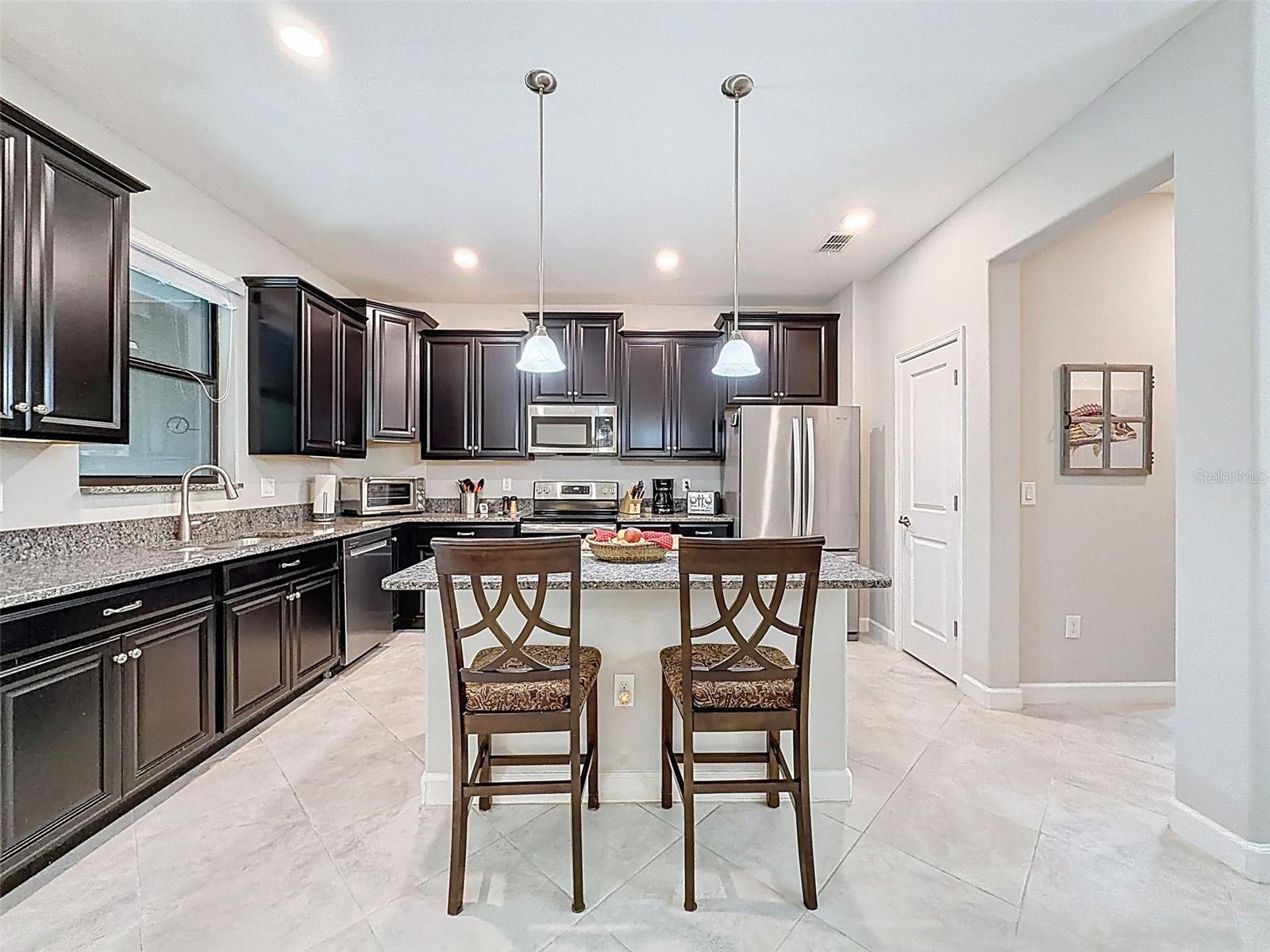 A HOME THAT DELIVERS TRANQUILITY, STYLE, AND COMMUNITY. If you’ve been searching for a residence that blends modern comfort with thoughtful design and a lifestyle-rich community, you’ve found it. From the inviting curb appeal to the peaceful conservation backdrop, every element of this home feels intentional—and it truly shows like a model home the moment you step inside. The main level offers an open-concept layout filled with natural light, tile flooring, and an effortless flow between the living, dining, and kitchen areas. The kitchen is both elegant and highly functional, featuring solid wood cabinetry, granite surfaces, newer stainless appliances, a spacious island, and a rare walk-in pantry—a combination that elevates everyday living far beyond typical builder standards. Updated modern lighting throughout adds a polished, designer feel. Upstairs, a versatile loft provides meaningful flexibility—perfect as a second living area, home office, fitness space, or creative retreat. The expansive primary suite feels like a private sanctuary with two walk-in closets, dual vanities, a soaking tub, and a separate shower. Additional bedrooms offer excellent space and storage, and the upstairs laundry room enhances everyday convenience. Out back, the electric screen lanai creates instant indoor–outdoor living and frames serene conservation views—no rear neighbors, ever. It’s the ideal setting for peaceful mornings, quiet evenings, or hosting friends on the weekends. Arbor at Wiregrass Ranch brings together the best of Florida living with multiple parks, a dedicated dog park, walking trails, beautifully maintained green spaces, and a sparkling community pool. All while being minutes from Wiregrass Mall, KRATE, Tampa Premium Outlets, AdventHealth, top-rated schools, and convenient commuter routes. This home offers more than features—it offers a feeling. And once you see it IN PERSON, there’s a good chance you’ll FALL IN LOVE.