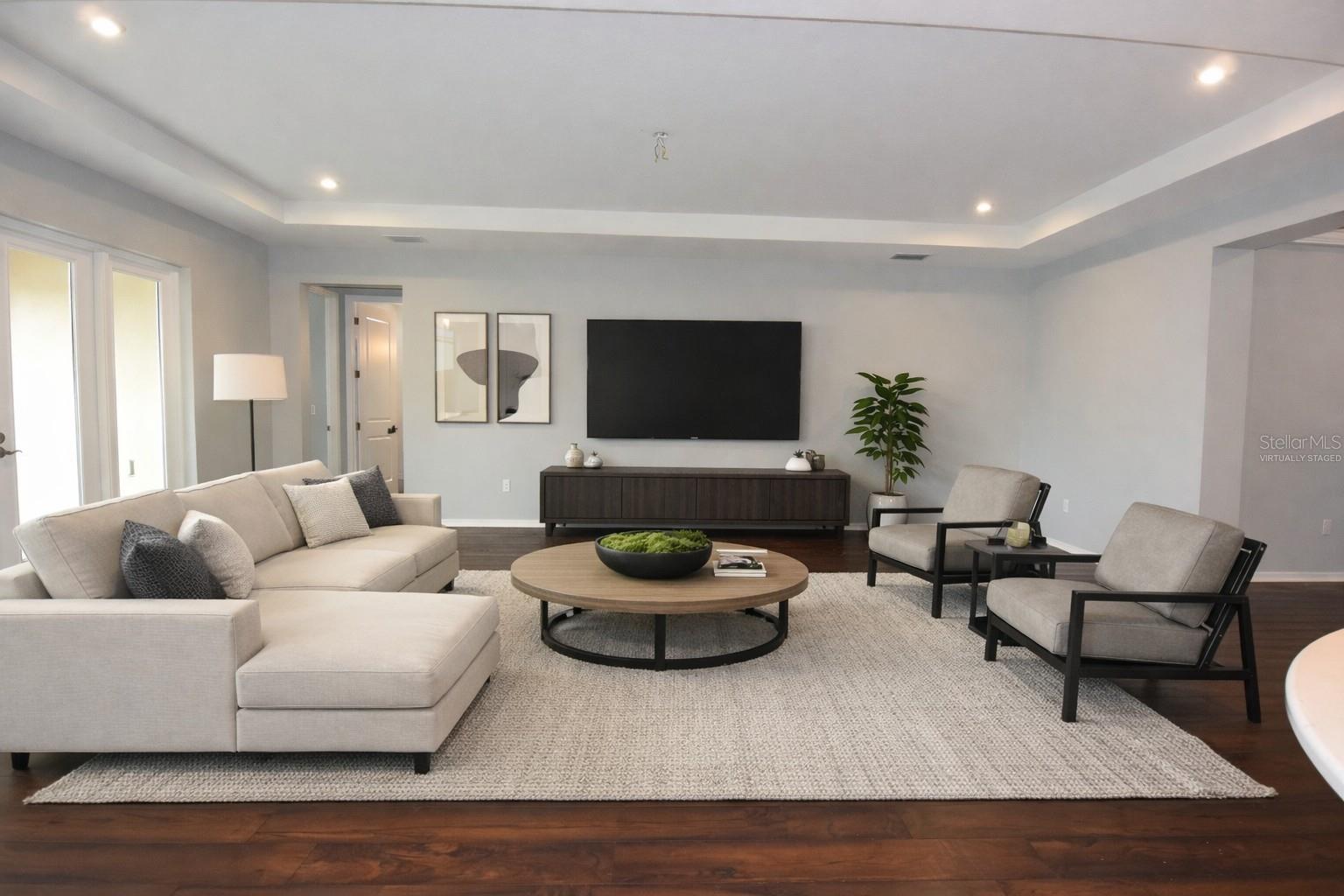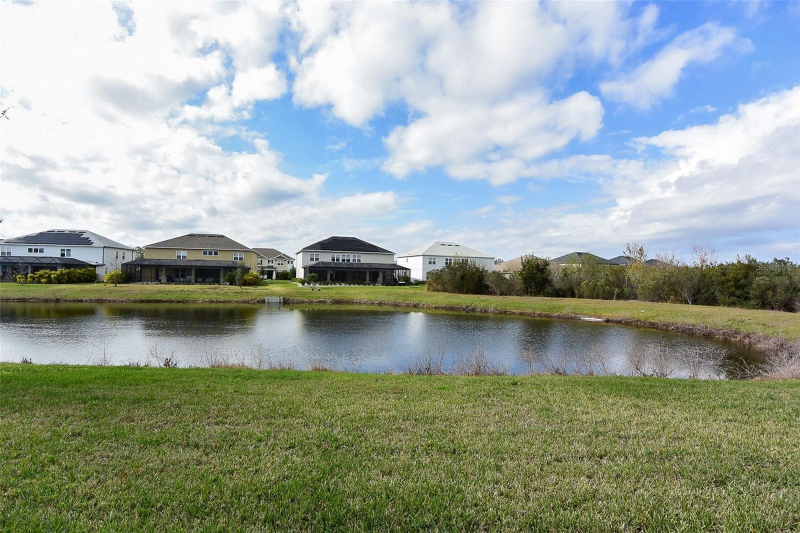 One or more photo(s) has been virtually staged. Located in the desirable gated Watergrass community of Wesley Chapel, this stunning waterfront four-bedroom, three-and-a-half-bath home with a three-car garage offers the perfect blend of space, style, and serene surroundings. Situated on a tranquil pond with beautiful water views, the home features a welcoming covered front porch and a spacious screened rear porch ideal for enjoying Florida living year-round. Inside, you’ll be greeted by high ceilings and a popular great room floor plan that flows seamlessly for everyday living and entertaining. The home includes a formal dining room, a dedicated flex room perfect for a home office or playroom, and a separate den providing additional living space or a quiet retreat. The split-bedroom layout offers privacy, and the inside utility room adds everyday convenience. The expansive primary suite is a true retreat, featuring a gorgeous bathroom and abundant closet space. Additional highlights include zoned HVAC heat pumps and solar panels for enhanced energy efficiency. Residents enjoy resort-style amenities within the Watergrass community, including a clubhouse, community pool, parks, fitness center, and gated access for added privacy and security. Conveniently located near excellent schools, world-class shopping and dining at Tampa Premium Outlets and Wiregrass Mall, and just minutes from I-75 and the SR-54 corridor, making travel throughout the Tampa Bay area a breeze. Waterfront homes in this community are in high demand and rarely available at this price. Schedule your showing today before it’s gone. This property may qualify for Seller Financing (Vendee).