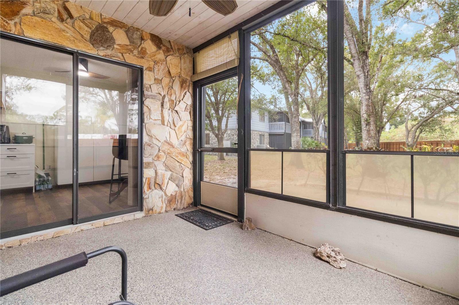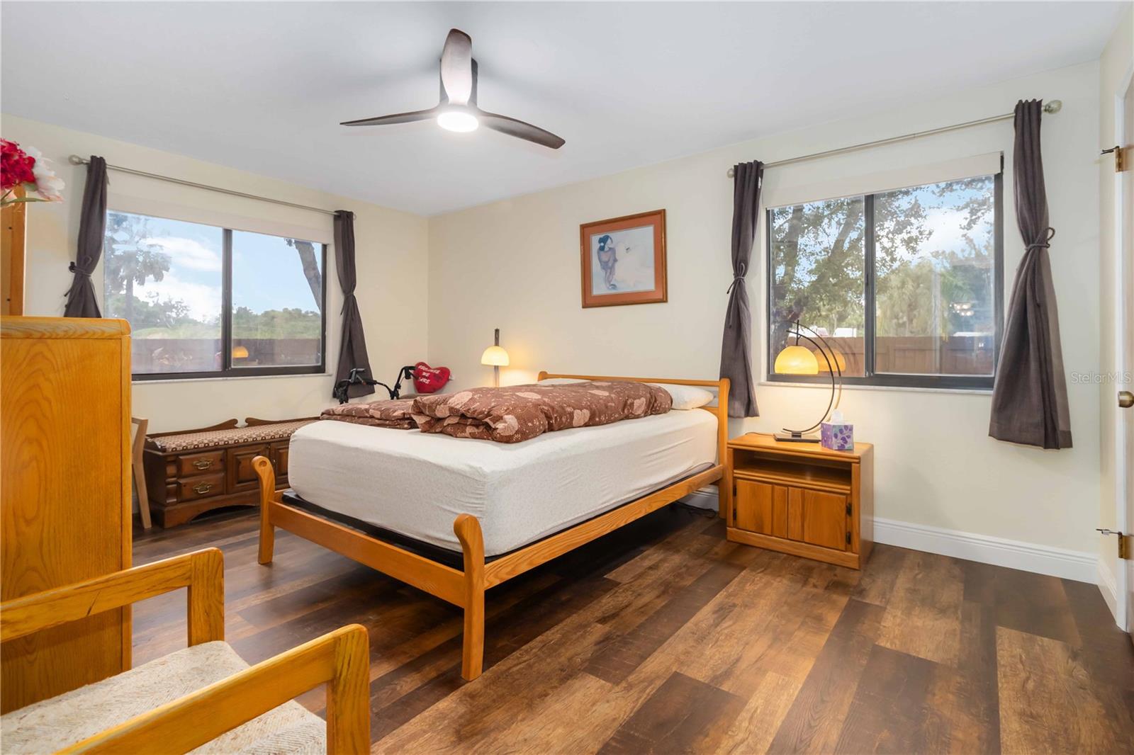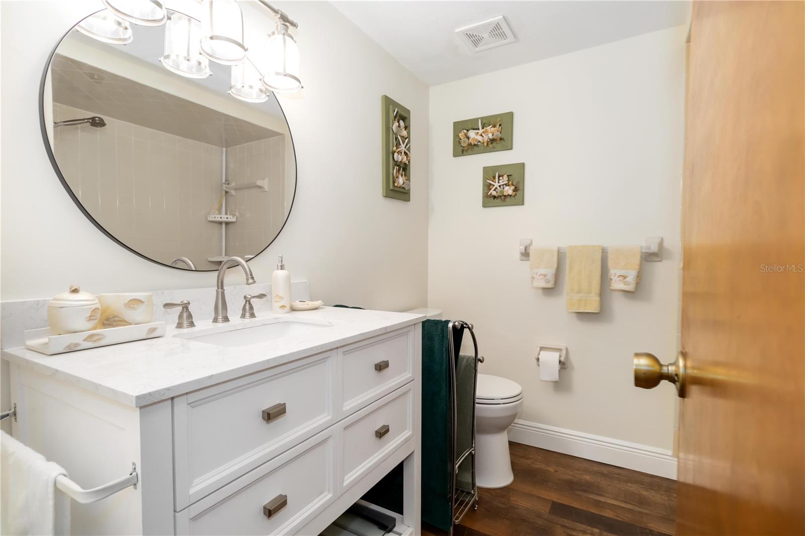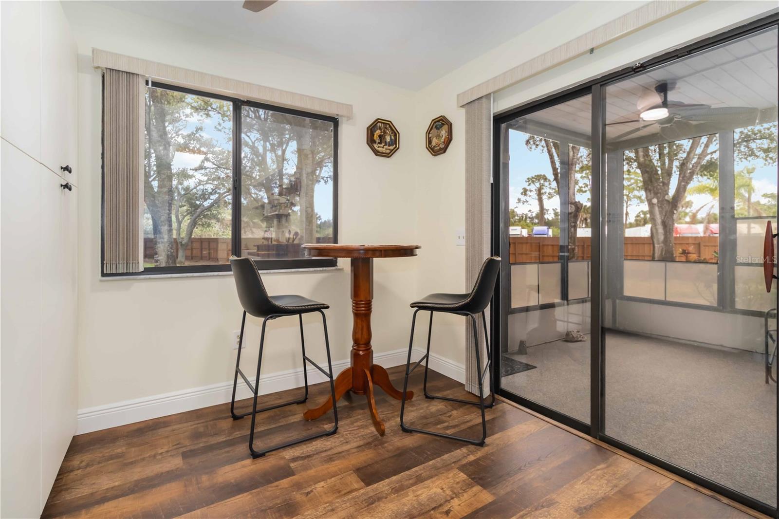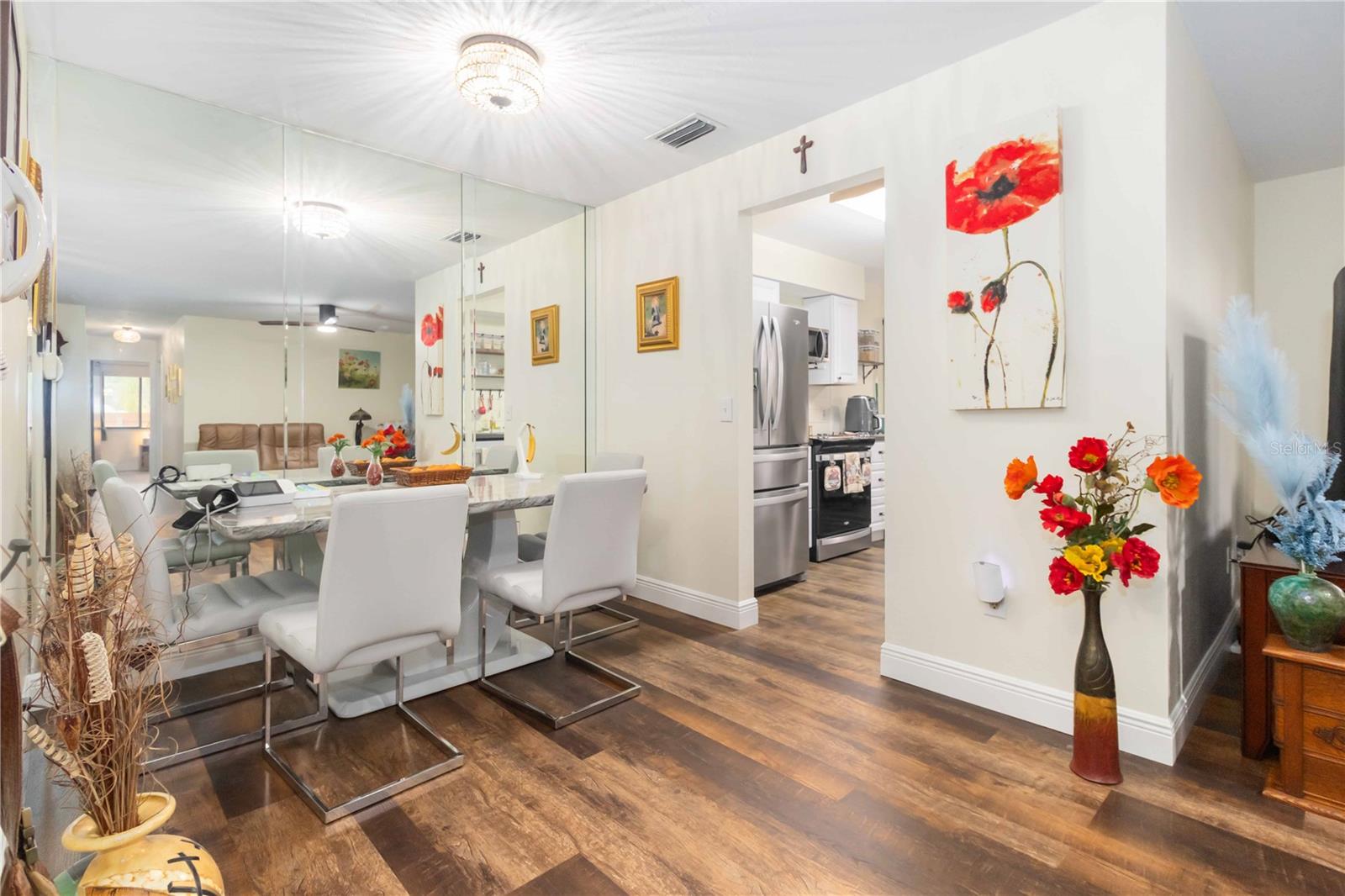 Updated ground-floor 2-bedroom, 2-bath condominium with a private 1-car garage in a well-maintained, gated West Melbourne community with on-site management. This open floor plan features wood-look flooring throughout, fresh interior paint, and modernized appliances, including a new garbage disposal. The AC system was replaced in 2023, offering peace of mind and energy efficiency. The kitchen, dining, and living areas flow seamlessly and open to a fully screened lanai, accessible from both the living room and breakfast area through sliding glass doors. The patio floor has been freshly repainted, creating a clean and inviting outdoor retreat. Both bedrooms feature windows and updated fabric blinds. The primary suite offers a walk-in shower, walk-in closet, elevated commodes, and added safety features. A spacious indoor utility closet with washer and dryer adds everyday convenience. Additional highlights include four ceiling fans, updated guest bath fixtures, and thoughtful finishes throughout. The extra-deep garage provides additional storage space and features a new garage door and epoxy-coated floor. The monthly association fee includes cable, internet, pest control, exterior maintenance, and grounds keeping. Community amenities include a heated and chilled pool, fitness center, indoor racquetball court, tennis and pickleball courts, shuffleboard, sauna, steam room, hot tub, clubhouse, library, playground, community RV parking, and more. Close to I-95 and the beaches! Conveniently located near shopping, dining, and major roadways.