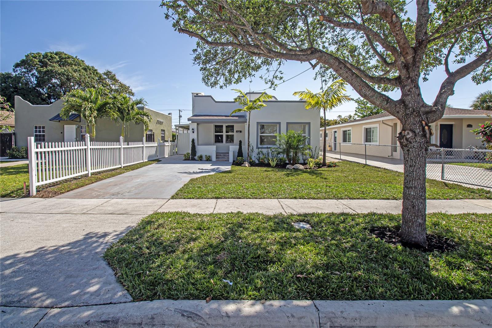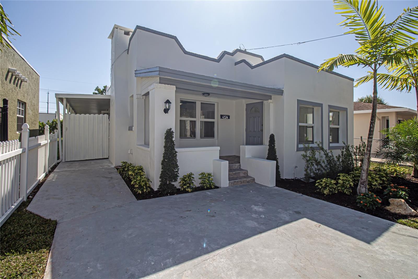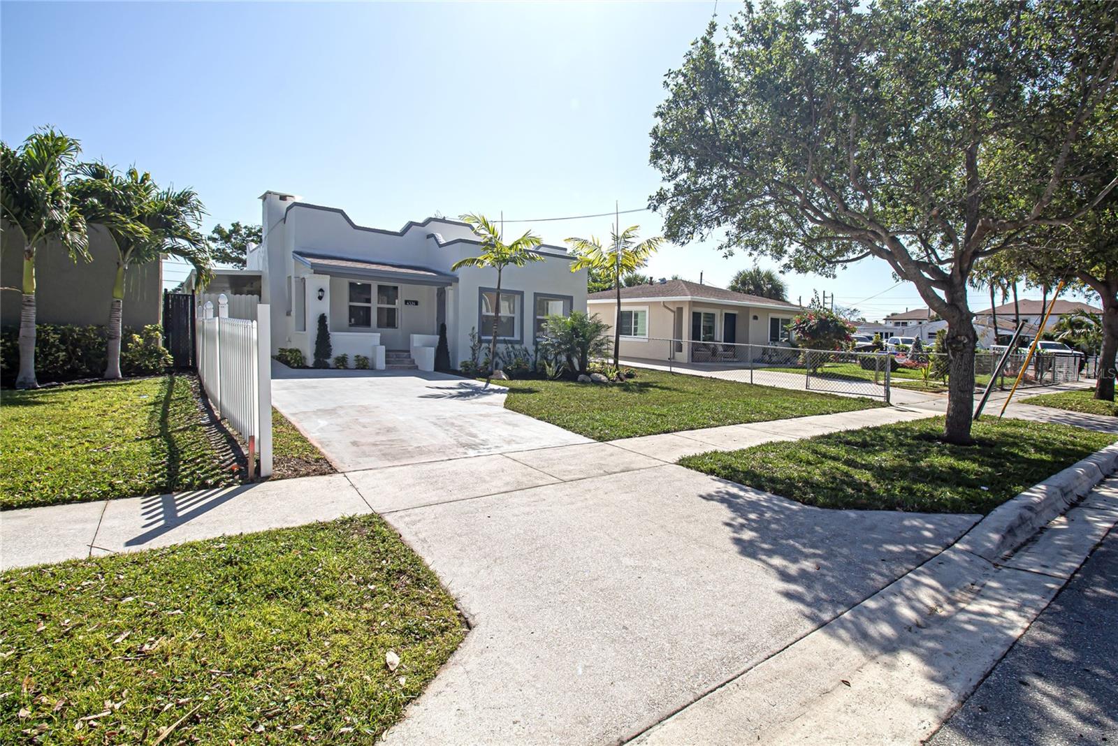 Welcome to this beautifully restored Mediterranean Revival home located in one of West Palm Beach's most desirable neighborhoods. This residence effortlessly blends timeless architectural charm with modern updates designed for comfort and functionality. With four spacious bedrooms and two elegantly remodeled bathrooms, this property offers an ideal layout for both everyday living and entertaining. Inside, you'll find porcelain tile flooring flowing seamlessly throughout the home, complementing the custom wood cabinetry, quartz countertops, and premium stainless steel Samsung appliances in the kitchen. The open concept design provides a bright and inviting atmosphere, while select impact windows, central A/C, and ceiling fans in every room enhance comfort and energy efficiency year round. The exterior of the home features a newly landscaped front and back yard, creating a private oasis perfect for outdoor living. A large inground pool with a safety gate provides the perfect backdrop for weekend gatherings or relaxing afternoons. Additionally, a metal port on the side and back yard offers shaded space for storage or seating. This property is ideally situated just minutes from the beaches, downtown West Palm Beach, top-rated restaurants, shopping centers, and the international airport. With no HOA restrictions, you have the flexibility to enjoy the property as your personal residence, second home, or potential rental investment.