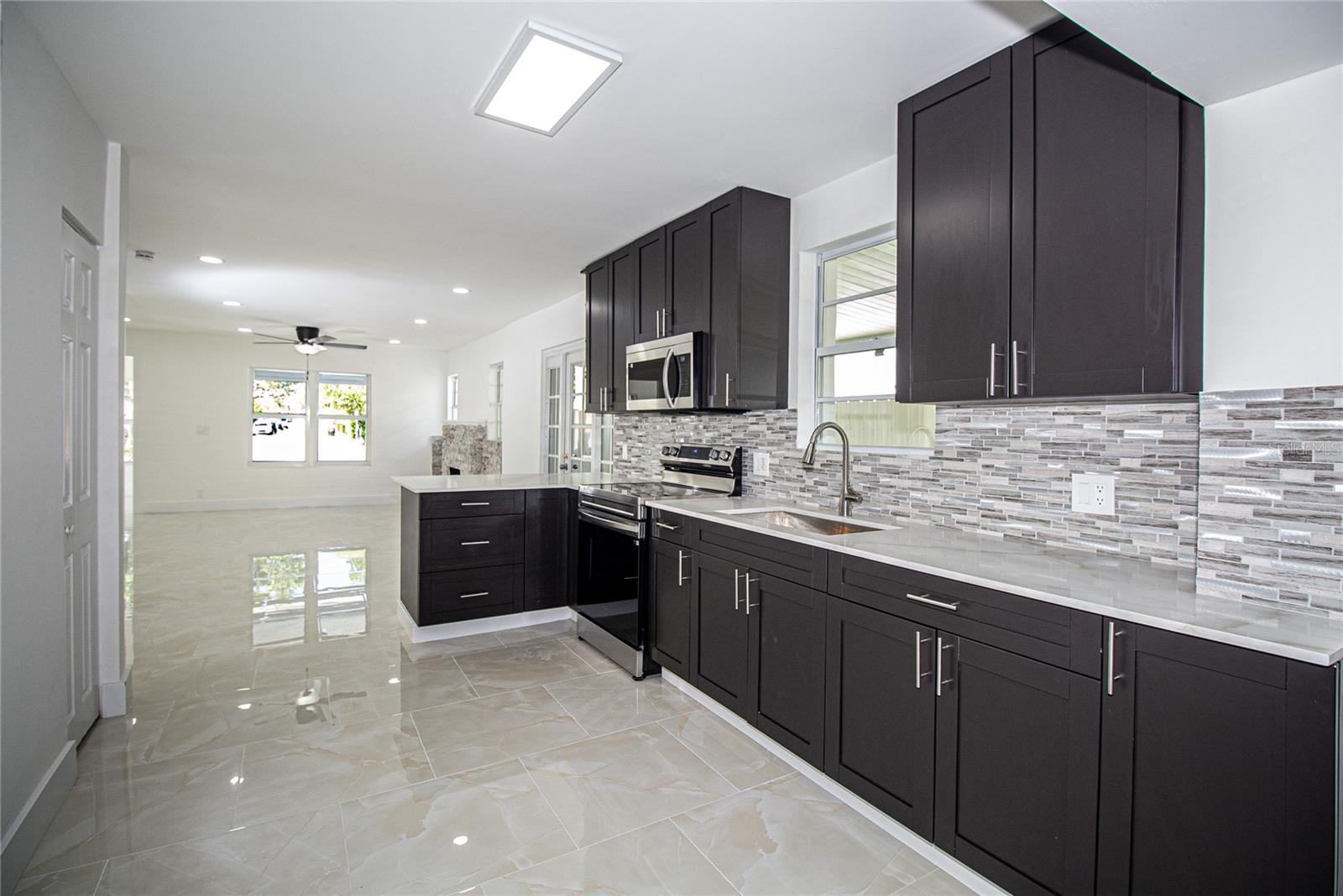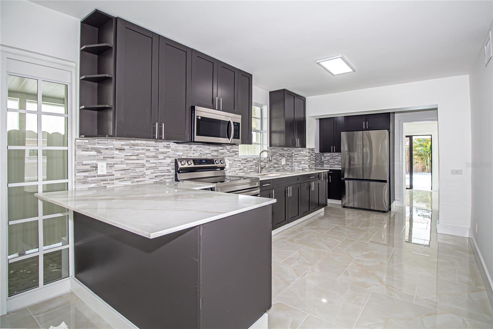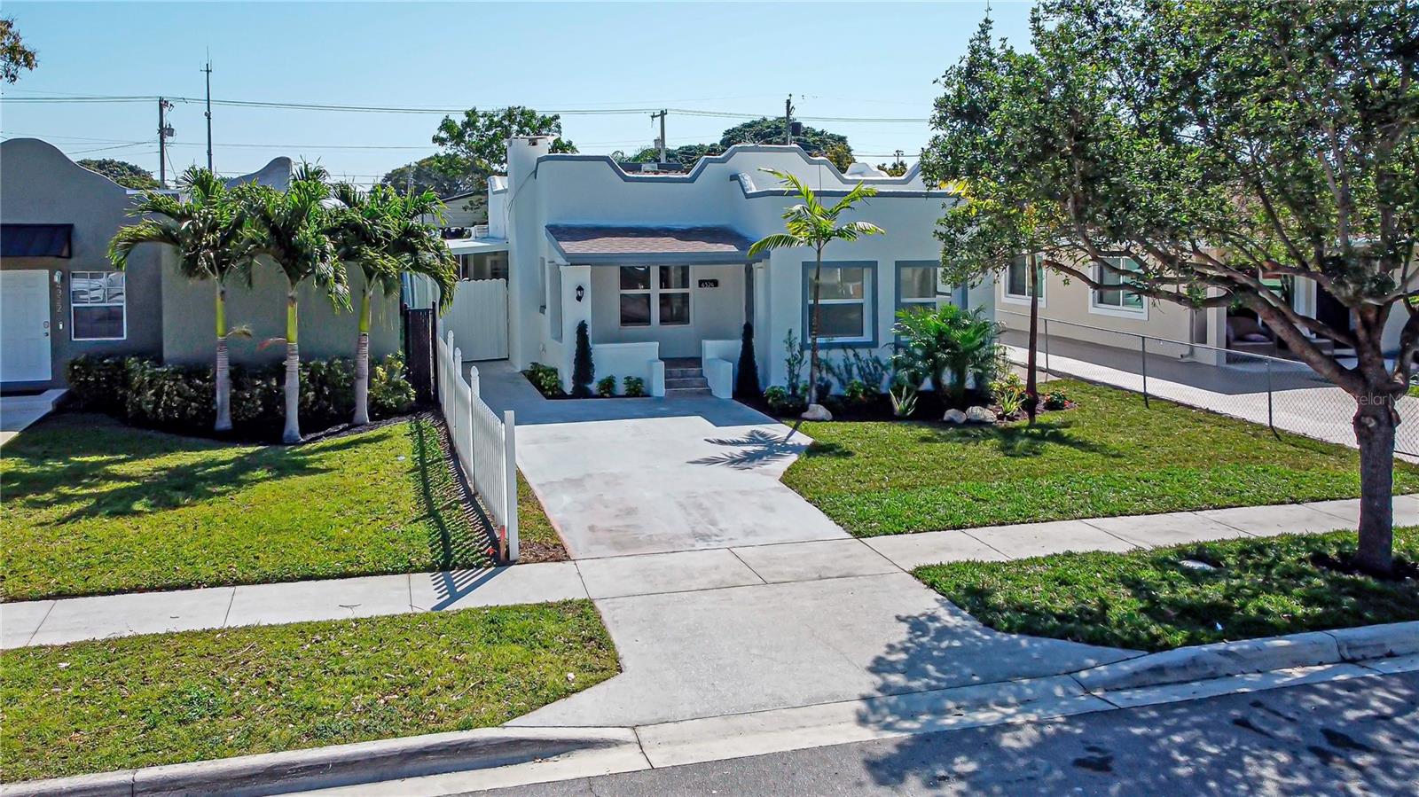 Welcome to this beautifully restored Mediterranean Revival home located in one of West Palm Beach's most desirable neighborhoods. This residence effortlessly blends timeless architectural charm with modern updates designed for comfort and functionality. With four spacious bedrooms and two elegantly remodeled bathrooms, this property offers an ideal layout for both everyday living and entertaining. Inside, you'll find porcelain tile flooring flowing seamlessly throughout the home, complementing the custom wood cabinetry, quartz countertops, and premium stainless steel Samsung appliances in the kitchen. The open concept design provides a bright and inviting atmosphere, while select impact windows, central A/C, and ceiling fans in every room enhance comfort and energy efficiency year round. The exterior of the home features a newly landscaped front and back yard, creating a private oasis perfect for outdoor living. A large inground pool with a safety gate provides the perfect backdrop for weekend gatherings or relaxing afternoons. Additionally, a metal port on the side and back yard offers shaded space for storage or seating. This property is ideally situated just minutes from the beaches, downtown West Palm Beach, top-rated restaurants, shopping centers, and the international airport. With no HOA restrictions, you have the flexibility to enjoy the property as your personal residence, second home, or potential rental investment.