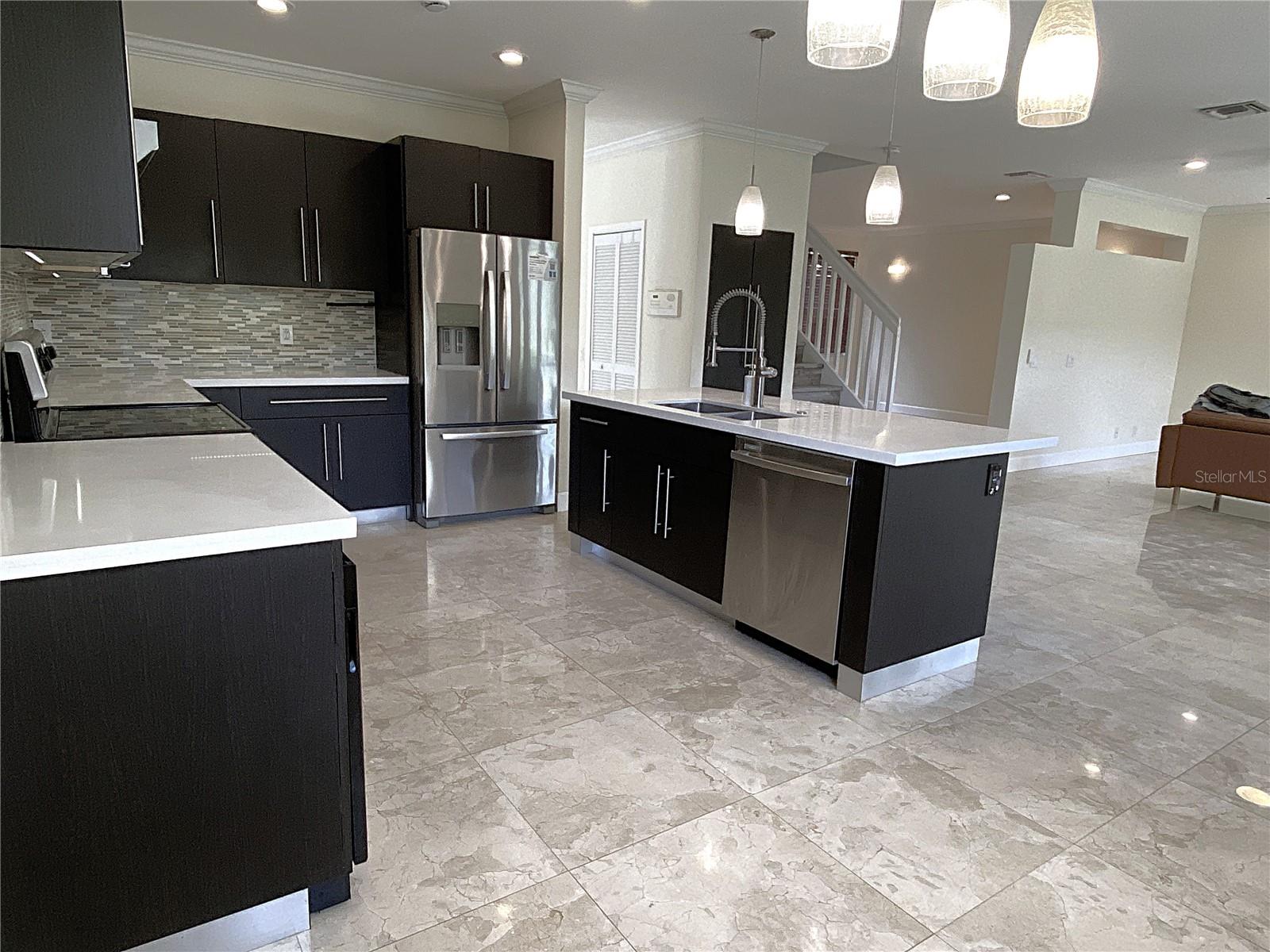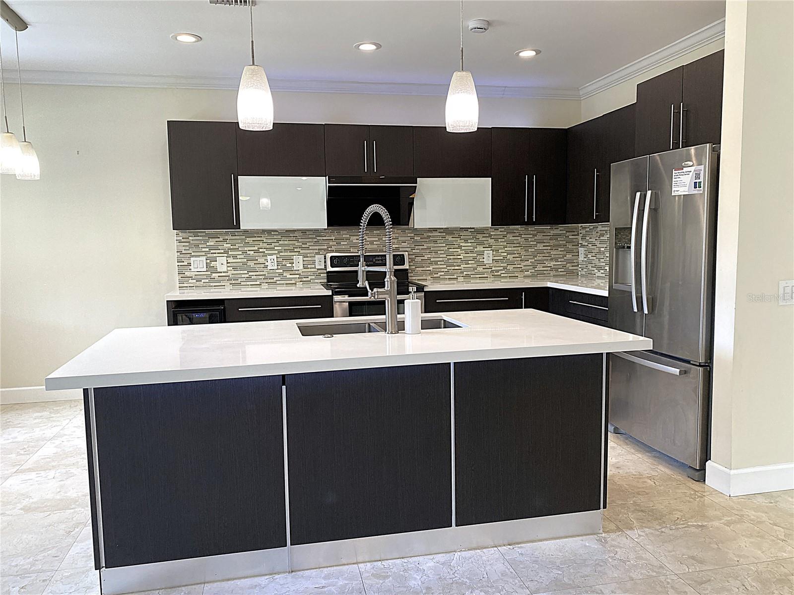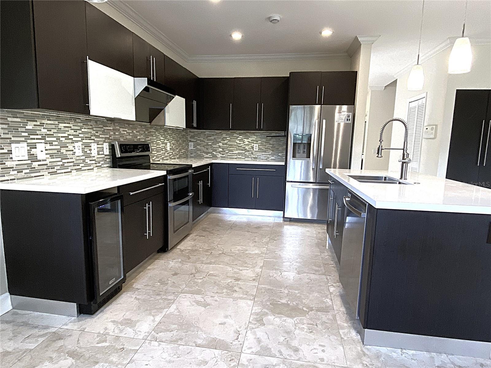 Cozy 4 Bed + den, 2.5 bath lakefront home in the highly desirable gated community of The Ridges w. A-rated schools. Contemporary kitchen features quartz countertops, SS appliances, pull-out faucet, deep square dual-sink & wine cooler. Travertine flooring throughout the 1st floor. Luxury Wood-grain Vinyl Floors in all bedrooms upstairs. Custom remodeled master bathroom has his/her closets, dual-sink vanity with accent LED lights, separate tub/shower, and high-end accessories. Extended covered patio is great for relaxing/family gathering. 2-car garage w. remote control. Lake views w. no neighbors in the back. Extra storage under the stairs. Accordion shutters provide quick hurricane protection. Community offers resort style amenities such as tennis court, basketball court, pickle ball court, volleyball court, large swimming pool and kinder pool, splash and play, picnic and BBQ areas. Easy access to I-75 & I-595. Closed to library, shopping plazas, and international airports.