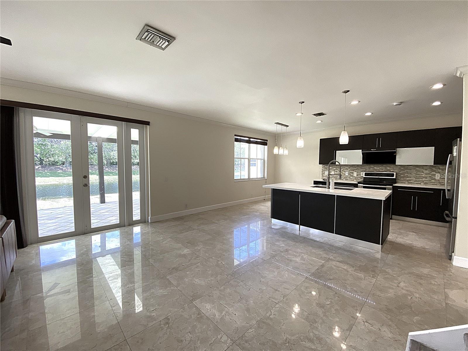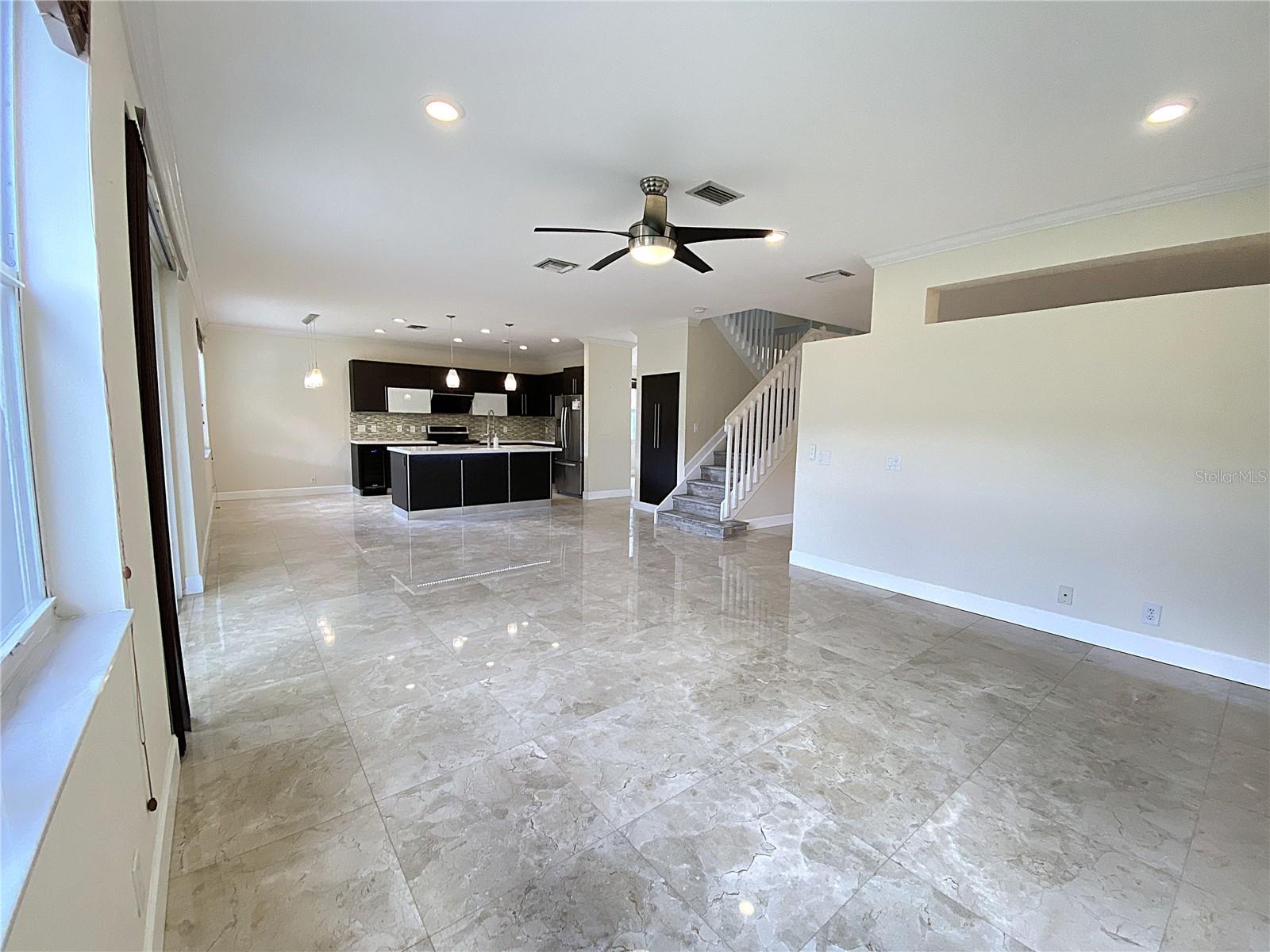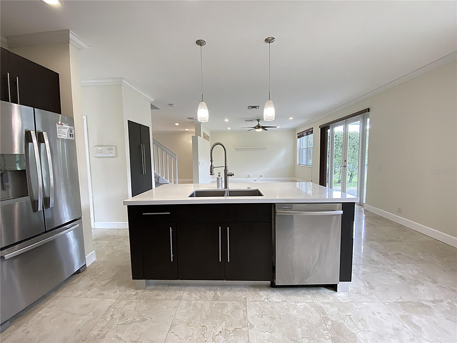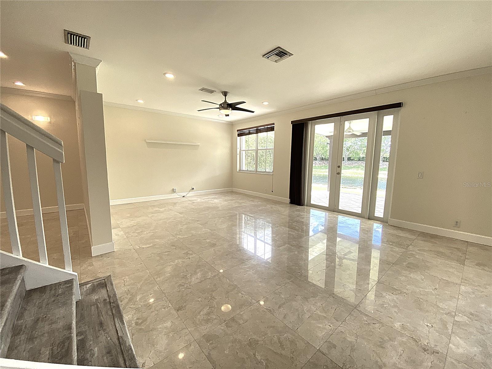 Cozy 4 Bed + den, 2.5 bath lakefront home in the highly desirable gated community of The Ridges w. A-rated schools. Contemporary kitchen features quartz countertops, SS appliances, pull-out faucet, deep square dual-sink & wine cooler. Travertine flooring throughout the 1st floor. Luxury Wood-grain Vinyl Floors in all bedrooms upstairs. Custom remodeled master bathroom has his/her closets, dual-sink vanity with accent LED lights, separate tub/shower, and high-end accessories. Extended covered patio is great for relaxing/family gathering. 2-car garage w. remote control. Lake views w. no neighbors in the back. Extra storage under the stairs. Accordion shutters provide quick hurricane protection. Community offers resort style amenities such as tennis court, basketball court, pickle ball court, volleyball court, large swimming pool and kinder pool, splash and play, picnic and BBQ areas. Easy access to I-75 & I-595. Closed to library, shopping plazas, and international airports.