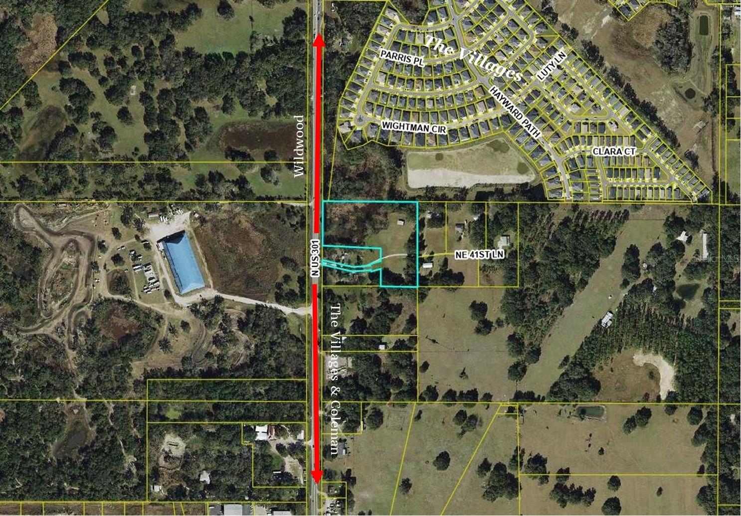 This 6.5 acres with 330' frontage on US Hwy 301 could provide your next opportunity to build/develop on this busy highway between Wildwood and Coleman. This property is contiguous to The Villages and a great place to serve that population...and most of Sumter County conveniently. Currently in the County, the City of Wildwood staff would be favorable to annexation and zoning change, providing City water to the site. Approximately 2.5 acres in the NW corner of the site is in flood zone A. Ingress/egress approximately 30'.