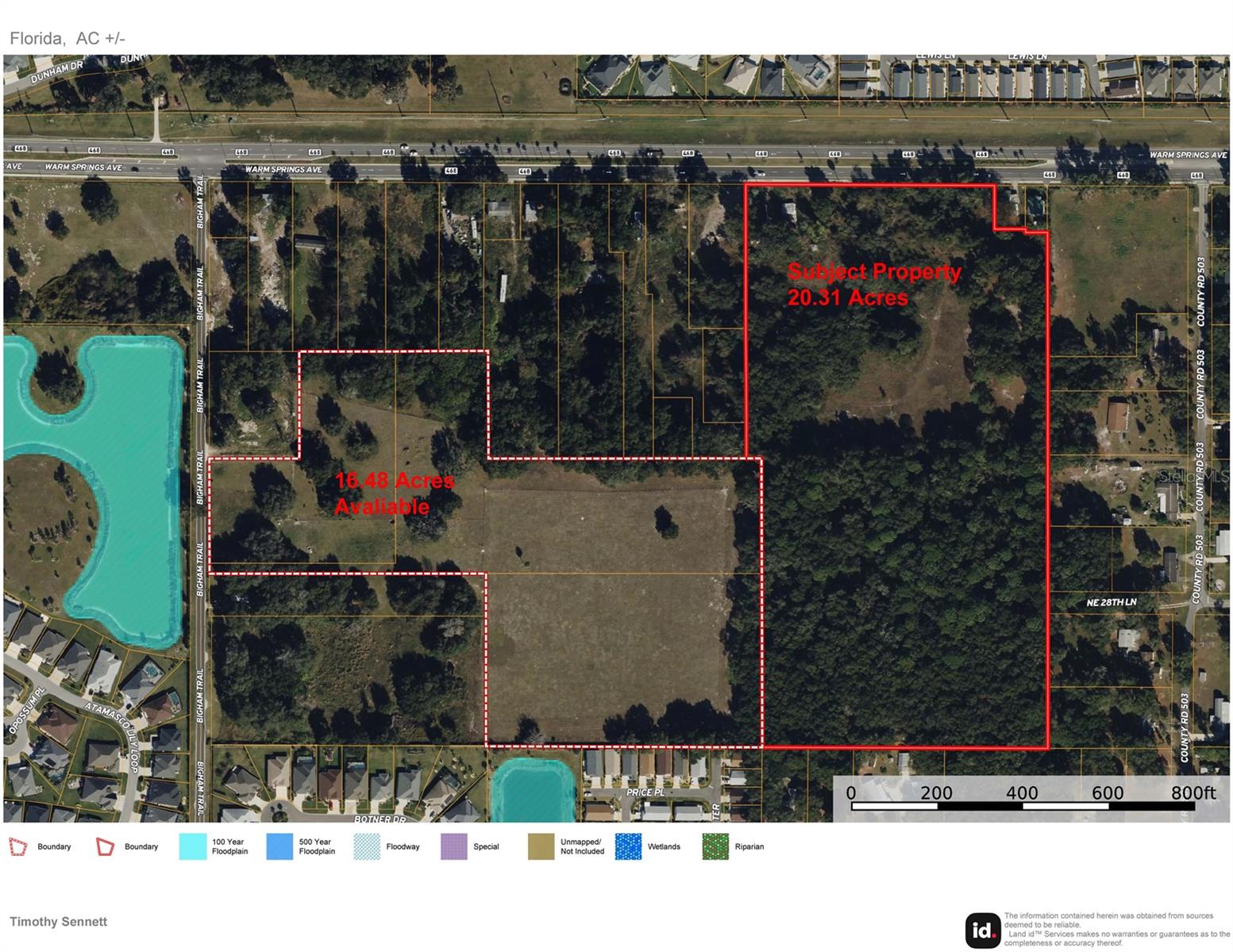 GREAT FOR SFR or MULTI-FAMILY 20.31 acres available in The Villages Area. Approximately 580 front feet on Warm Springs. In county. If brought into Wildwood, water and wastewater available (after moratorium) Adjoining 16.48 acres available, which are already annexed and zoned for development (G33-131, G33-017, G33-018) MLS#G5086329